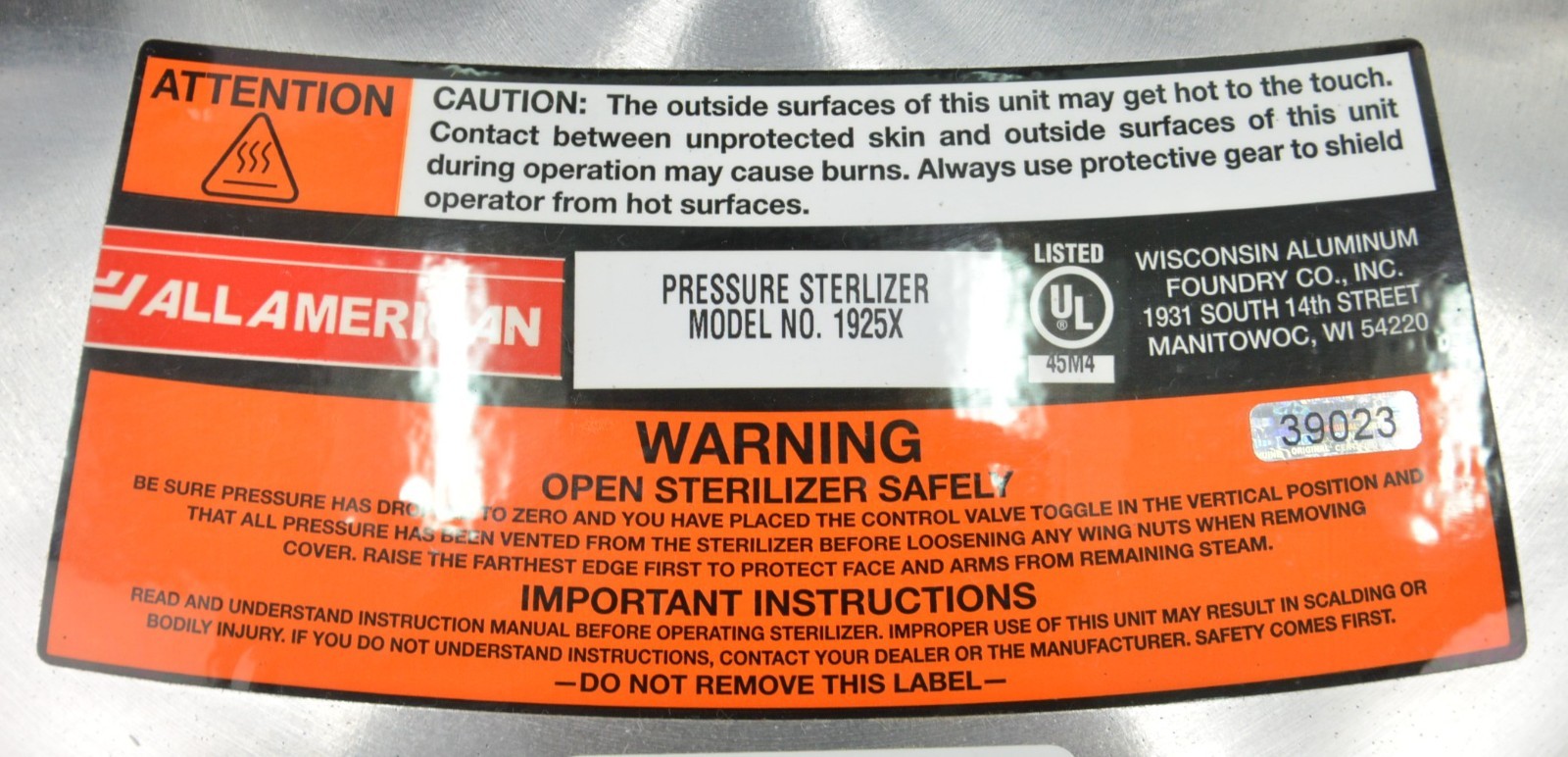 This All American 1925X Non-Electric Pressure Sterilizer 25QT is new. The box was opened for pictures. This unit comes with a 30 day money back guarantee. Includes everything in the pictures and nothing else.