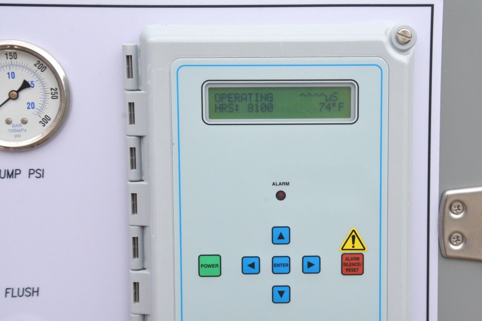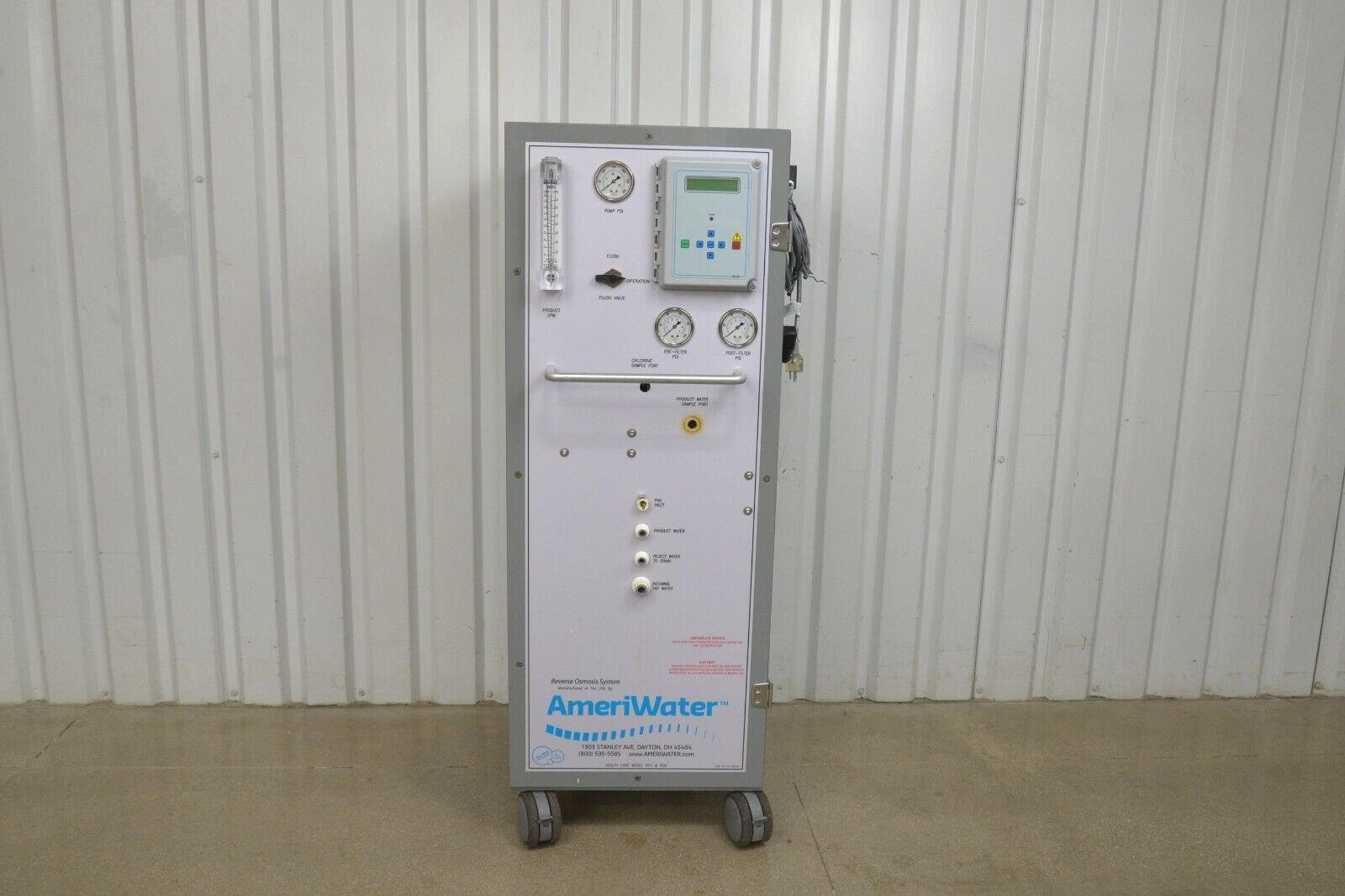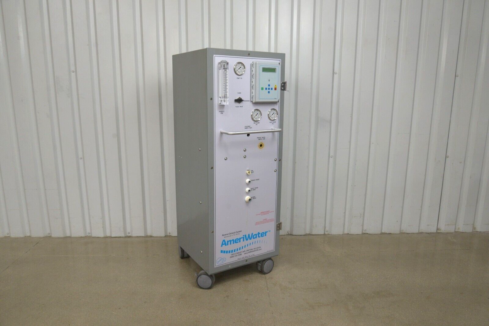 This AmeriWater HCR02 Commercial/Industrial Water Purification Reverse Osmosis System is in good working condition. The unit powers on properly. All connection points are clean and in good condition. The buttons work properly and the display screen responds appropriately. The system has 8100 hours of operation. The system is in good cosmetic condition with the exception of some yellow discoloration in some spots and is missing the chlorine and product water sample ports (see photos). We are not experts in the subject matter, therefore; we do not have the means to fully test this unit. This unit comes with a 30 day satisfaction guarantee. Includes everything in the pictures and nothing else.