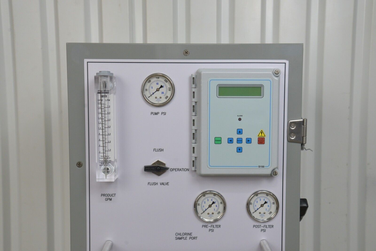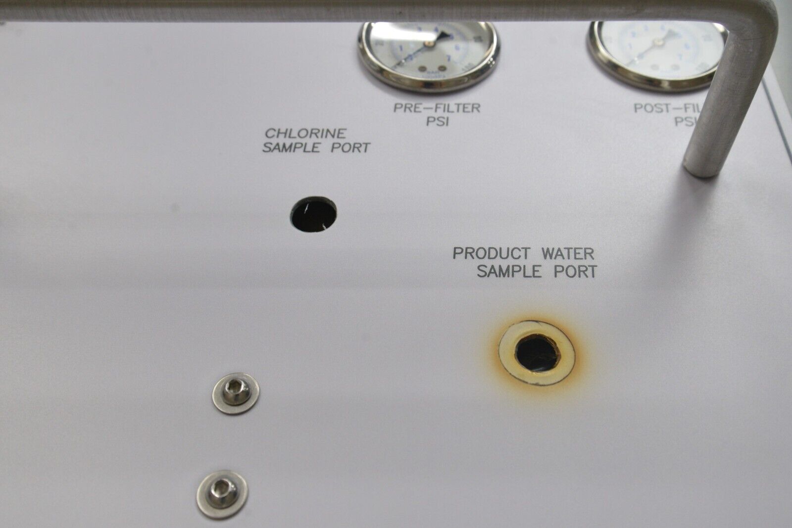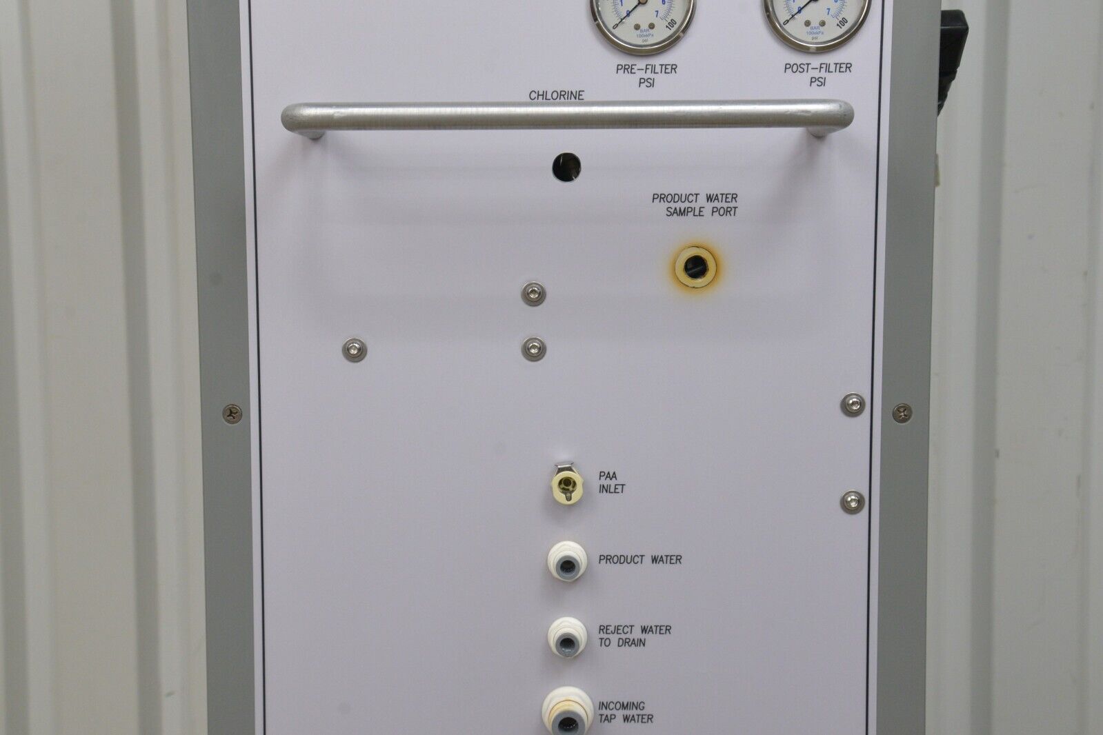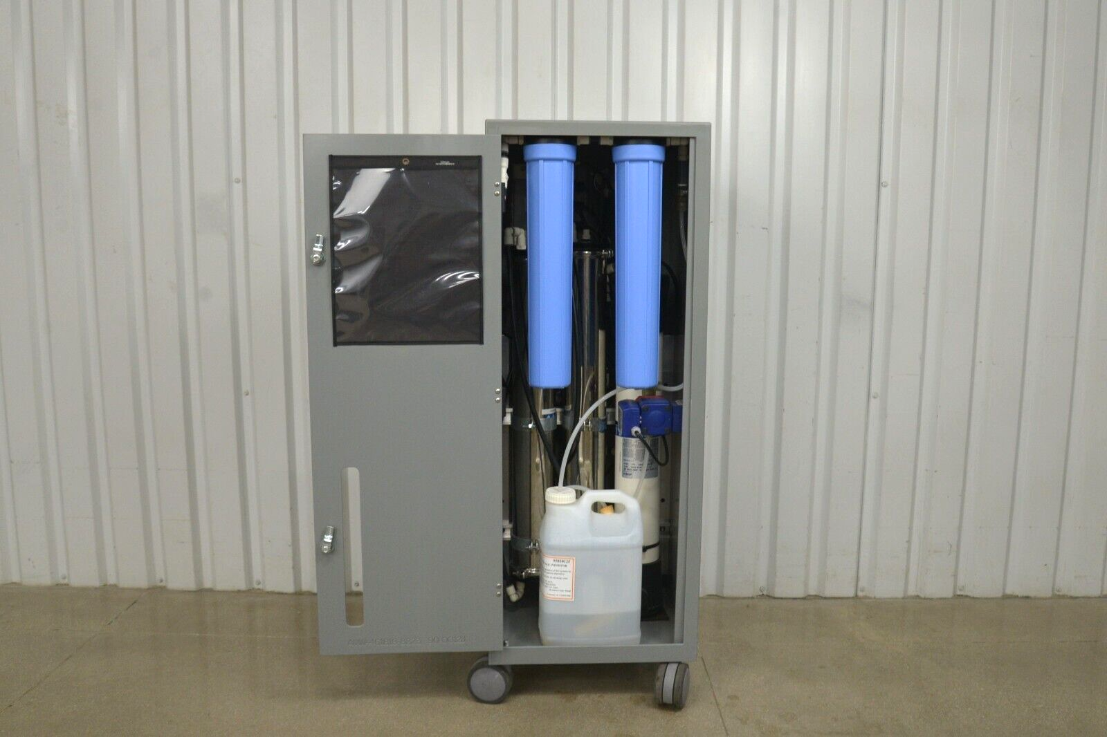 This AmeriWater HCR02 Commercial/Industrial Water Purification Reverse Osmosis System is in good working condition. The unit powers on properly. All connection points are clean and in good condition. The buttons work properly and the display screen responds appropriately. The system has 8100 hours of operation. The system is in good cosmetic condition with the exception of some yellow discoloration in some spots and is missing the chlorine and product water sample ports (see photos). We are not experts in the subject matter, therefore; we do not have the means to fully test this unit. This unit comes with a 30 day satisfaction guarantee. Includes everything in the pictures and nothing else.