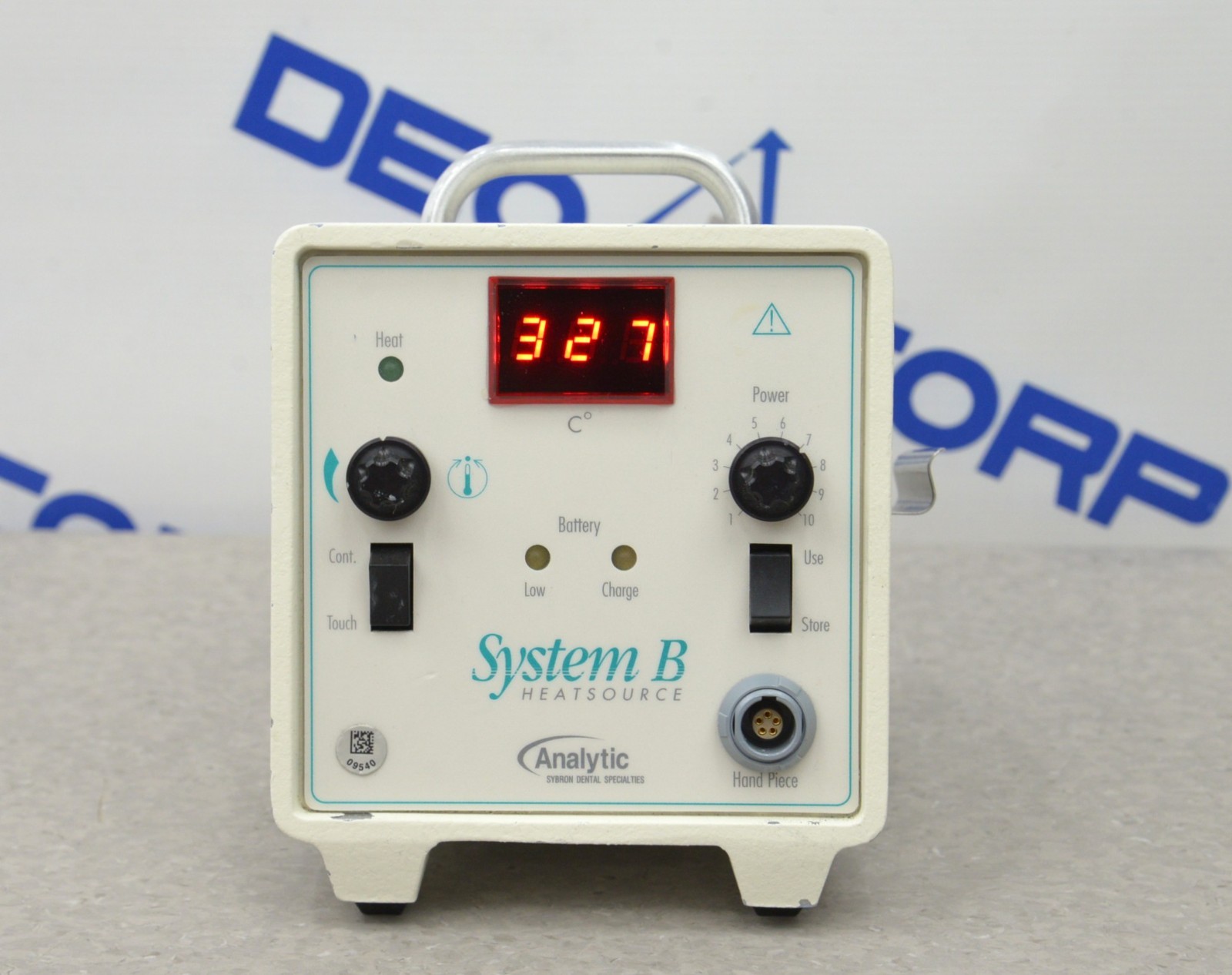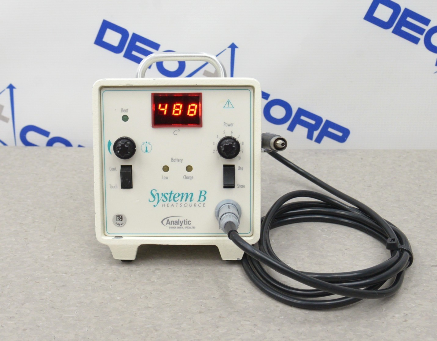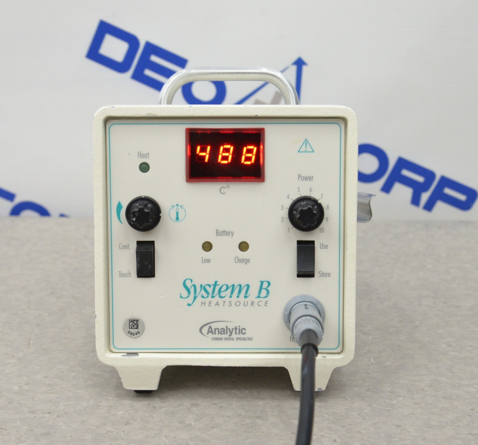 This Analytic SybronEndo System B 1005 Dental Endodontic Heat-Source W/ Handpiece is in good working condition. The unit powers on, and heats up as intended. The knobs respond to selections. There are scuff marks and chipped paint from previous use (see photos). The battery hold a charge. Does not come with a tip. This unit comes with a 30 day satisfaction guarantee. Includes everything in the pictures and nothing else.