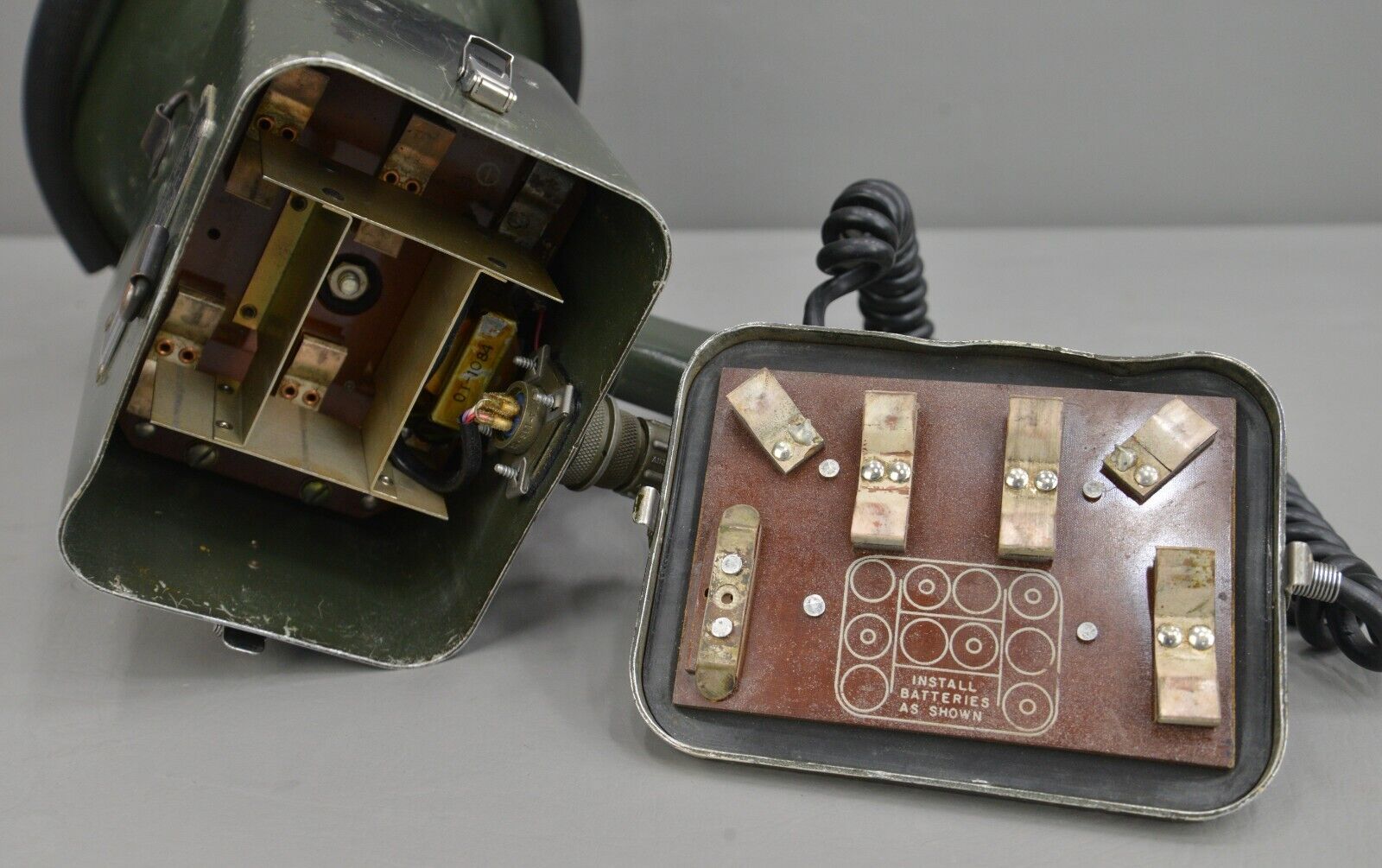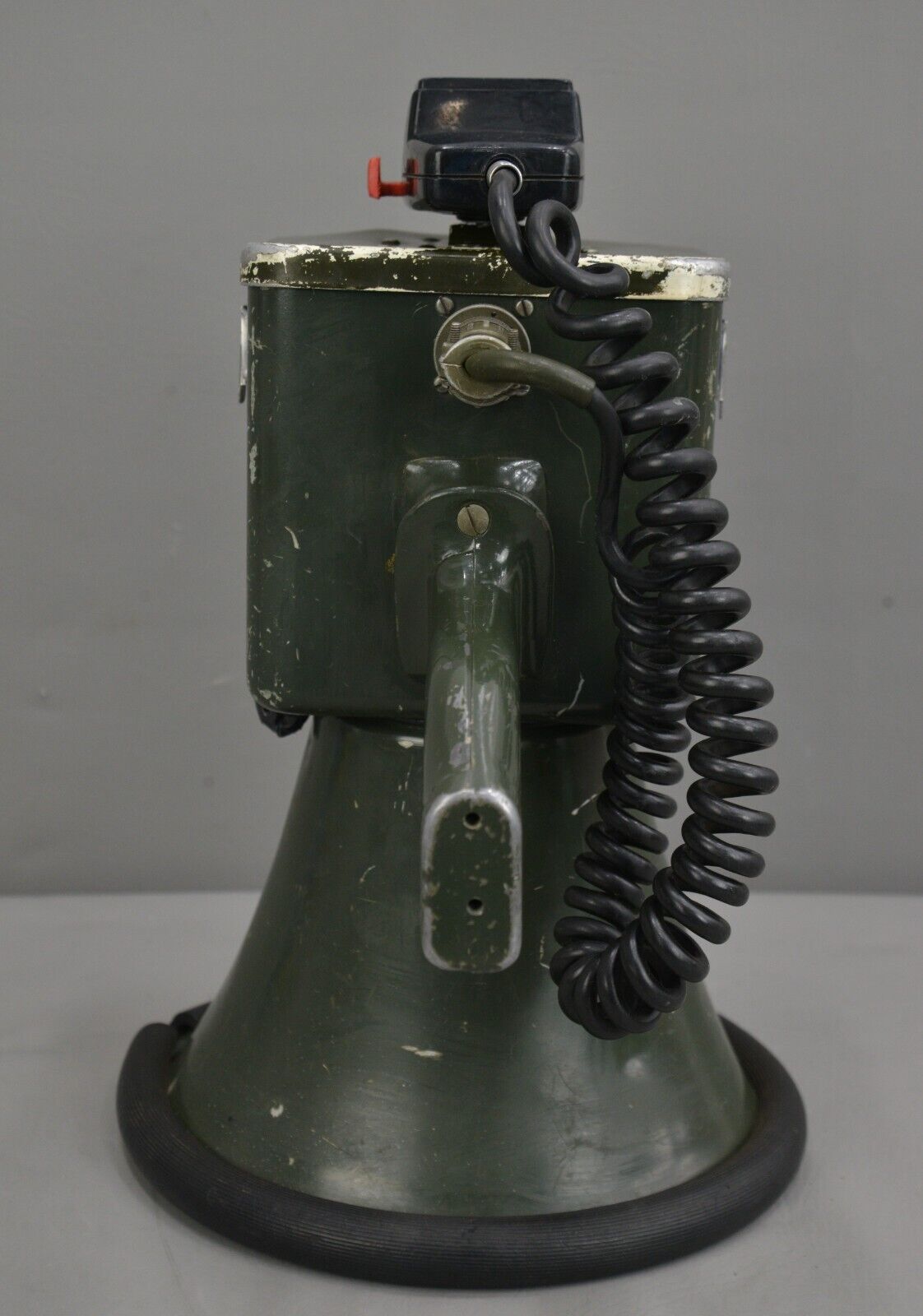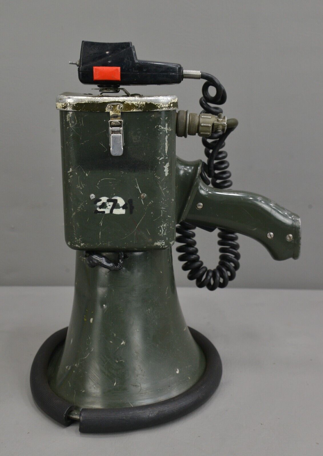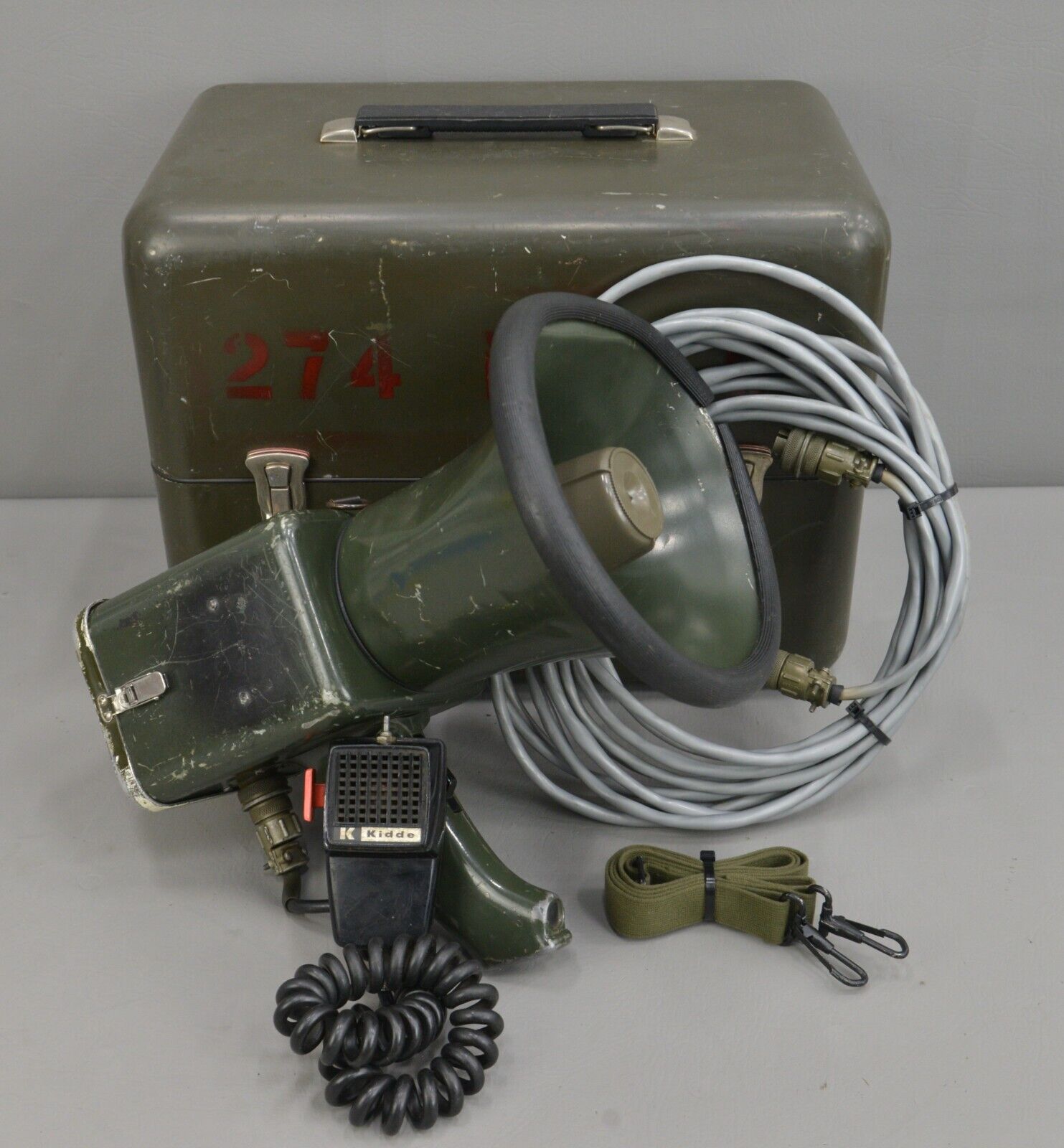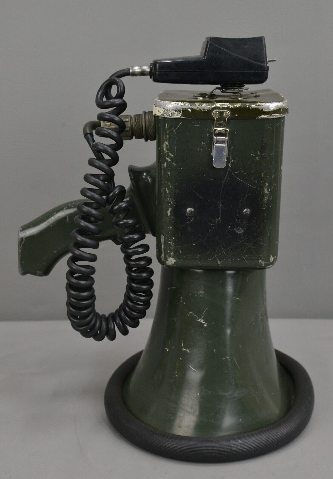 This Audio Equipment, AN/PIQ-5, Super Hailer, Military Speaker Amplifier is in good working condition. There are a some minor scuff marks and dents associated with previous use (see photos). Includes a shoulder strap, Military Cable and hard case. Batteries are not included. This unit comes with a 30 day satisfaction guarantee. Includes everything in the pictures and nothing else. All international sales are final.