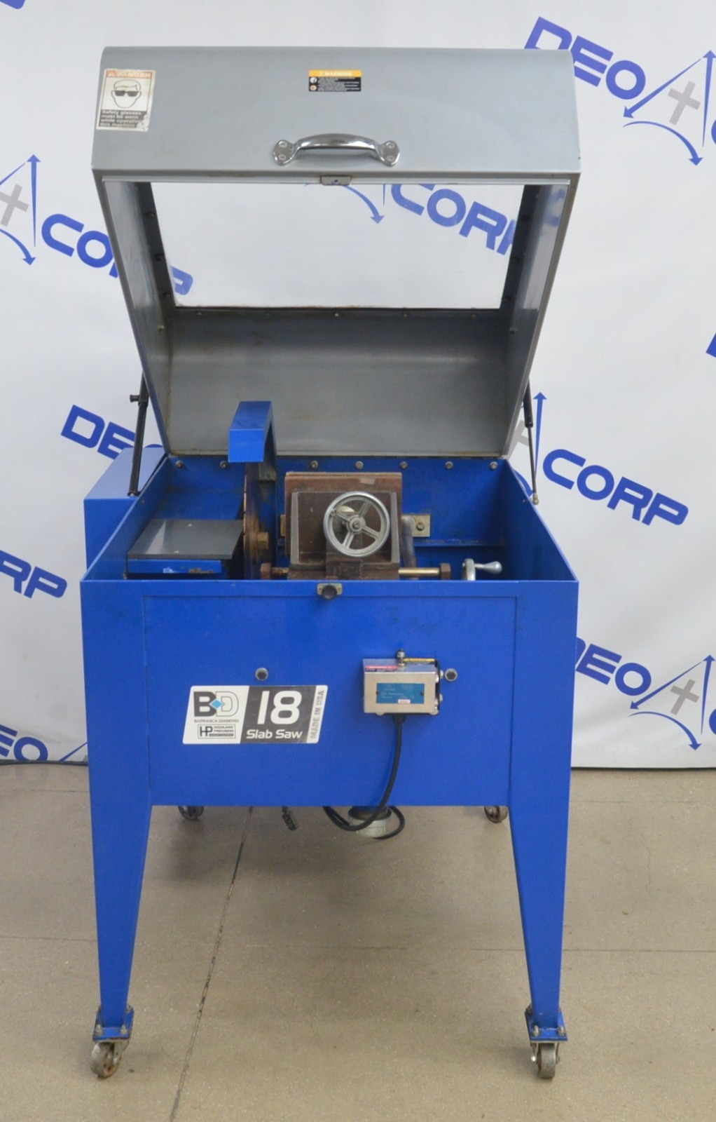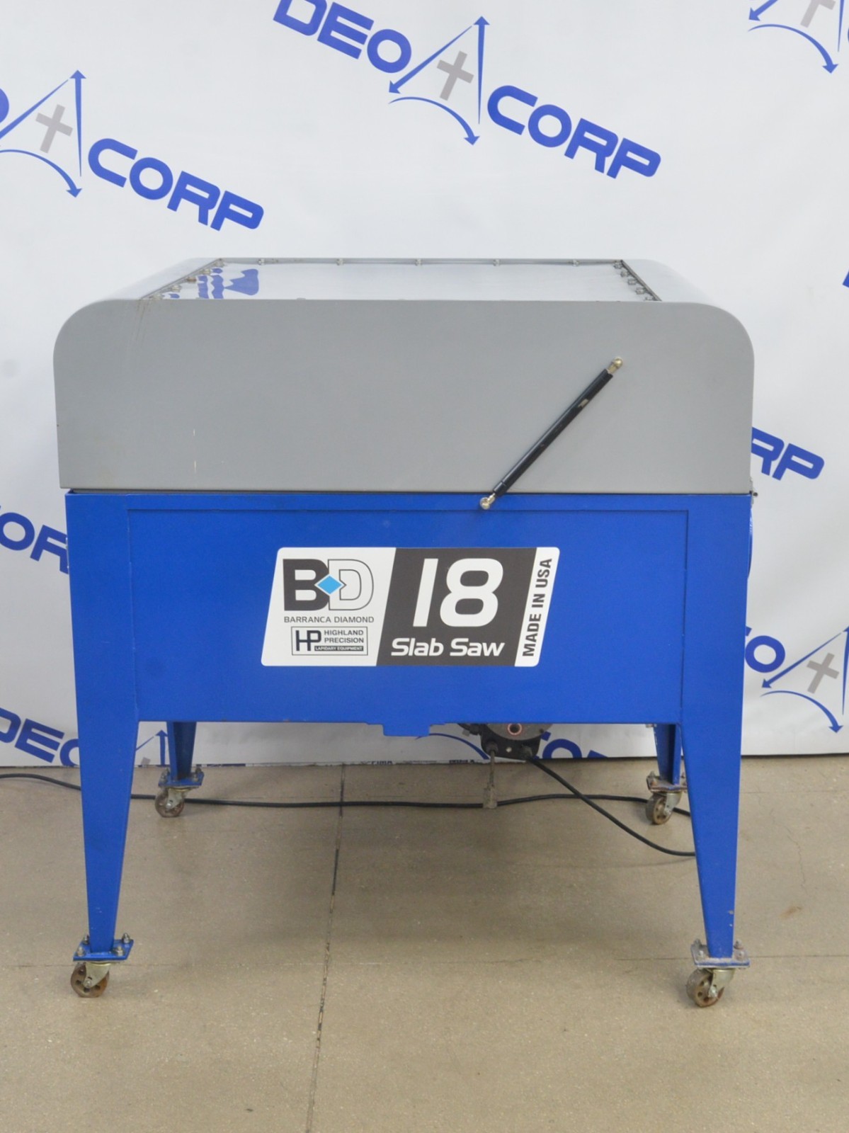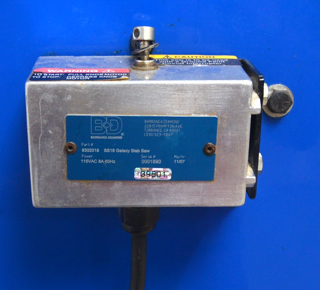 This Barranca Diamond SS18 Galaxy Slab Saw is in good working condition. This unit powers on and responds properly when the switch is pulled back from itself. The lid shuts and open properly. There is some chipped paint and some minor scuff marks from previous use (see photos). This unit comes with a 30 day satisfaction guarantee. Includes everything in the pictures and nothing else.