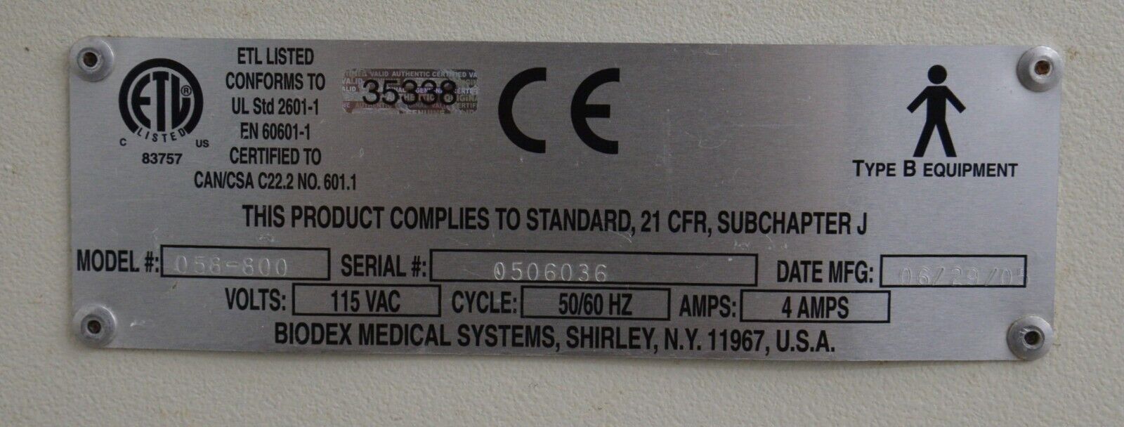 DISCLAIMER: Regardless of the origin of the equipment, documentation provided or identification appearing upon the equipment, the equipment described and offered here is in no way certified for, recommended for, or offered for any specific use. The purchaser agrees that the seller shall not be held responsible or liable for any injuries or damages, whether incidental or consequential, associated in any way with the equipment. The purchaser, by bidding on this equipment, indicates their acknowledgment of, and agreement to the terms of this disclaimer.