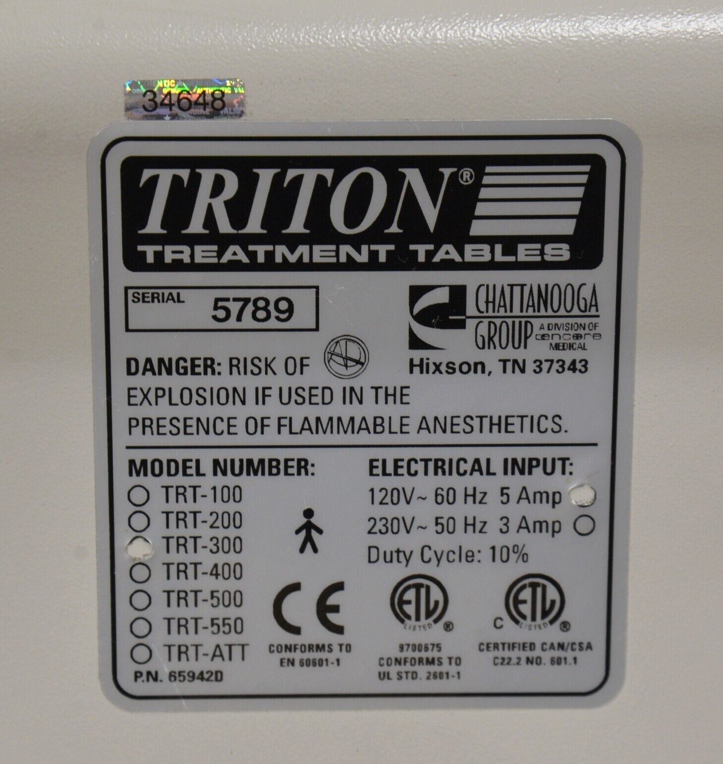Chattanooga Group TRT-300 Triton Adjustable Treatment Table W/ Foot Pedal