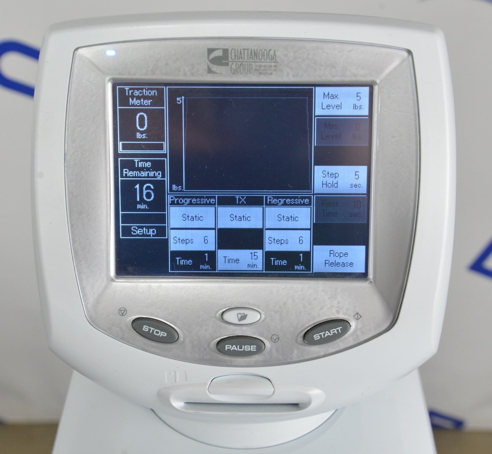 This Chattanooga TX Traction Machine Model 4759 W/ Triton DTS TRT-600 Treatment Table is in great working condition. The connections are clean and in good condition. The traction unit powers on and responds properly to touch screen and buttons. The table powers on and all adjustments move properly. There are minor scuff marks and cracks from previous use (see photos). This unit comes with a 30 day satisfaction guarantee. Includes everything in the pictures and nothing else.