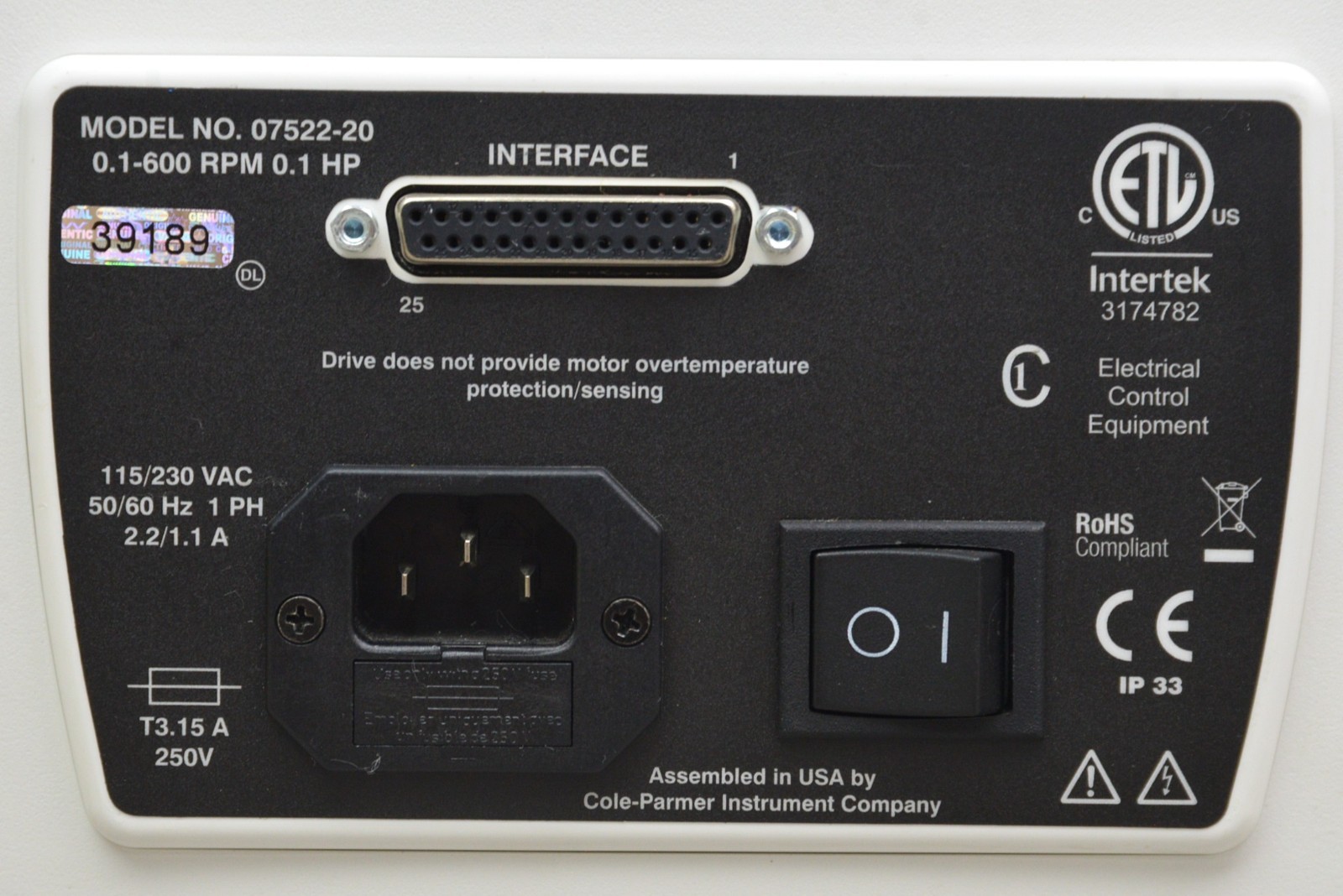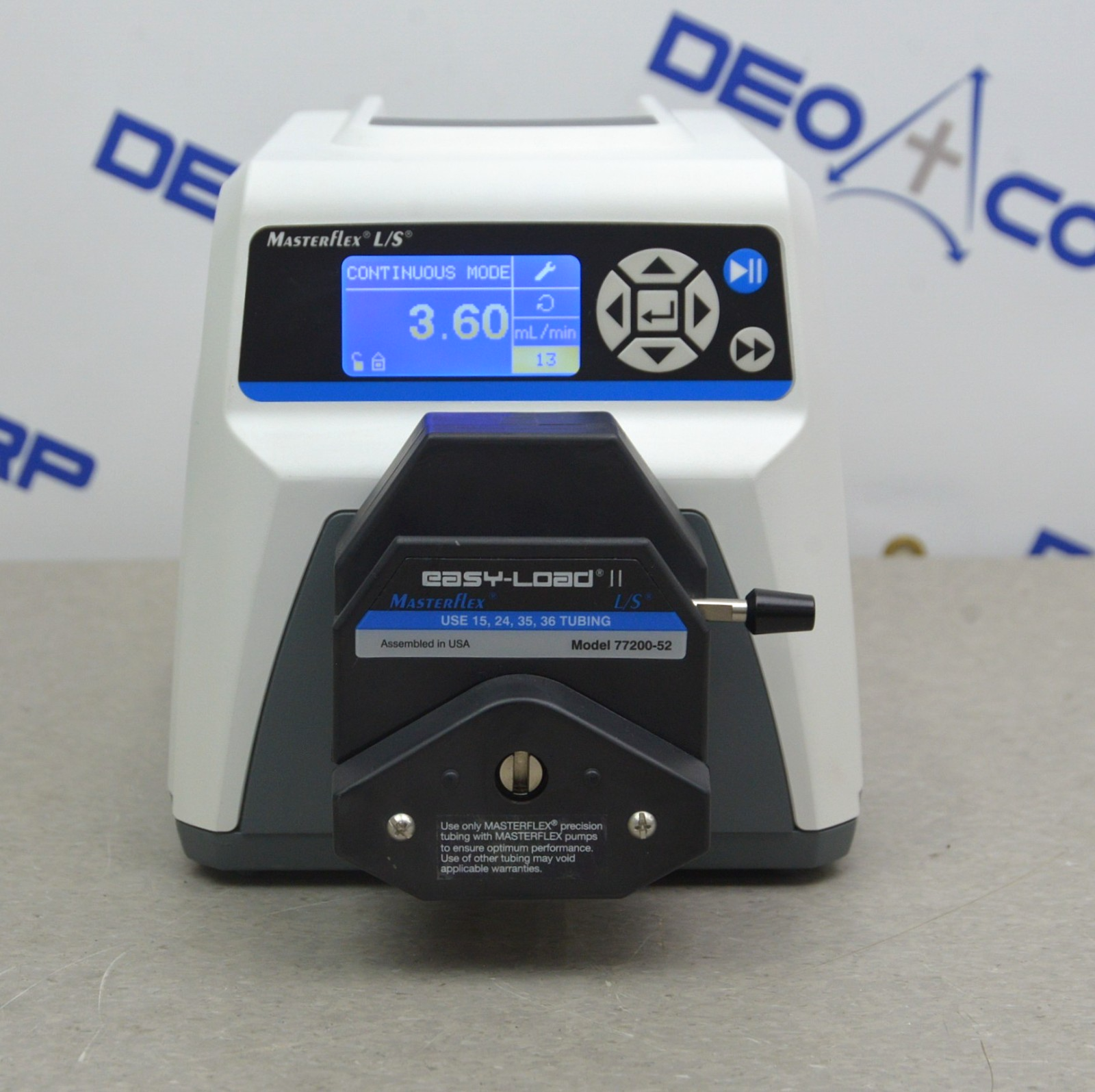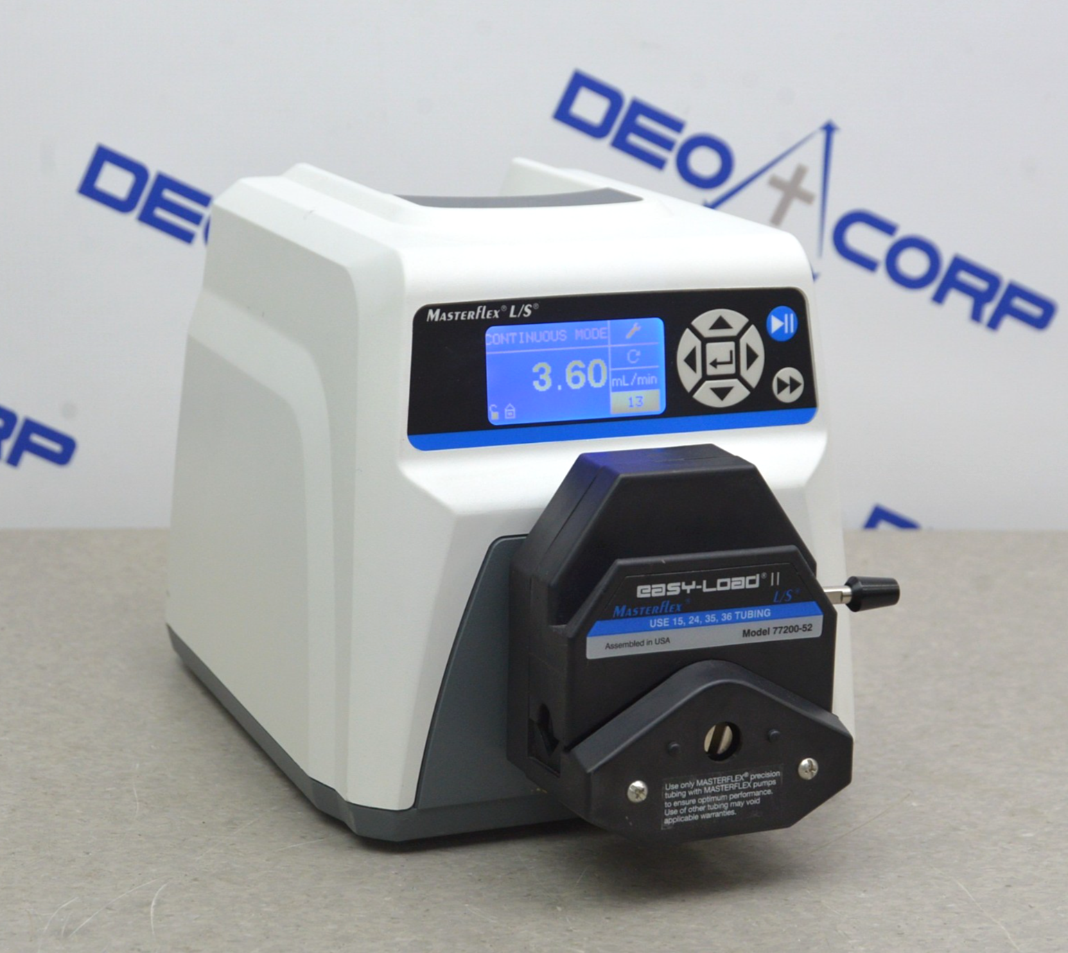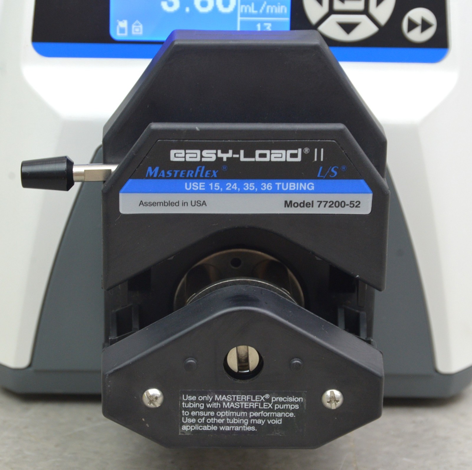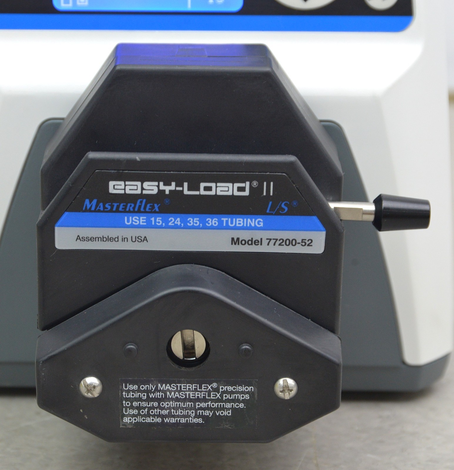 This Cole Parmer MasterFlex L/S 07522-20 Peristaltic Pump Drive W/ Easy-Load II Head is in great working condition. The unit powers on. The display screen produces a clear and responds properly to selection. There are some minor scuff marks from previous use (see photos). This unit comes with a 30 day money back guarantee. Includes everything in the pictures and nothing else.
