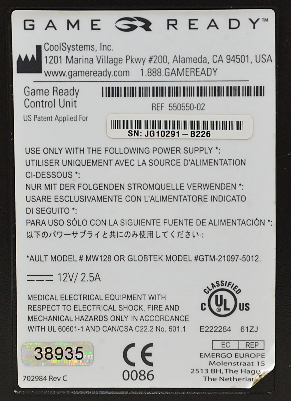 This Cool Systems Game Ready Control Unit 550550-02 is in good cosmetic condition. The unit powers on and the display screen produces a clear image, but there is a small section of dead pixels. The connections points are clean and in good condition. The buttons respond to selection; however, the temperature dial does not respond, for this reason it is being sold for parts. This unit is powered by a 12V power supply, the power supply is not included. There are some scuffs from previous use (see photos). Includes everything in the pictures and nothing else.