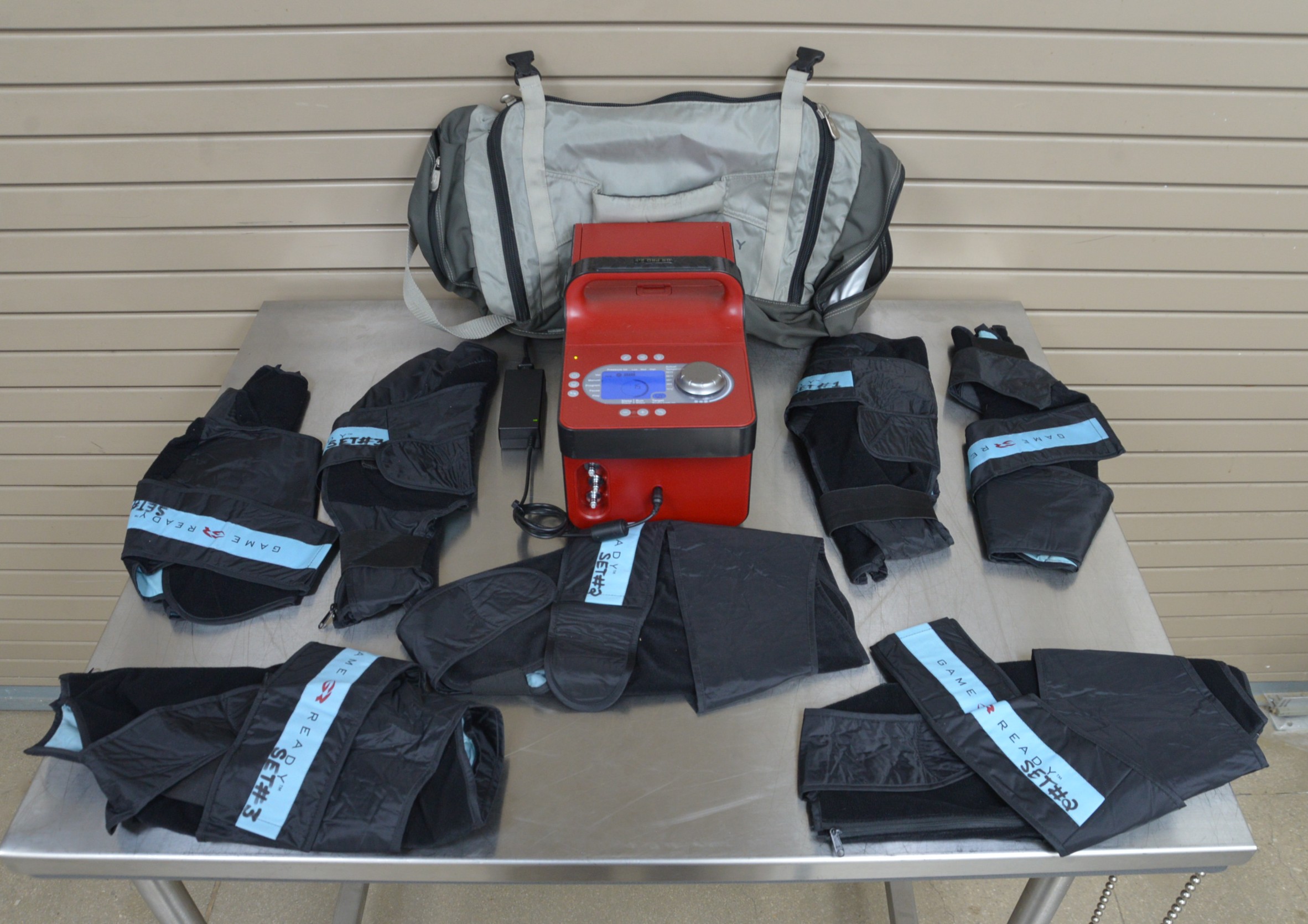 This Cool Systems Game Ready GR PRO 2.1 Control Unit 550550-03 W/ Sleeve Accessories unit is in good working condition. The unit powers on and the display screen responds to selection. The overall cosmetic condition of the sleeve accessories are good with some discoloration, and the unit has some minor scuff marks from previous use (see photos). This unit comes with a 30 day satisfaction guarantee. Includes everything in the pictures and nothing else.