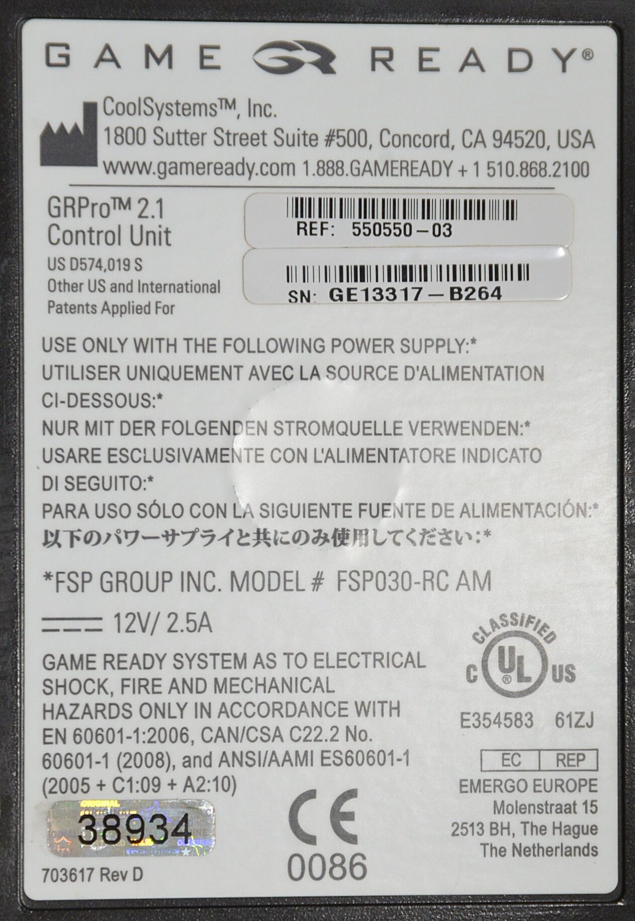 Cool Systems Game Ready GR PRO 2.1 Control Unit 550550-03 W/ Sleeve Accessories