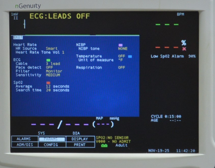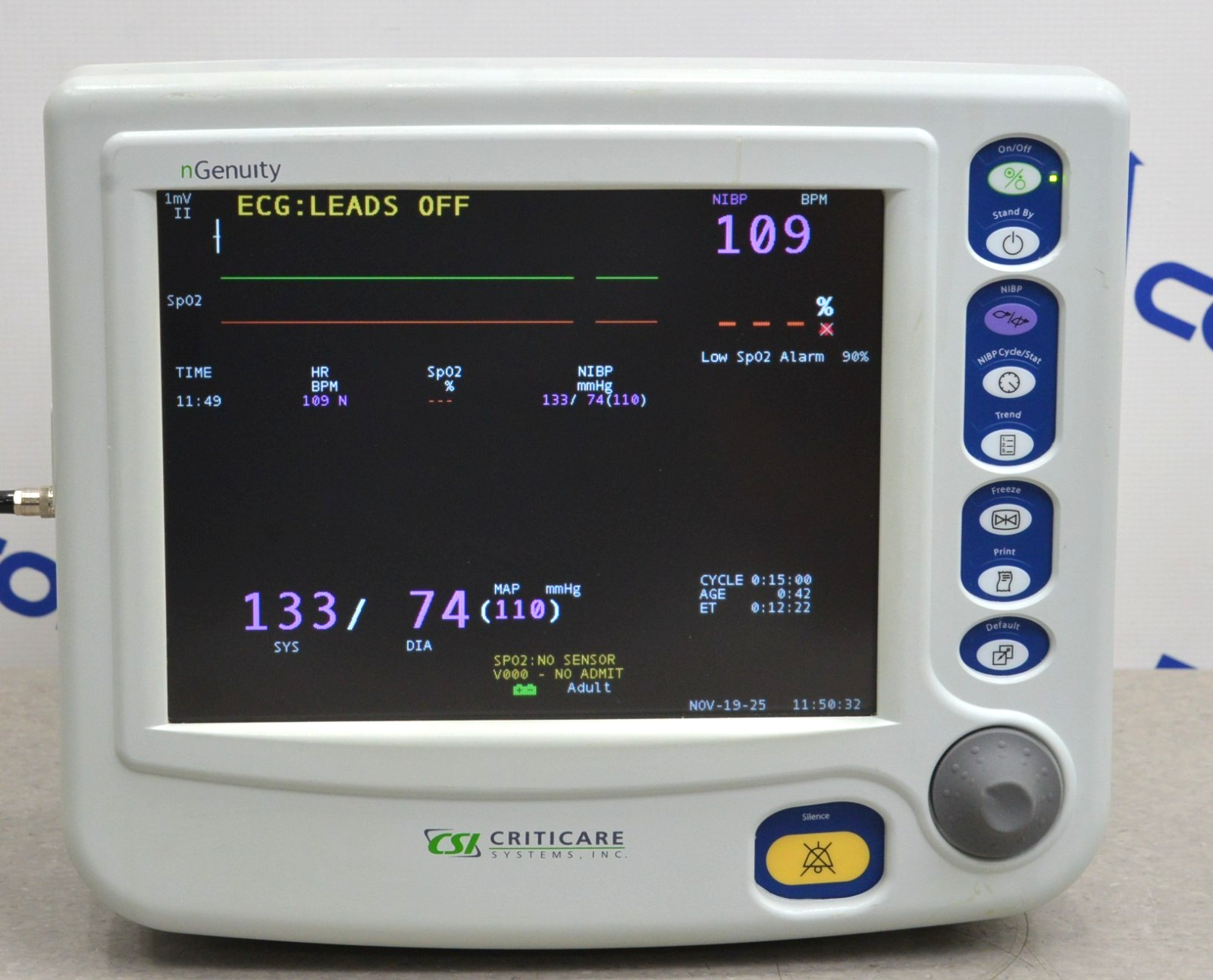 This CritiCare Systems nGenuity 8100EP Patient Monitor W/ 3 Lead Cables, Temp, & NiBP is in good working condition. The unit powers on properly. The display screen produces a clear picture and the buttons and knob respond to selection. All the connection points are clean and in good condition. There are minor scuff marks from previous use (see photos). The battery holds a charge. This unit comes with a 30 day satisfaction guarantee. Includes everything in the pictures and nothing else.