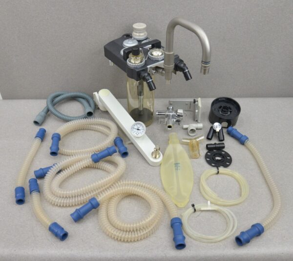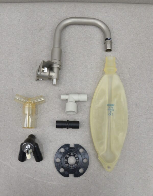 This Drager Fabius Compact Breathing System Ventilator 8605797 W/ CLIC Adapter came from a working environment and is in good condition. All the connections are clean and in good condition. There are minor scuff marks from previous use (see photos). This unit comes with a 30 day satisfaction guarantee. Includes everything in the pictures and nothing else.