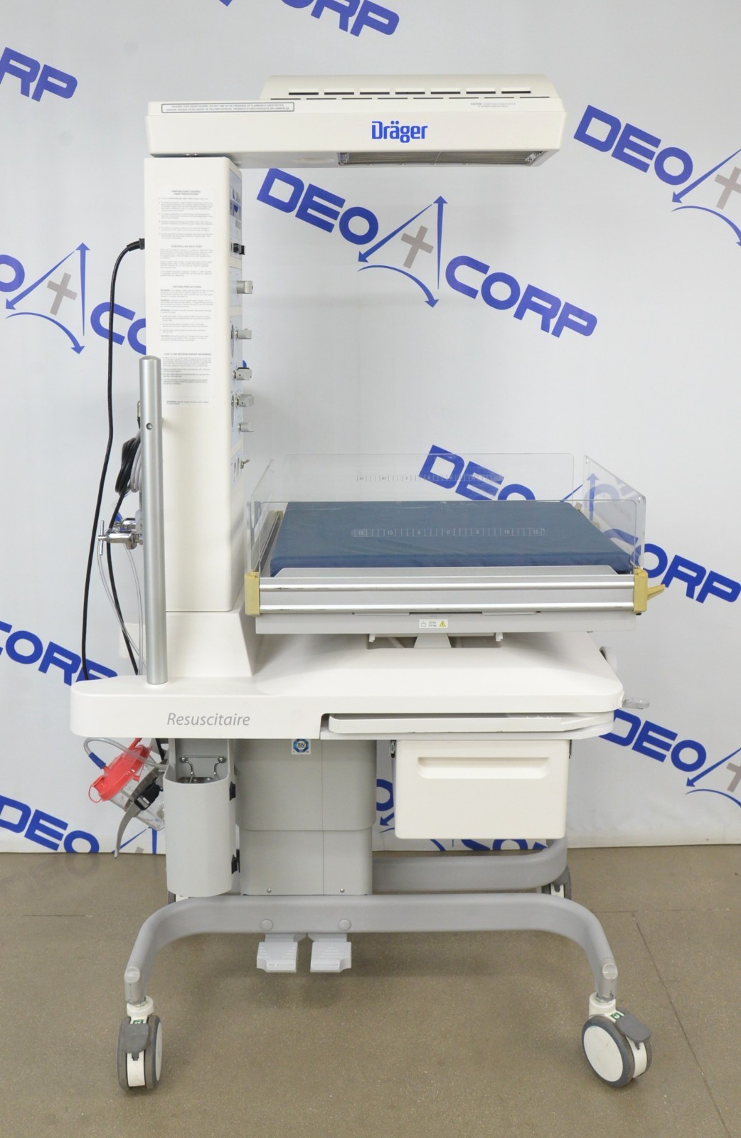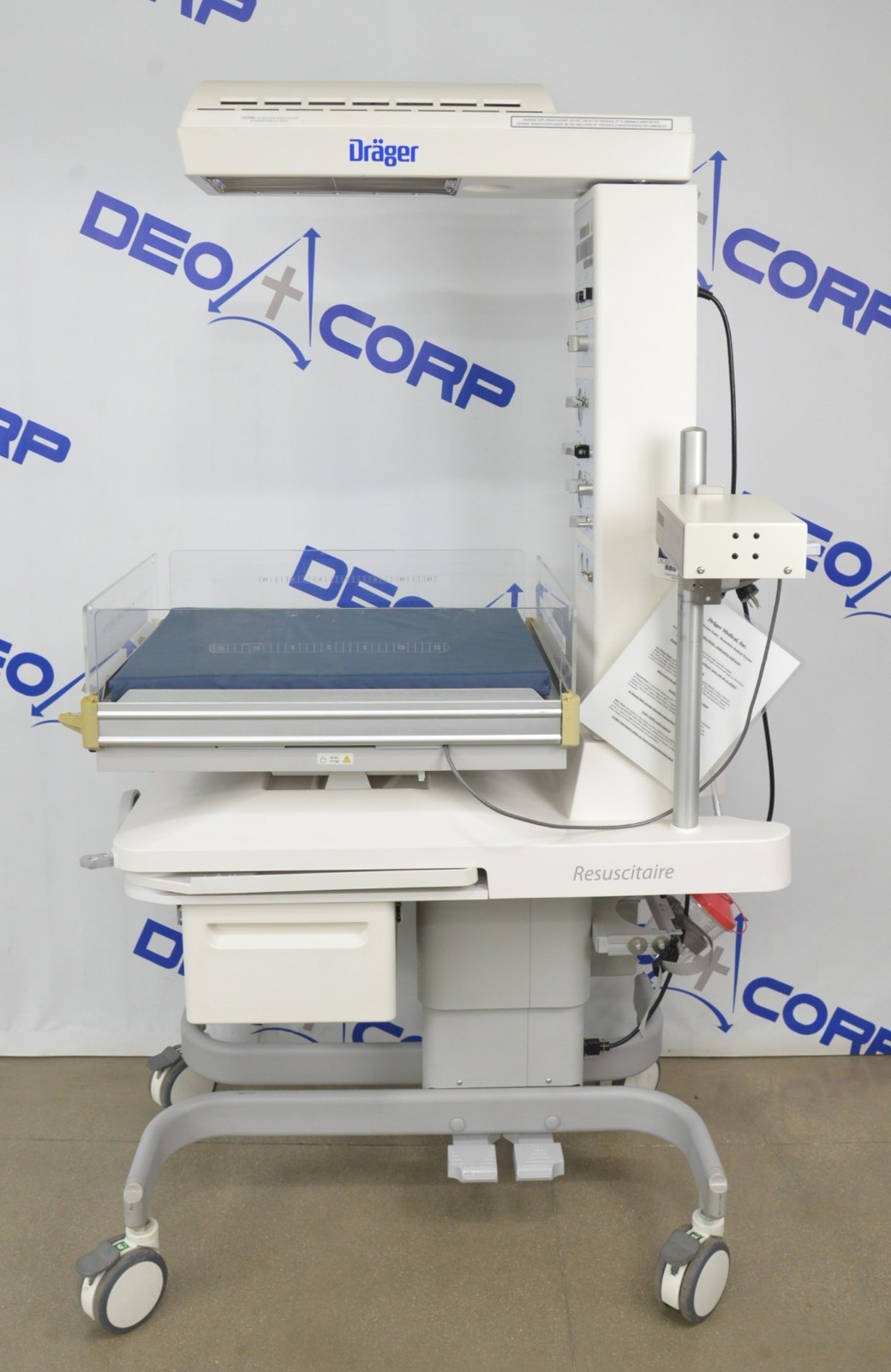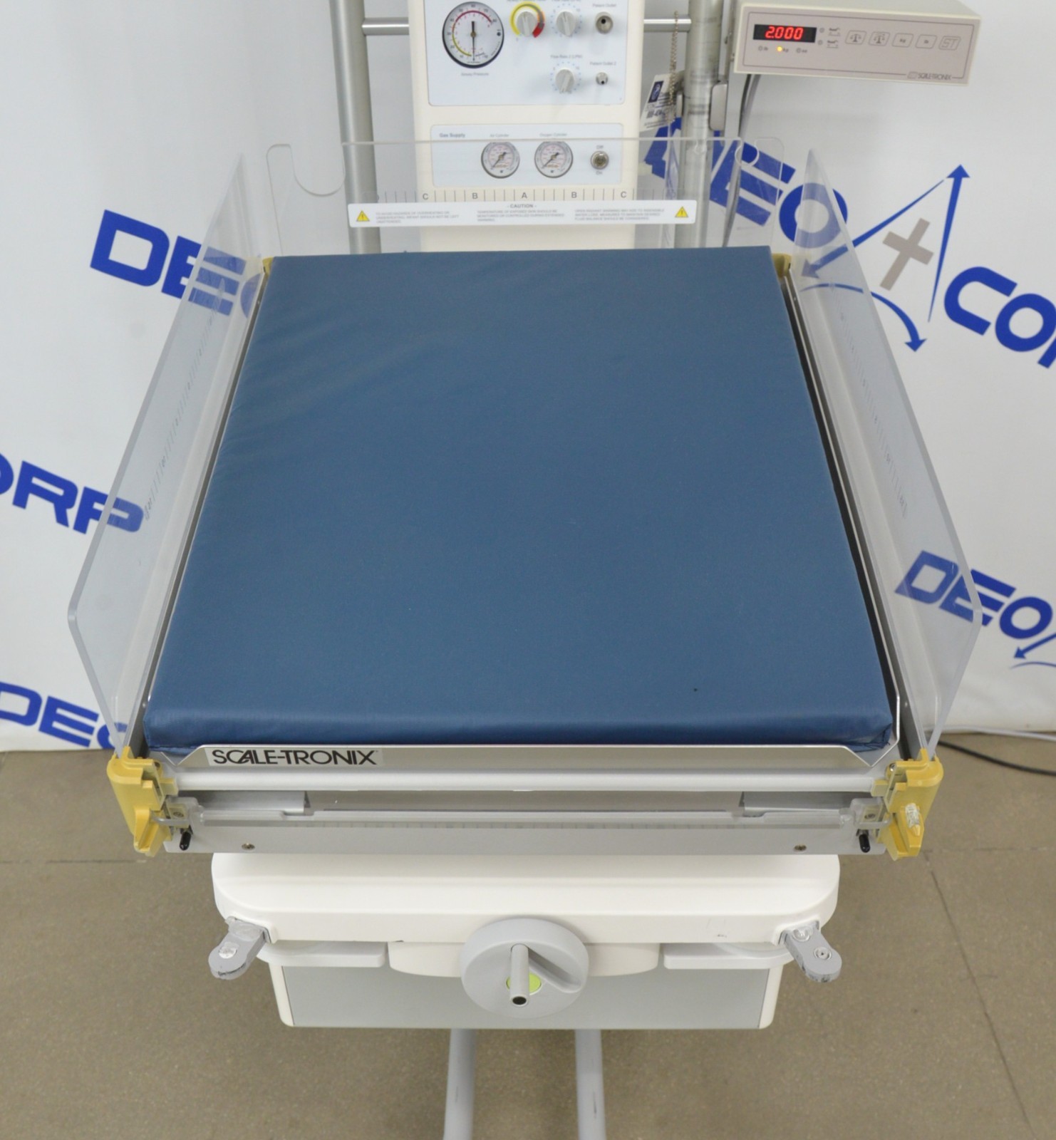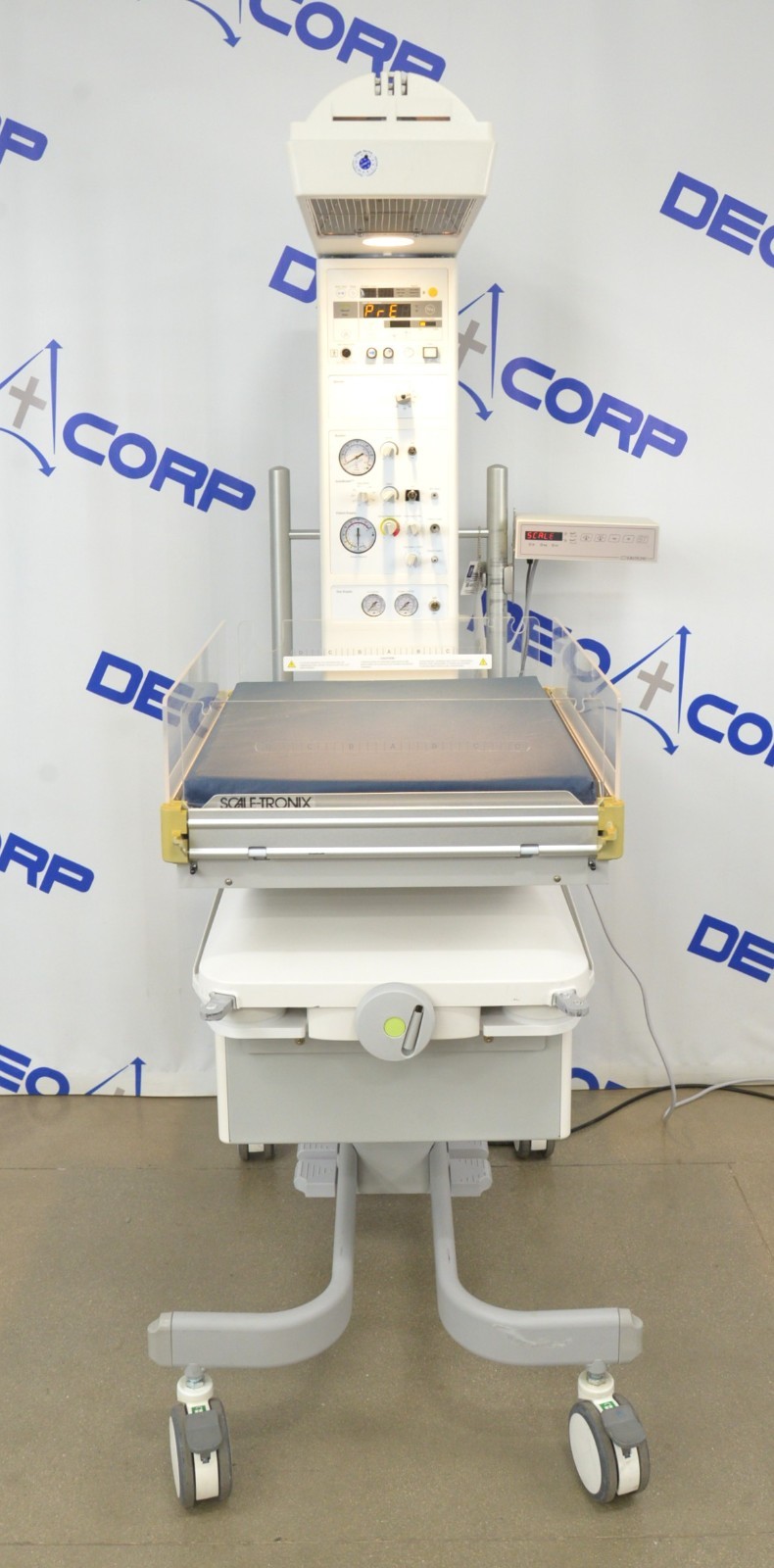 This Drager GSDTC2-00 Resuscitaire Infant Warmer W/ Scale-Tronix 4002 Infant Scale is in great working condition. The unit powers on and warms up properly. The unit responds to selection and the scale measures accurately. All the adjustments moves smoothly. There are scuff marks from previous use (see photos). The handle on the front is broken. This unit comes with a 30 day satisfaction guarantee. Includes everything in the pictures and nothing else.