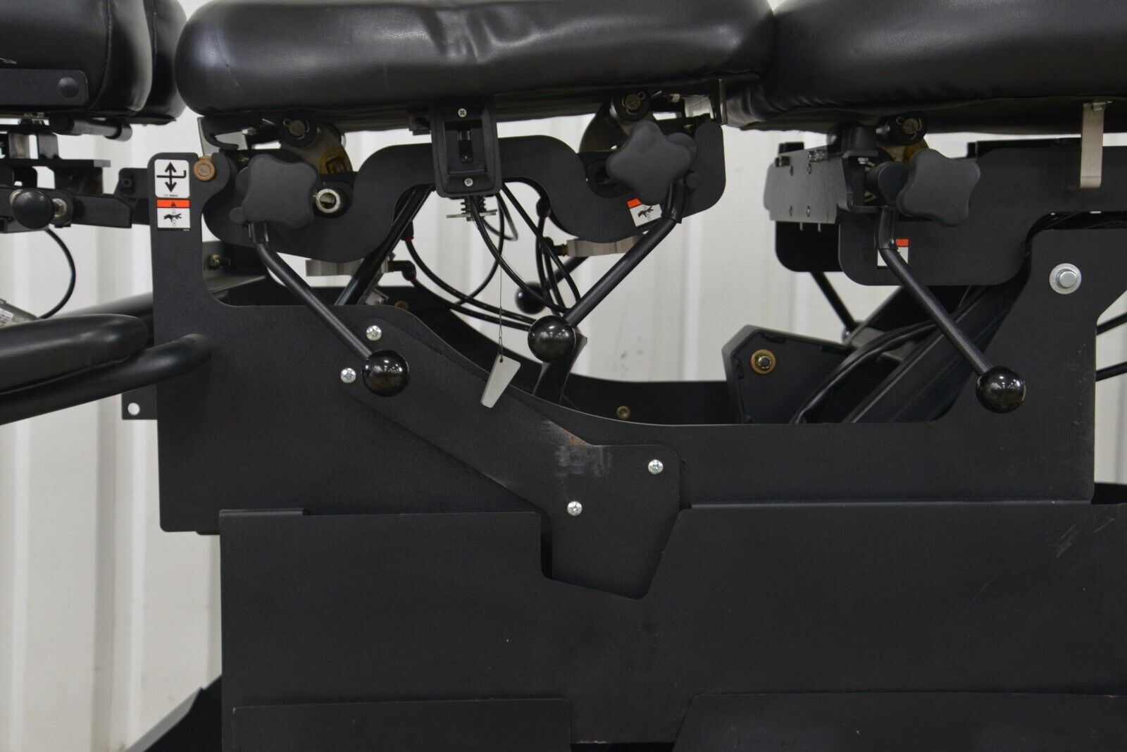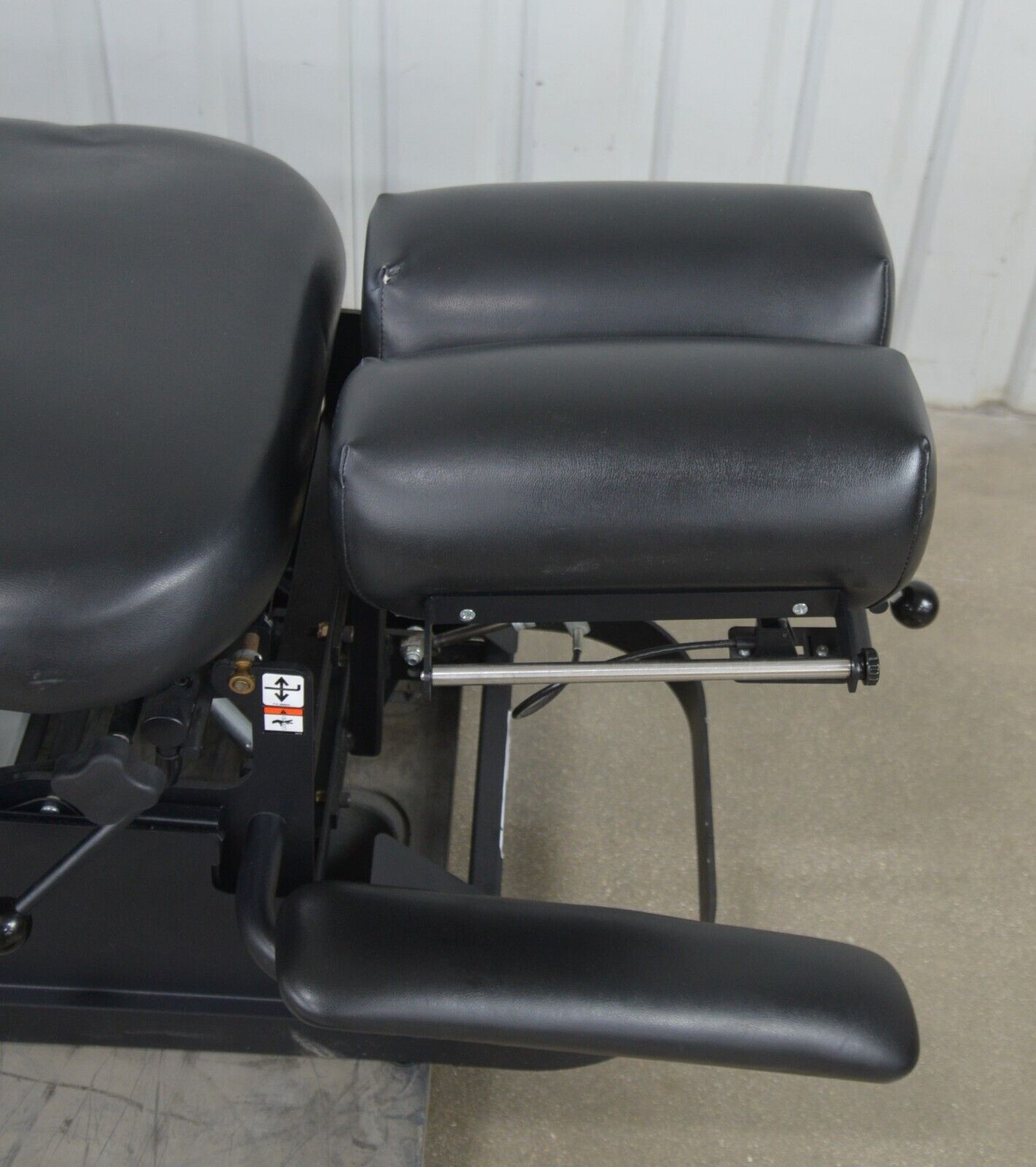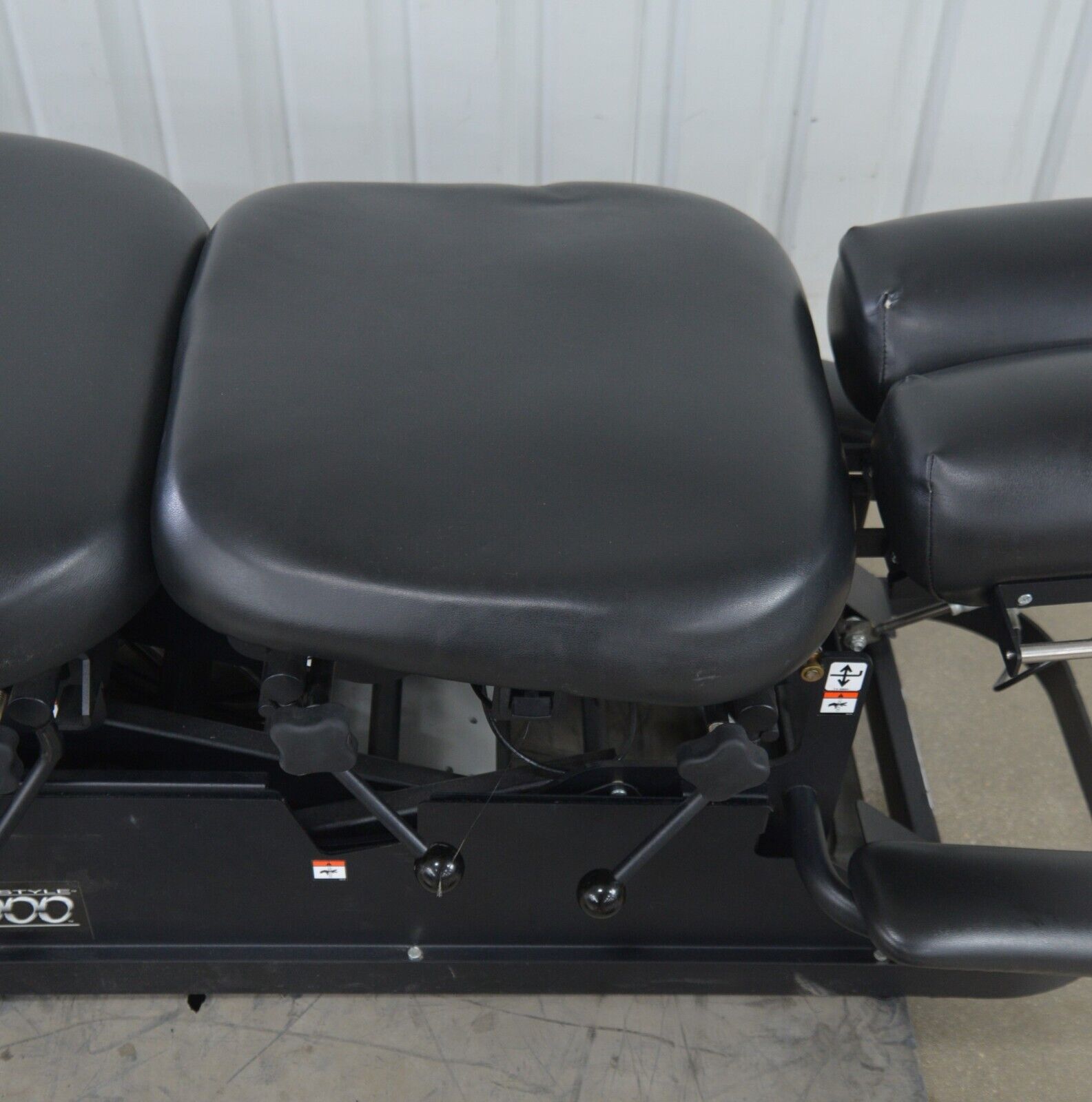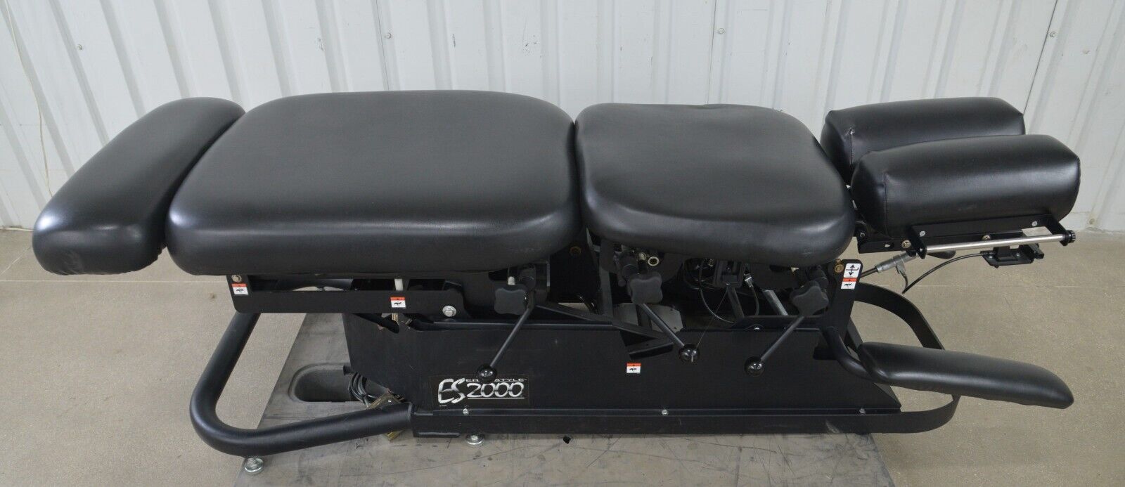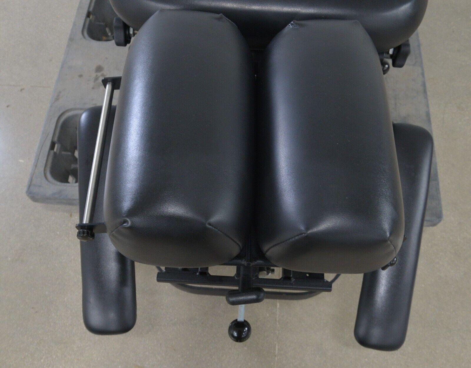 This Ergostyle Treatment Table ES9200 is in very good condition. Minor tear (see photo). Chair maneuvers smoothly and quietly through motion. All manual seat levers adjust properly. There is some wear and paint chipping on the black metal skirting but it does not affect performance. Includes a foot pedal. This unit comes with a 30 day money back guarantee. Includes everything in the pictures and nothing else.