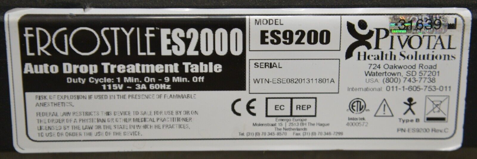 Ergostyle ES 2000 Auto Drop Treatment Table ES9200