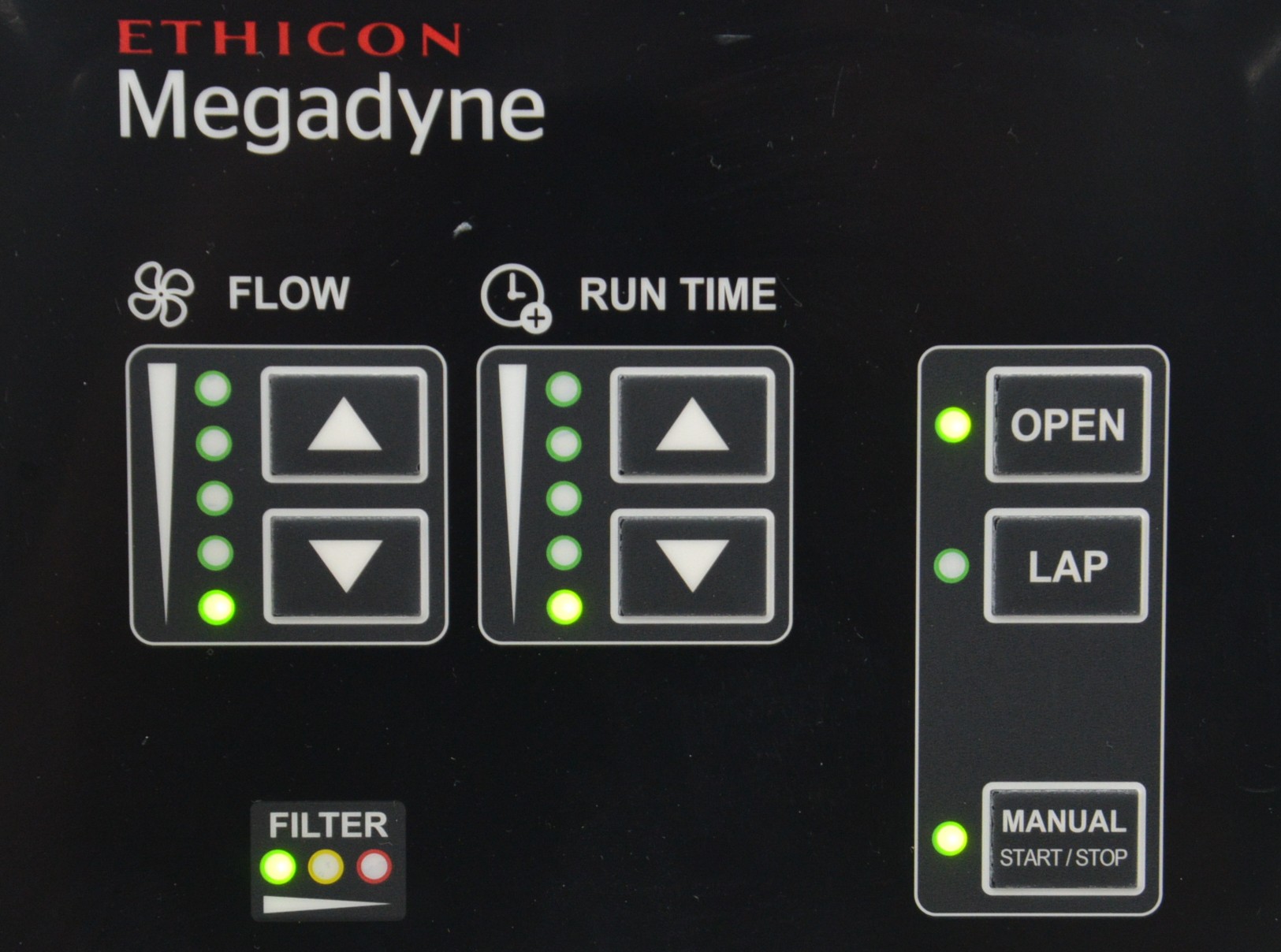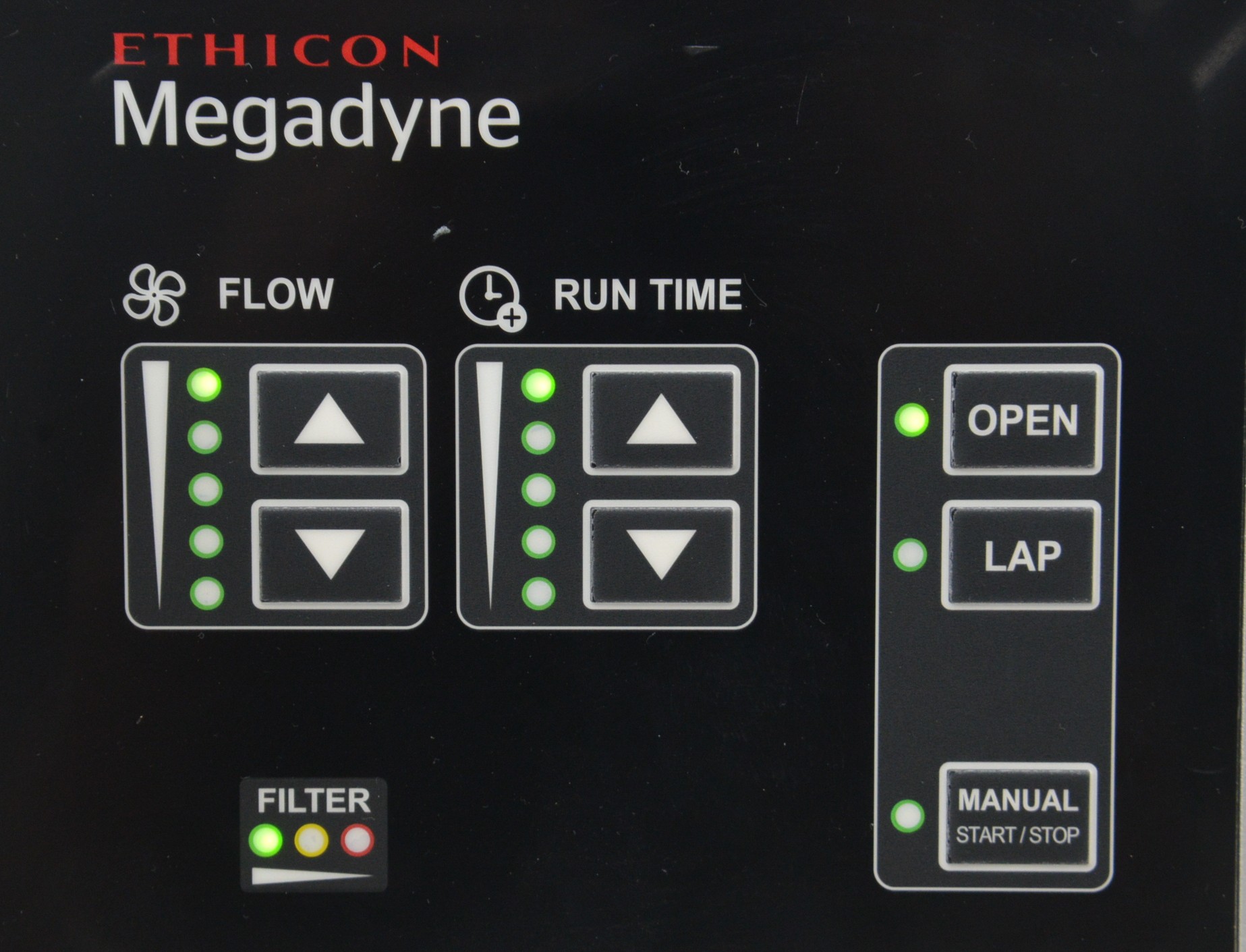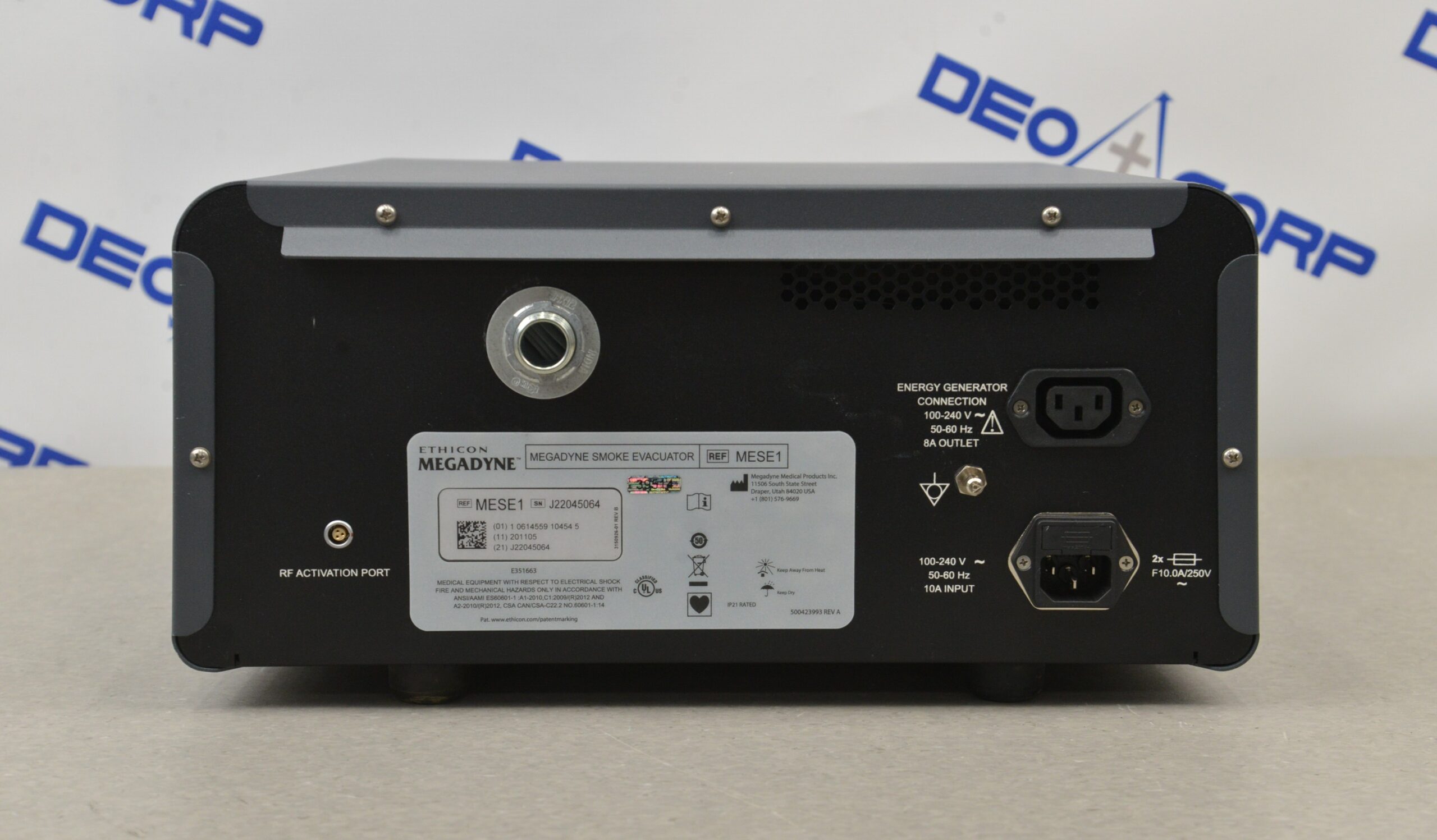 This Ethicon Megadyne Smoke Evacuator MESE1 is in great working condition. The system powers on properly. The buttons respond properly to selection. All connection points are clean and in good condition. There are some scuff marks from previous use (see photos). This unit comes with a 30 day satisfaction guarantee. Includes everything in the pictures and nothing else.