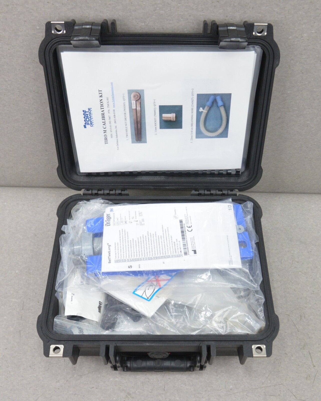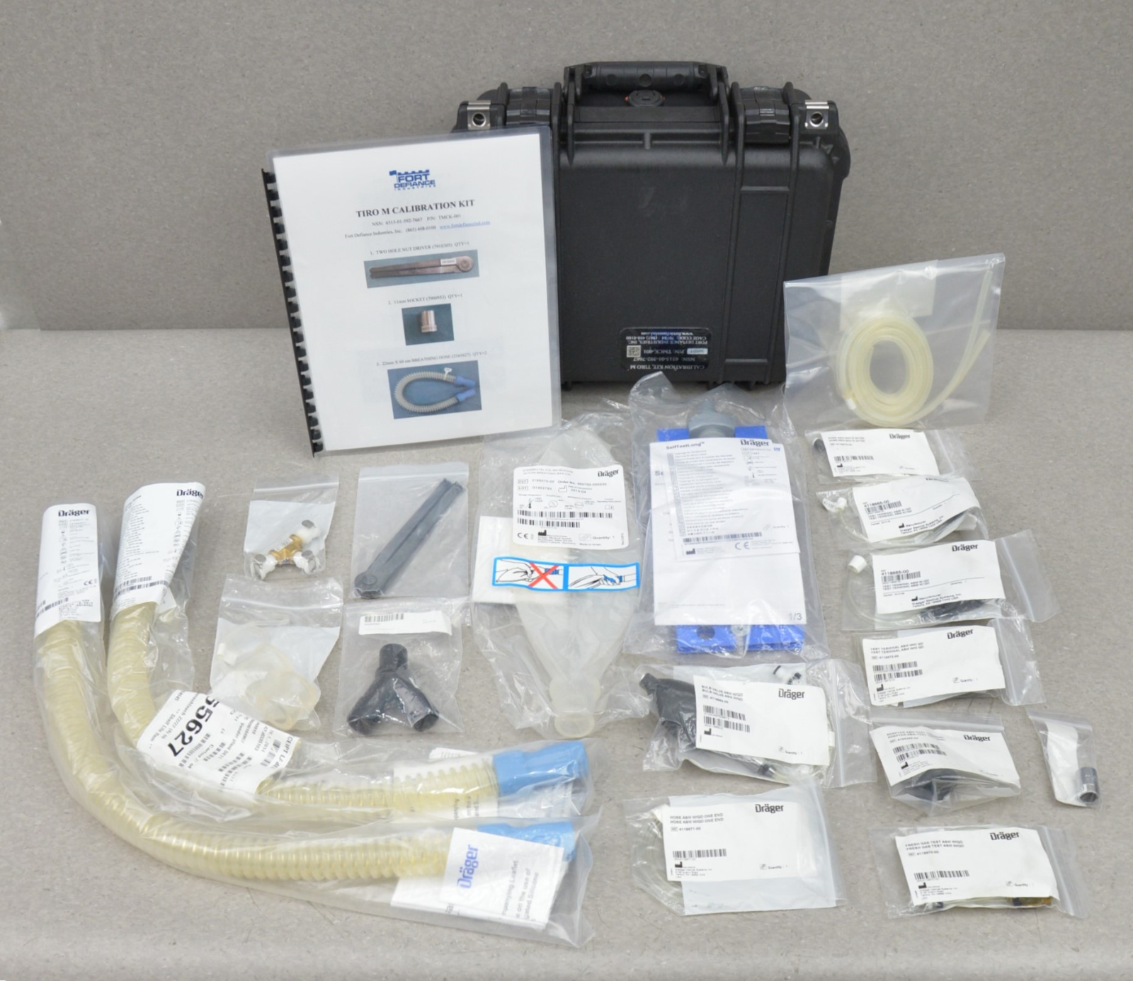 This Fort Defiance Drager Tiro M Calibration Kit TMCK-001 is new. This system comes with a 30 day satisfaction guarantee. Includes everything in the pictures and nothing else.