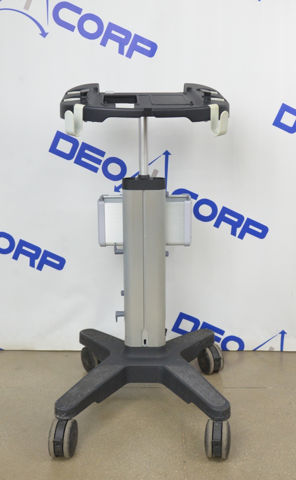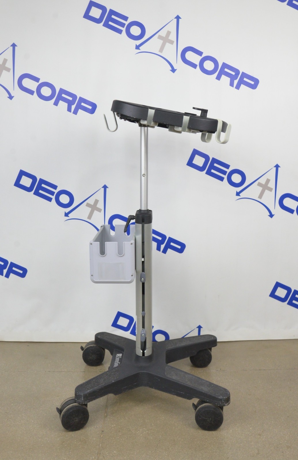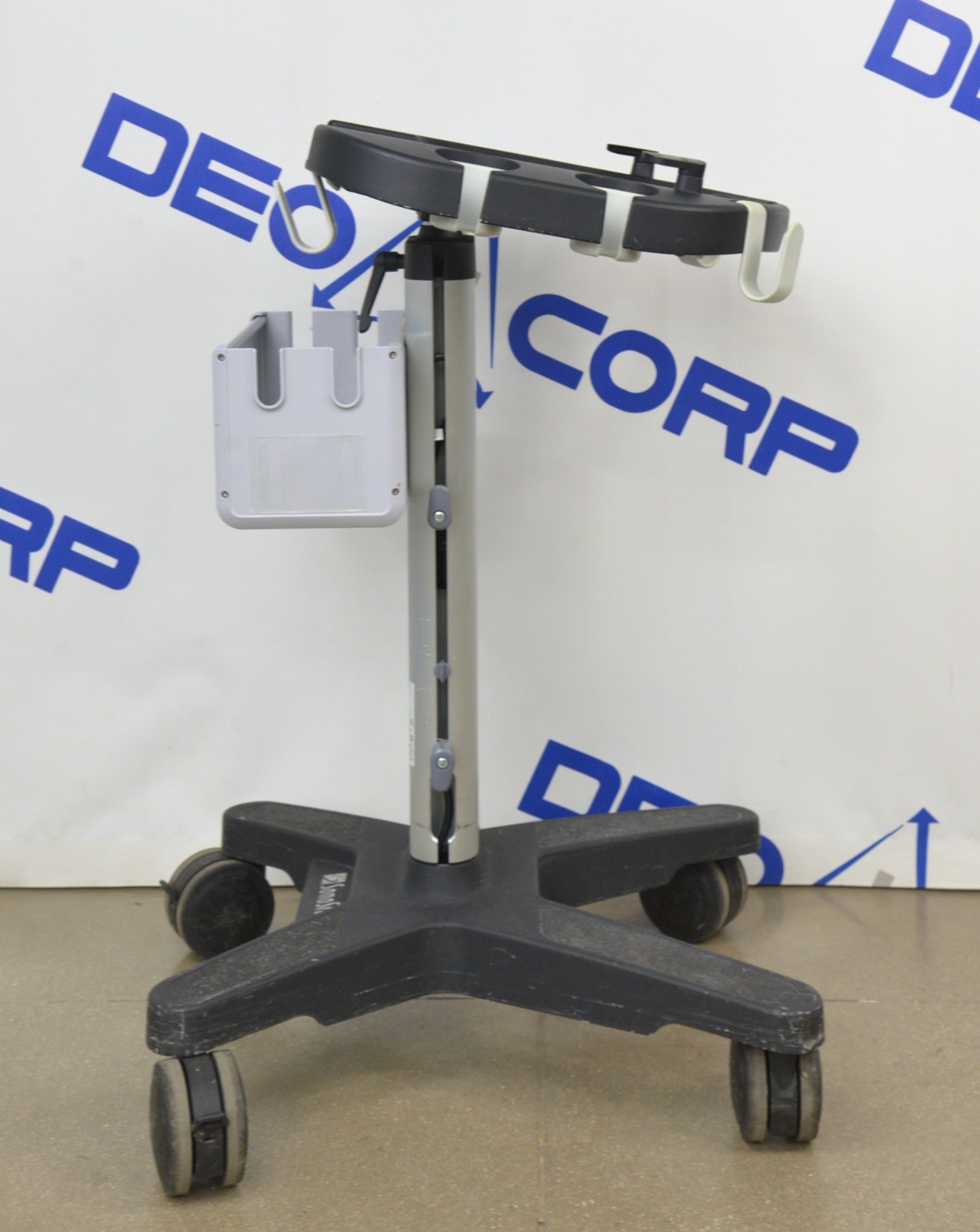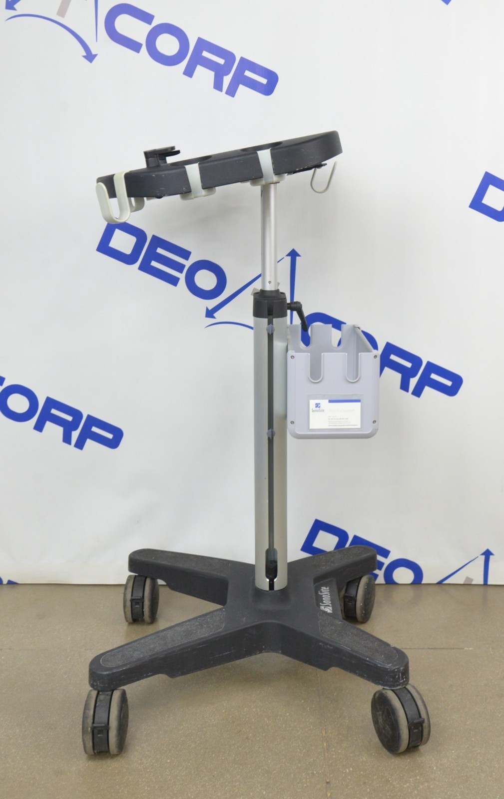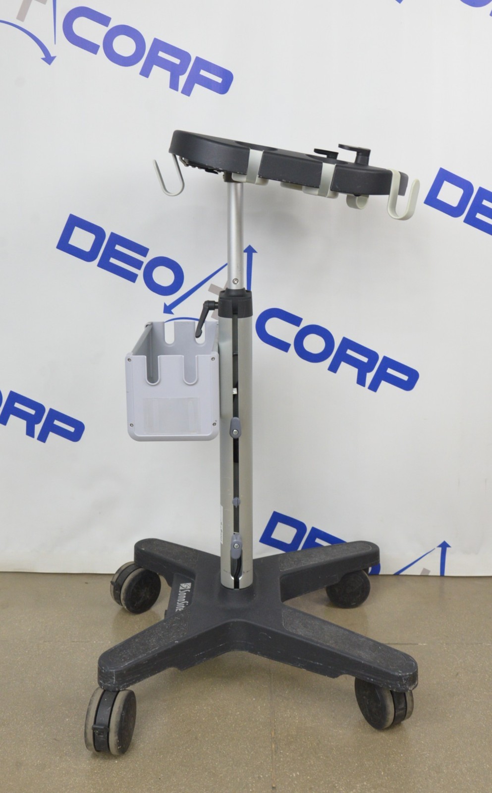 This Fujifilm Sonosite Edge Stand P15800-11 is in great cosmetic condition. All manual adjustments move properly. The wheels roll smoothly and lock securely. There are minor scuff marks from previous use (see photos). This unit comes with a 30 day satisfaction guarantee. Includes everything in the pictures and nothing else.