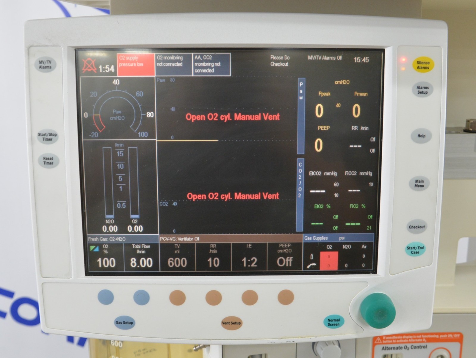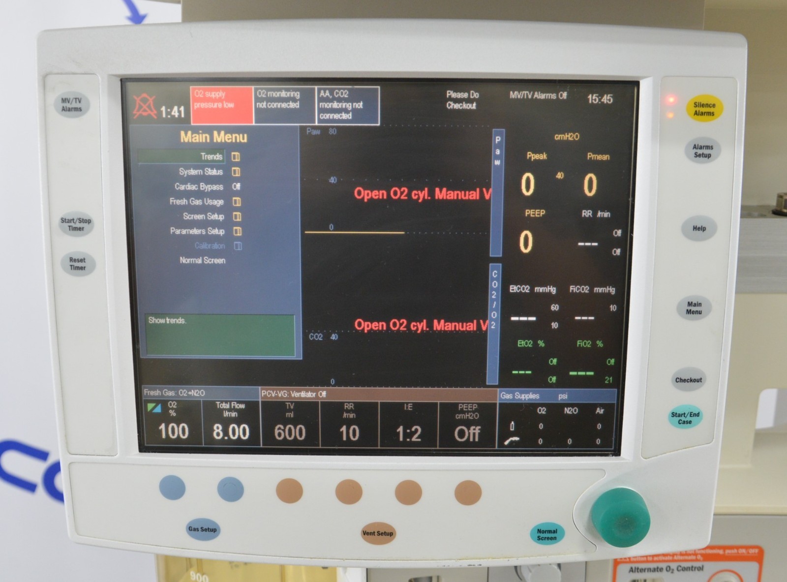 This GE Datex Ohmeda S/5 Avance Anesthesia Machine 1009-9002-000 is in good working condition. The system powers on properly. The display screen has a clear image and responds properly to selection. All connection points are clean and in good condition. There are scuff marks and discoloration from previous use (see photos). This unit comes with a 30 day satisfaction guarantee. Includes everything in the pictures and nothing else.