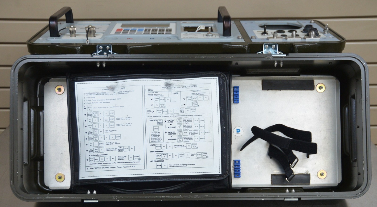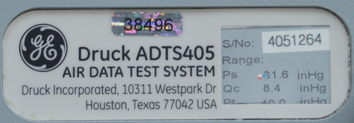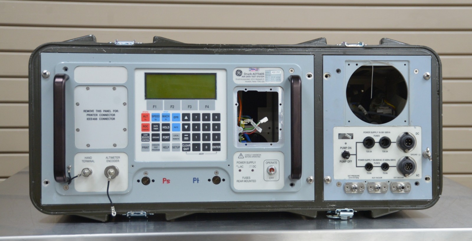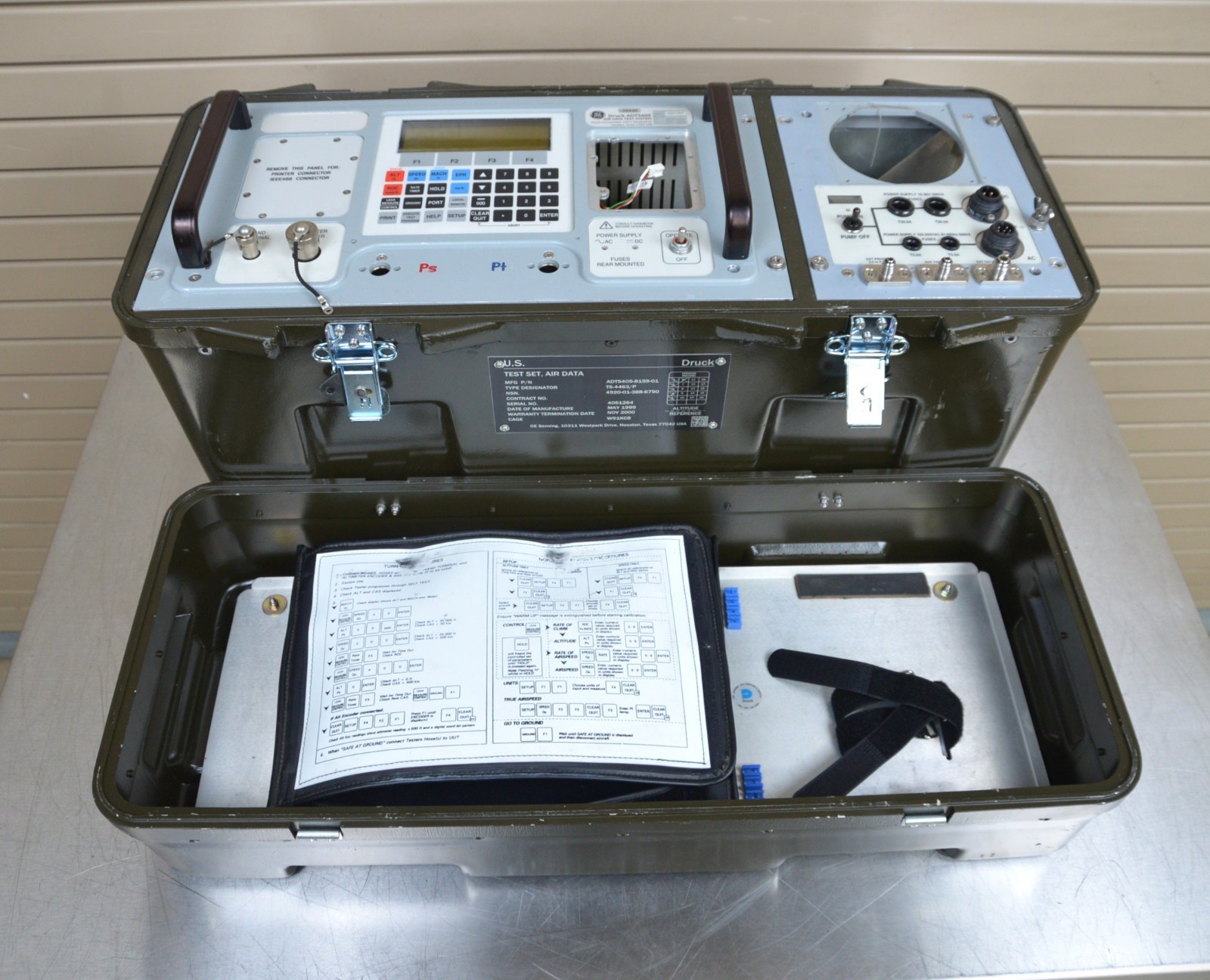 This GE Druck ADTS405 Aircraft Air Data Test System is in good cosmetic condition. This unit has a missing fan outlet and a missing solenoid status indicator, for this reason it will be sold for parts. The ports are clean and in good condition. This unit is missing the wheels. This unit has some and scuff marks from previous use (see photos). Includes everything in the pictures and nothing else.