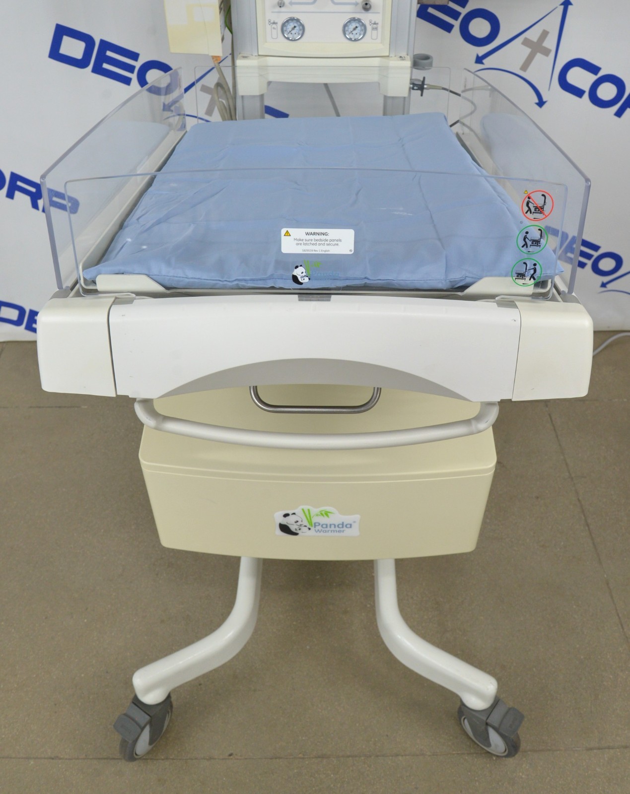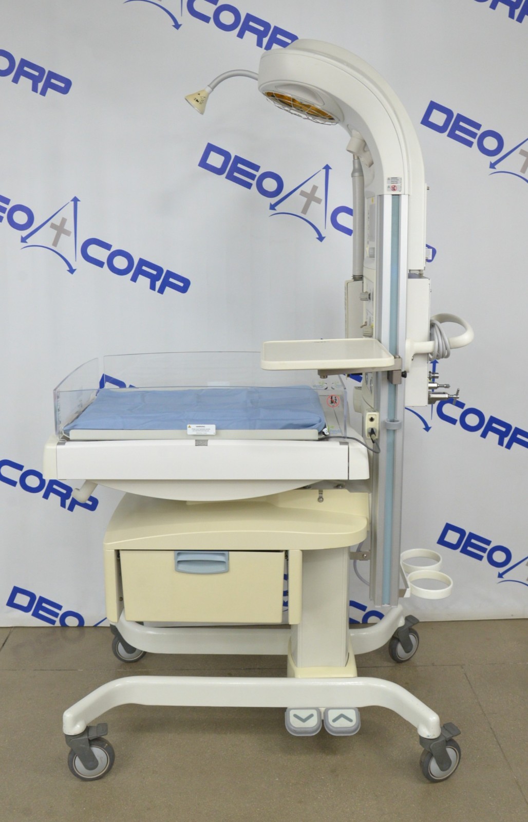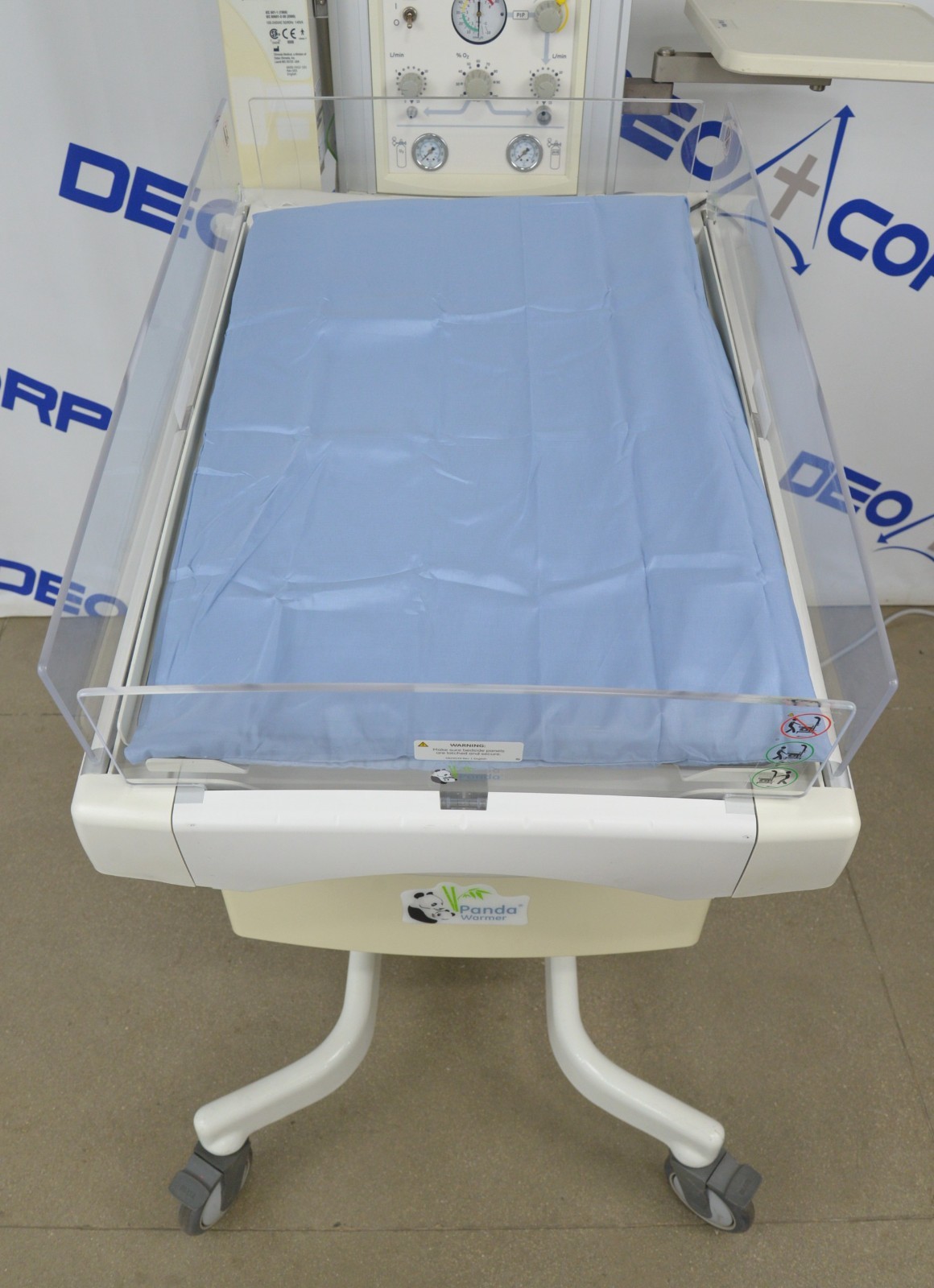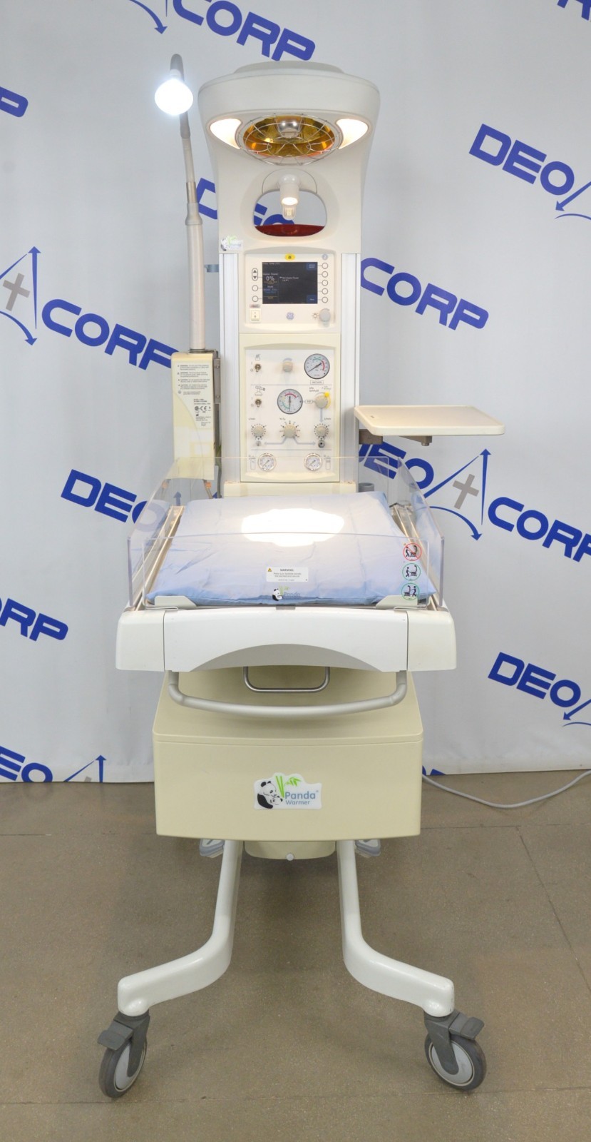 This GE Healthcare Panda IRES Bedded Warmer W/ Masimo SpO2 1502 T-Piece Blender & Giraffe Spot PT Light is in great working condition. The unit powers on and warms up properly. The unit responds to selection and the scale measures accurately. All the adjustments moves smoothly. The spot light has 581 hours. There are scuff marks and discoloration from previous use (see photos). There is a small crack on top of the draw case. This unit comes with a 30 day satisfaction guarantee. Includes everything in the pictures and nothing else.