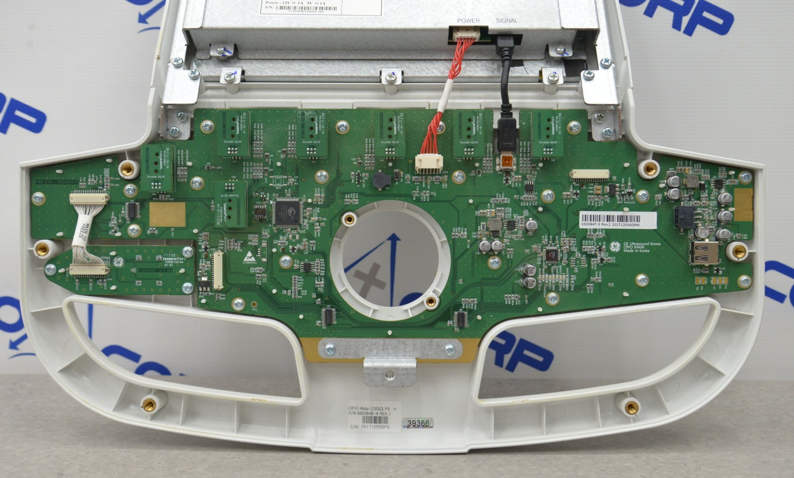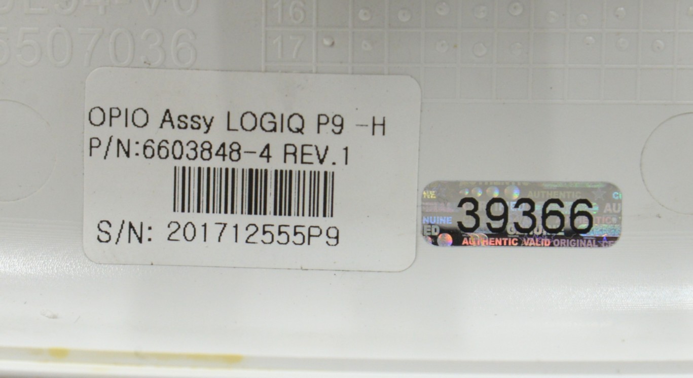 This GE Logiq P9 OPIO Lower Operator Panel 6603848-4 L10H5BTAGE-LP9 is in good working condition. The unit was tested working offsite. There are minor scuff marks and discoloration in the plastic from previous use (see photos). The holes for the top mounting screws have been repaired. This unit does not come with the tracker ball. This unit comes with a 30 day satisfaction guarantee. Includes everything in the pictures and nothing else.