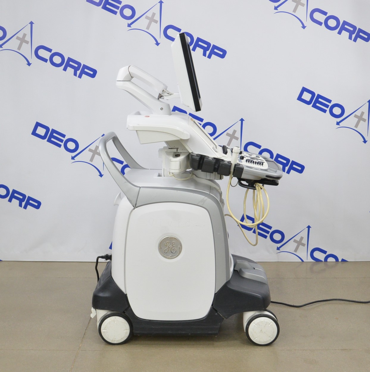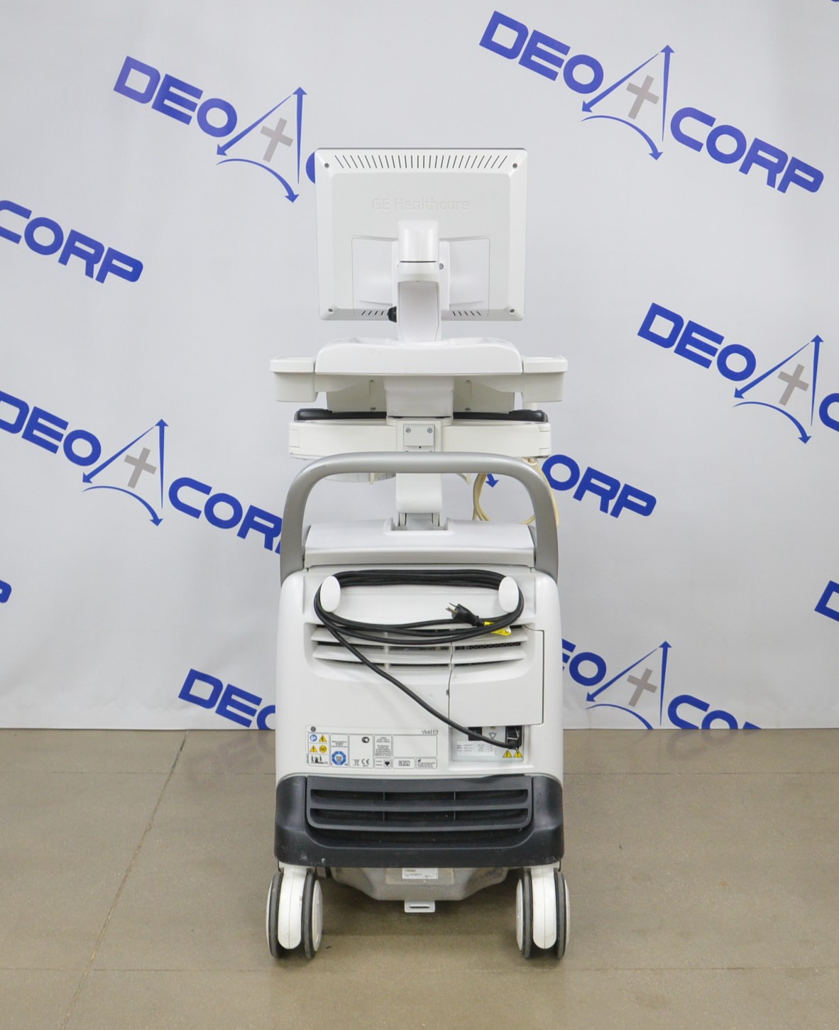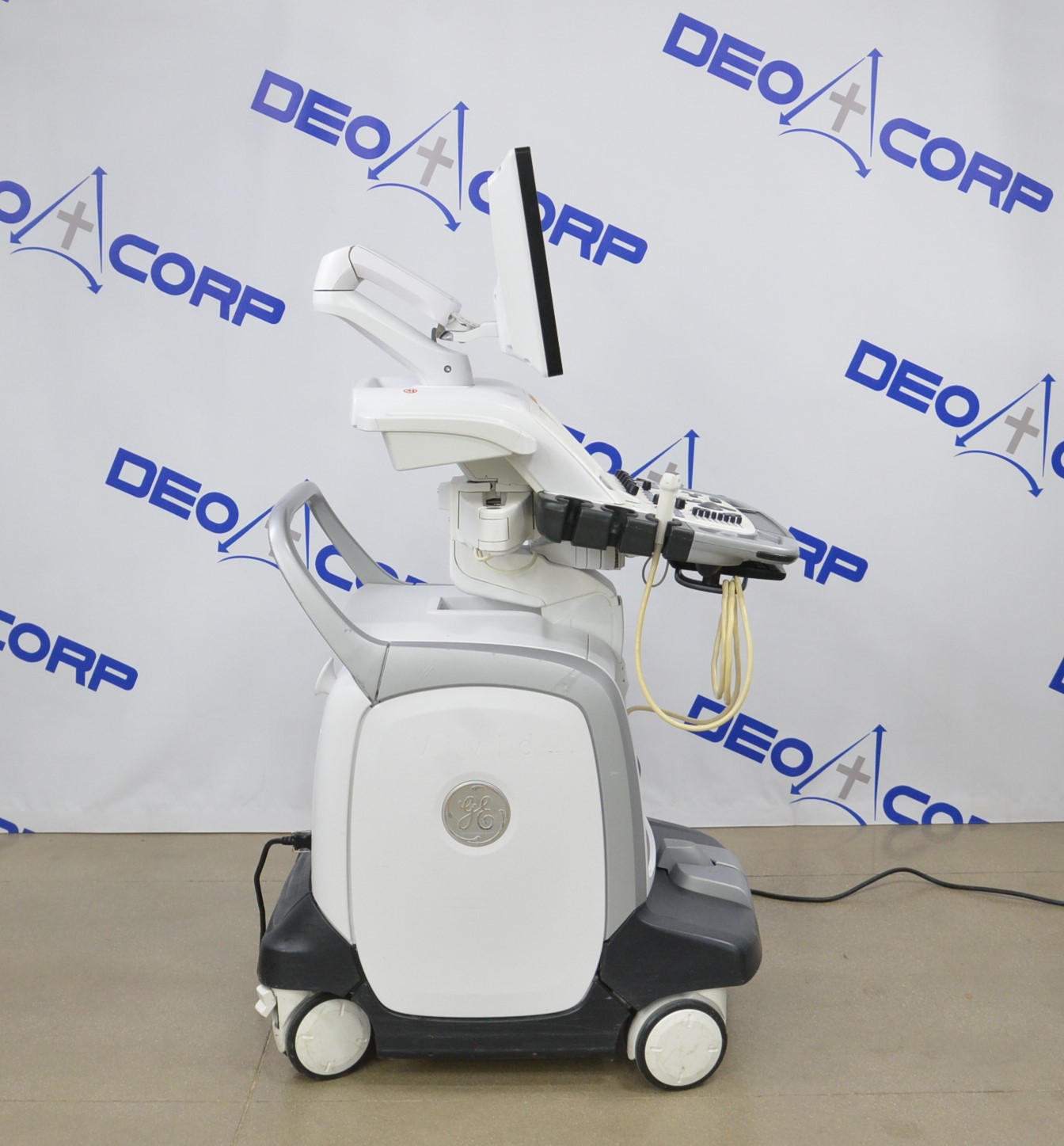 This GE Vivid E9 XDclear Cardiac Ultrasound System W/ M5S-D Probe & P2D Doppler Probe is in great working condition. The system powers on properly. Both display screens produce a clear image and respond to all selections. The connections are clean and in good condition. There are minor scuff marks from previous use (see photos). This unit comes with a 30 day satisfaction guarantee. Includes everything in the pictures and nothing else.