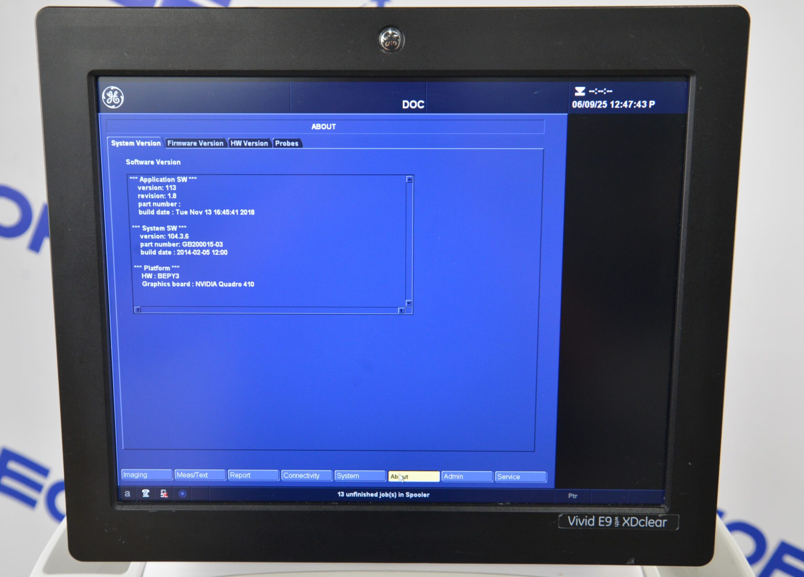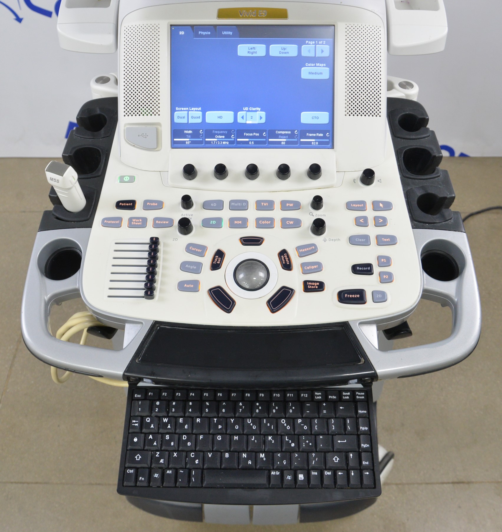 GE Vivid E9 XDclear Cardiac Ultrasound System W/ M5S-D Probe & P2D Doppler Probe