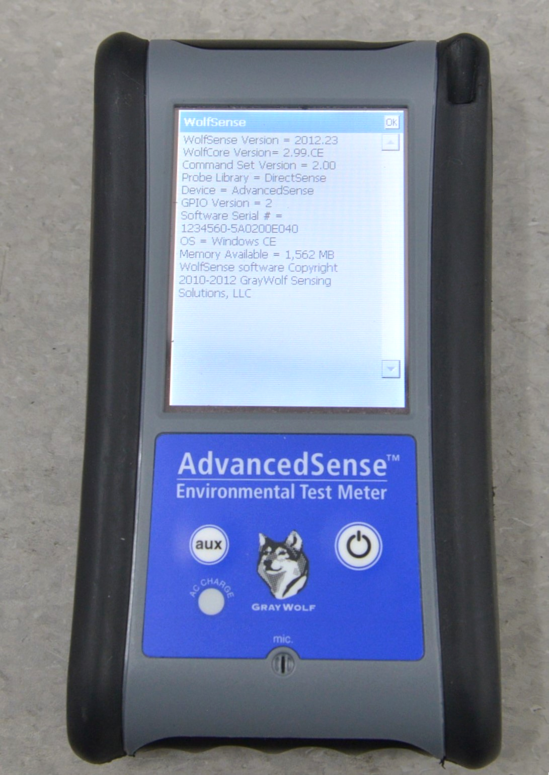 This Graywolf AdvancedSense Environmental Test Meter w/ IQ-610 Quality Unit is in excellent working condition. This system appears to have little use. The unit powers on and the buttons respond properly to selections. This unit measures properly once the IQ-610 is connected. The IQ-610 Quality Unit takes 2 D batteries, but are not included. There are minor scuff marks from previous use (see photos). This unit comes with a 30 day satisfaction guarantee. Includes everything in the pictures and nothing else.