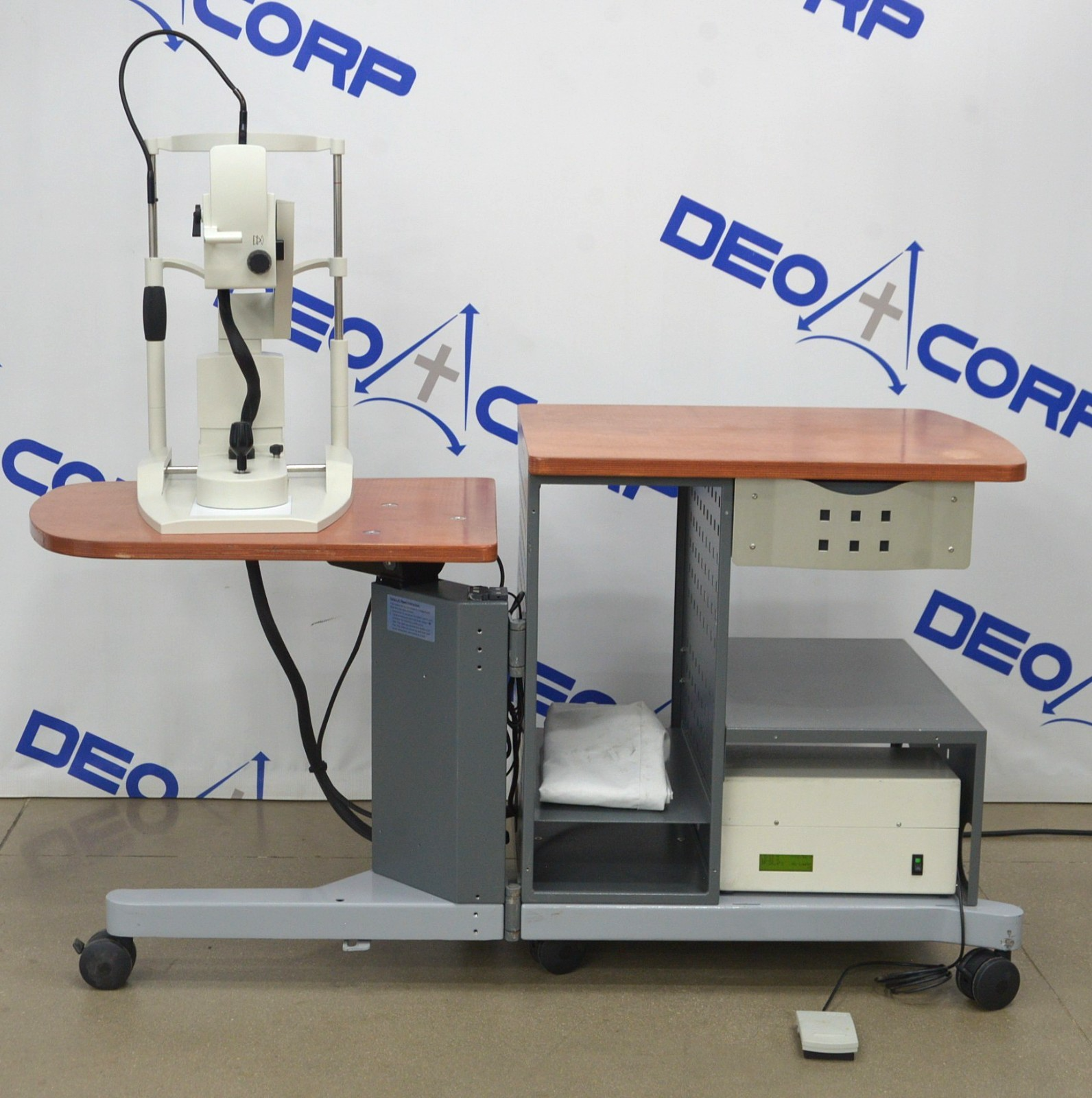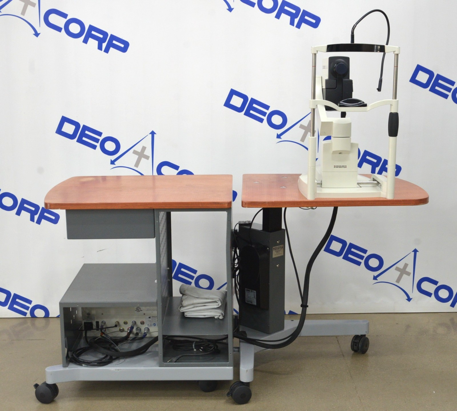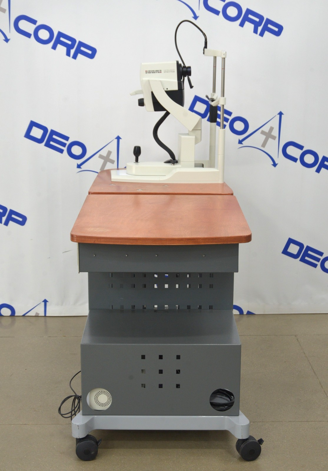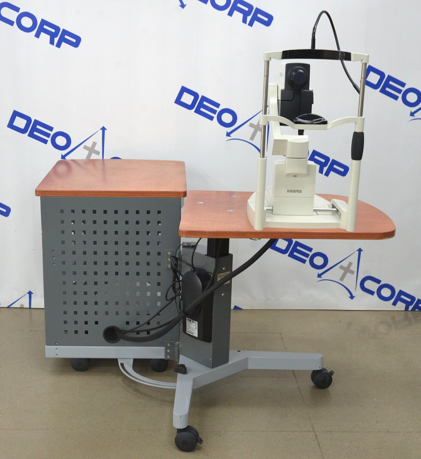 This Heidelberg Engineering HRA OCT Spectralis Ophthalmic Imaging System is in good cosmetic condition. The table powers on and moves through all range of motion, however, the laser power supply box has a broken fiber cable to the Spectralis Ophthalmic Imaging System, for that reason it will be sold for parts. The Spectralis Ophthalmic Imaging System moves smoothly through out all range of motion. The lenses have a a clear view with no obstructions. There are scuff marks and a chip in the table from previous use (see photos). Includes everything in the pictures and nothing else.