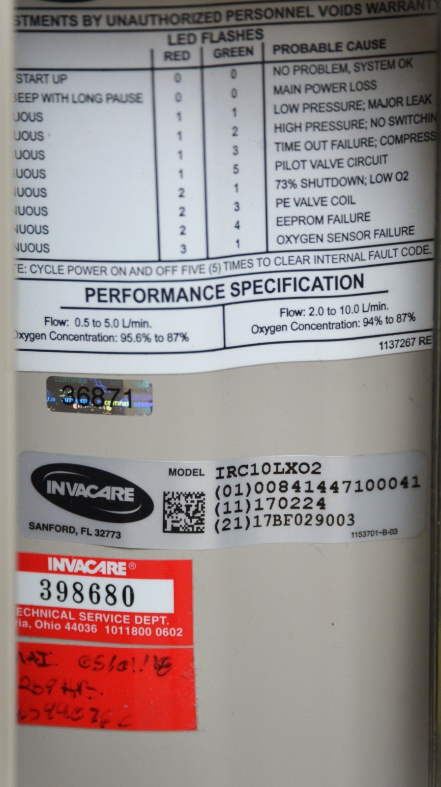 Invacare Platinum 10 Concentrator IRC10LXO2