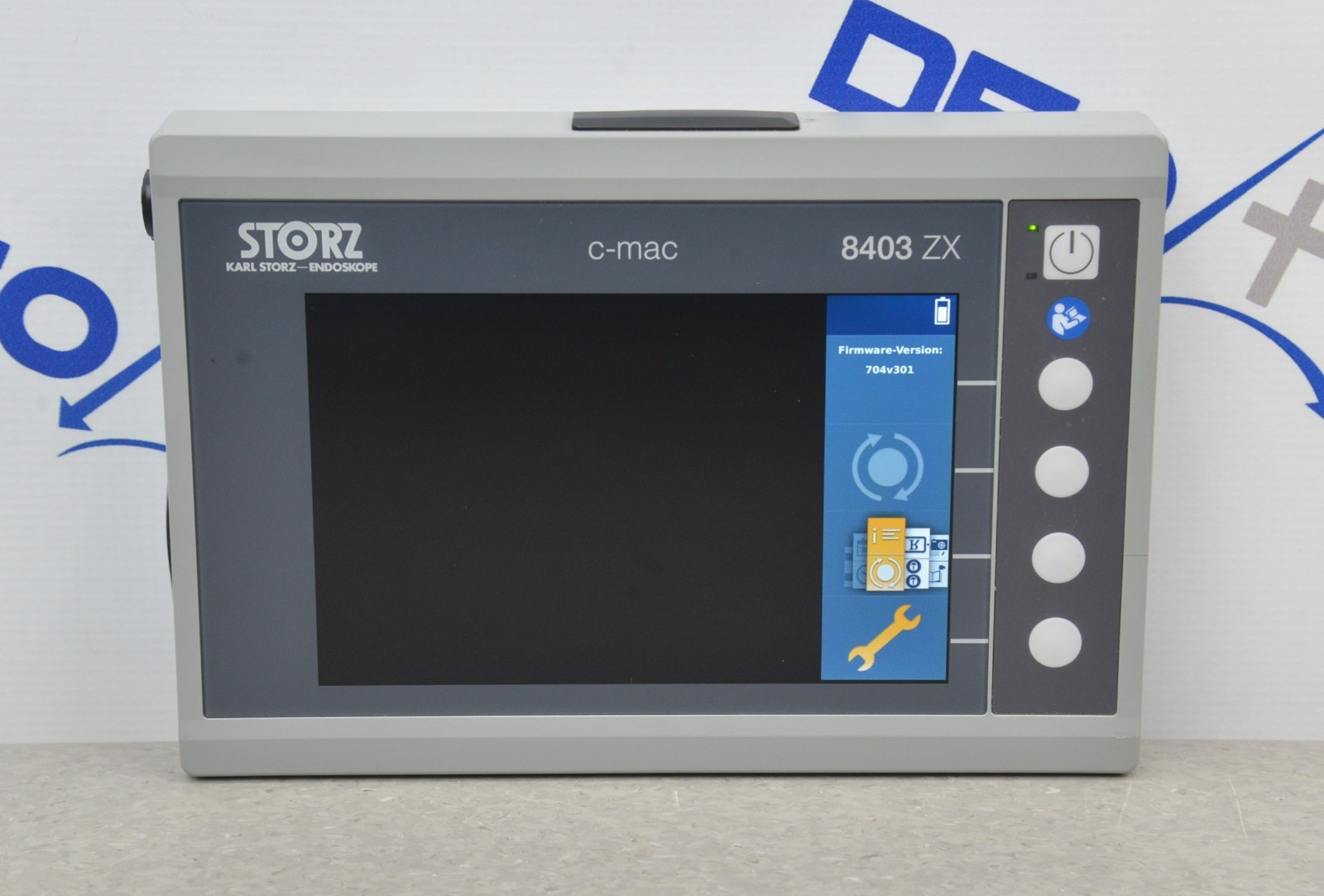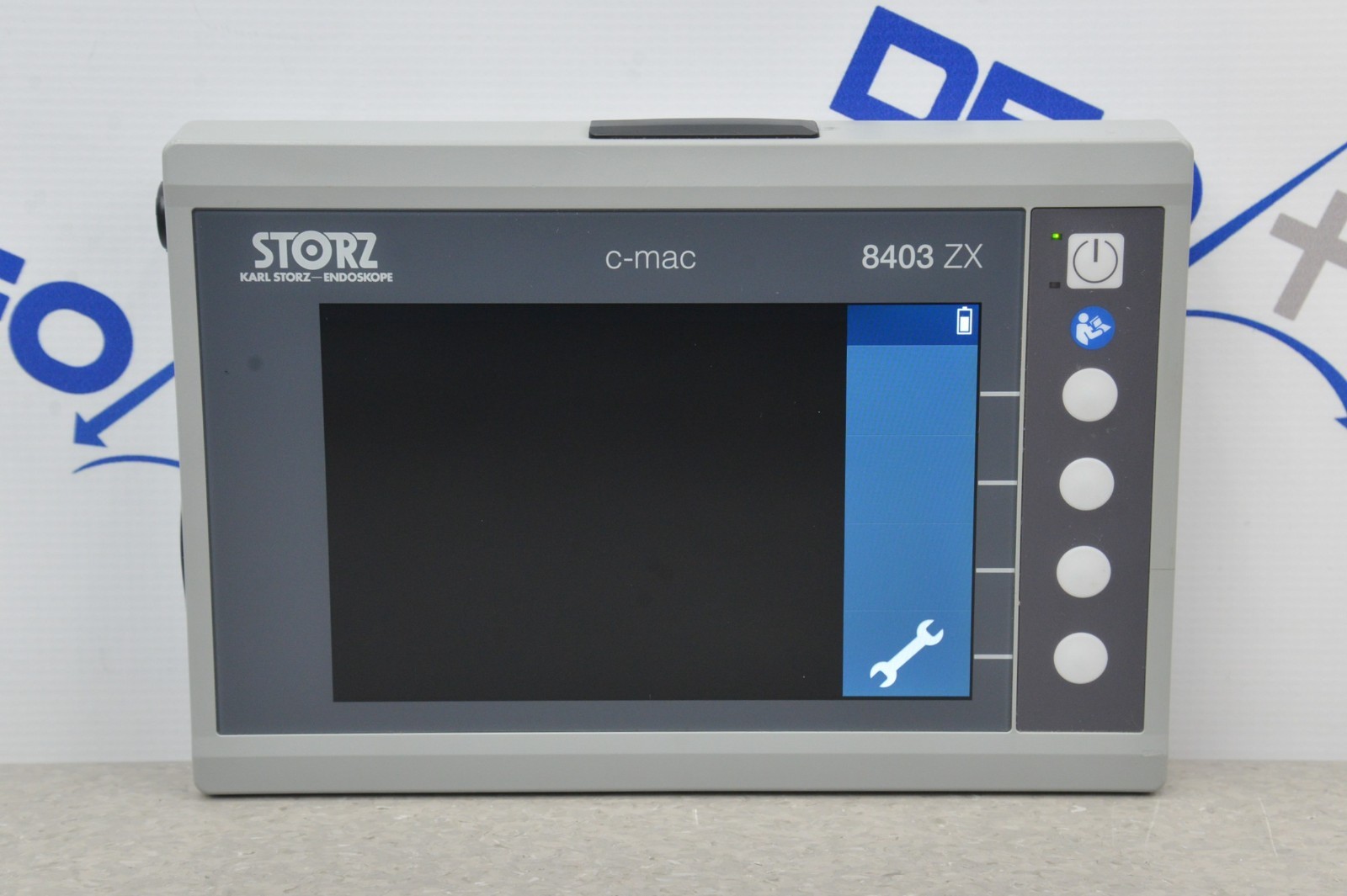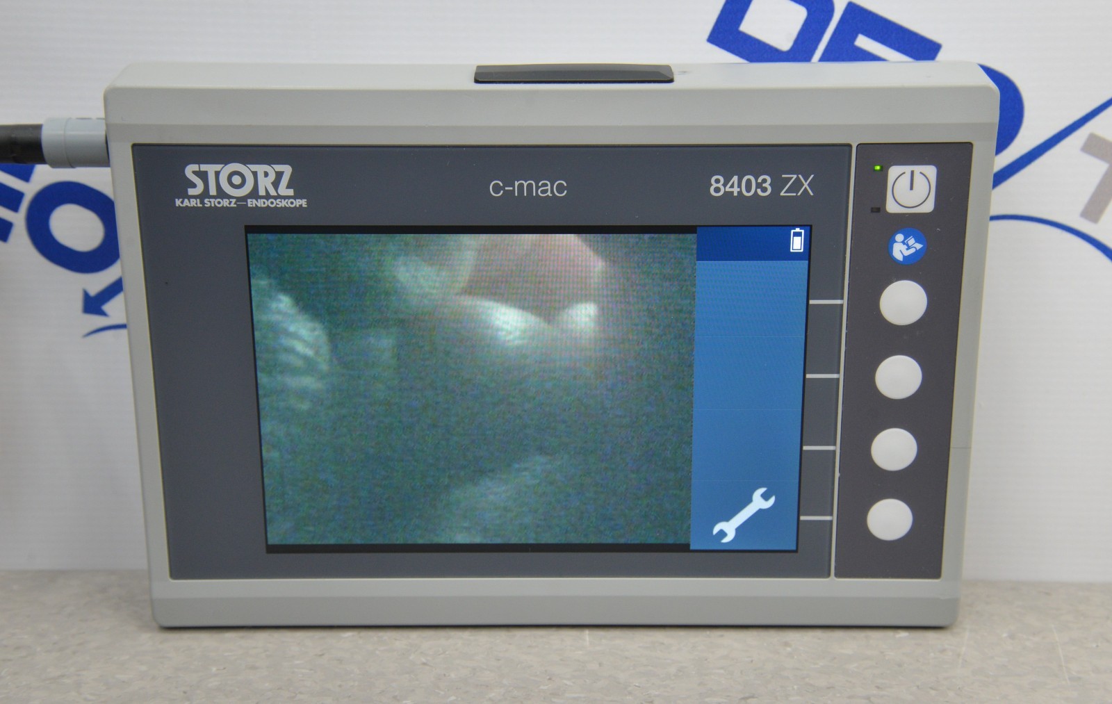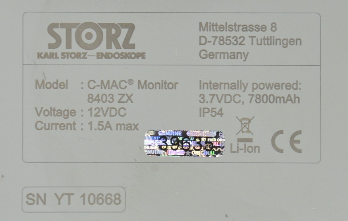 This Karl Storz 8402XS C-MAC S Imager & 8403ZX Video Monitor is in good working condition. The unit powers on properly. The screen produces a clear image and the buttons respond to selection. The lens has a clear view with no visible obstructions. All connection points are clean and in good condition. The unit is powered by a 12V power supply; however, the power supply is not included. There are some scuff marks and a small crack from previous use (see photos). This unit comes with a 30 day satisfaction guarantee. Includes everything in the pictures and nothing else.