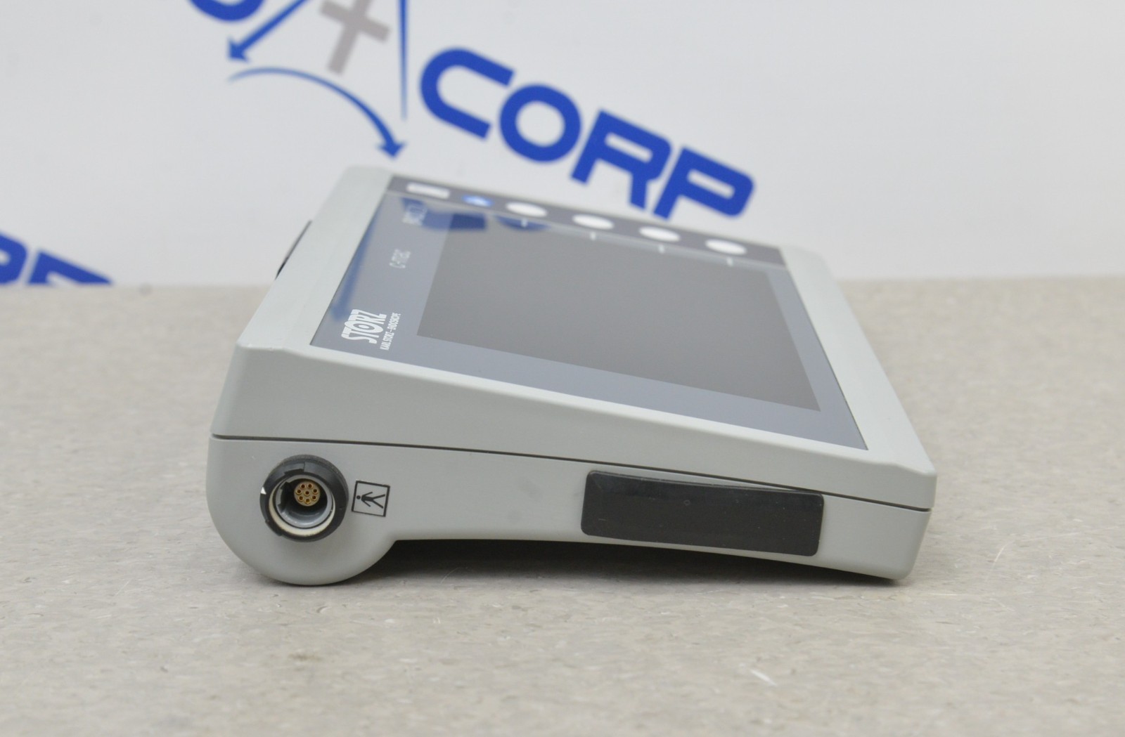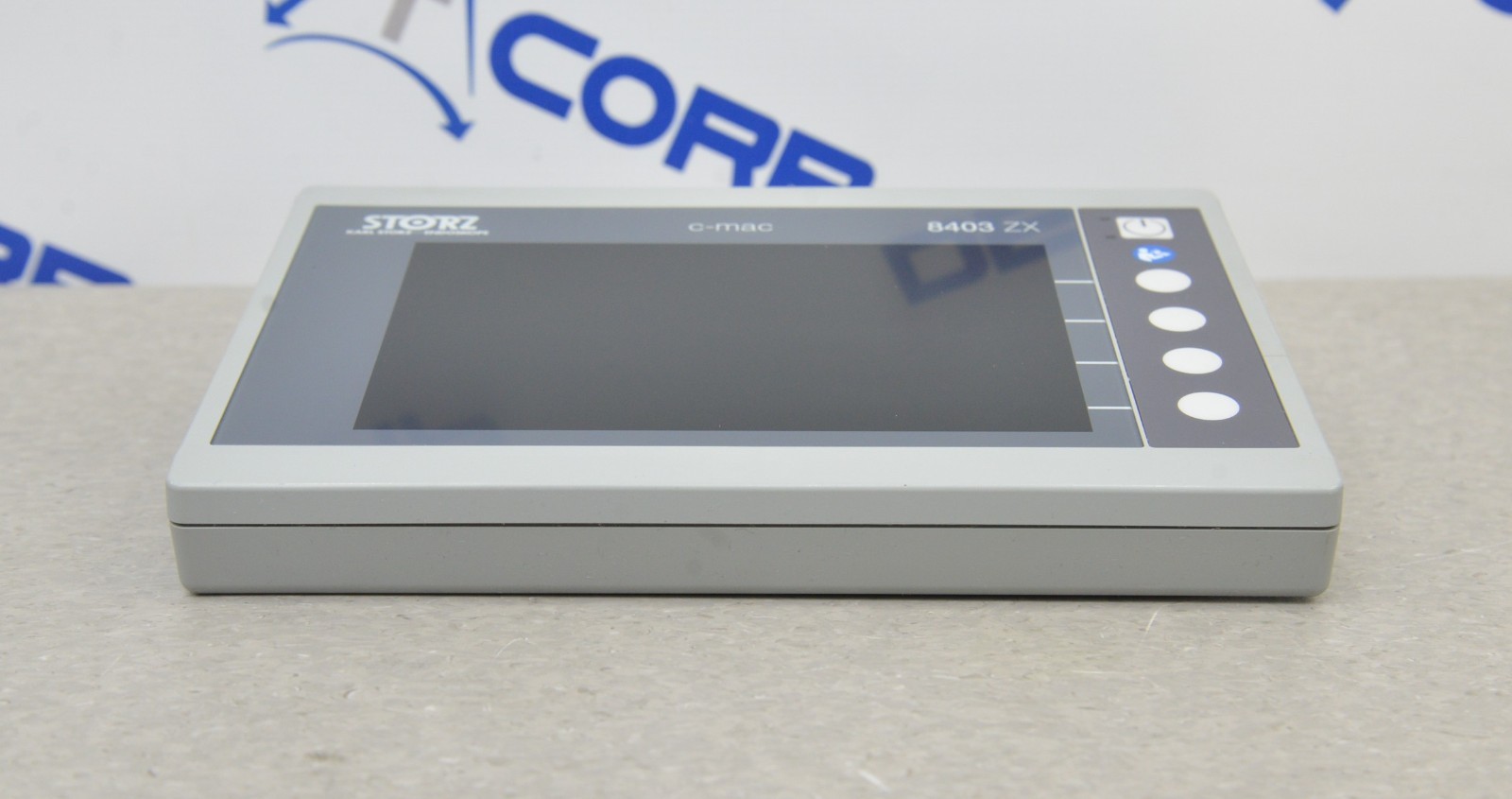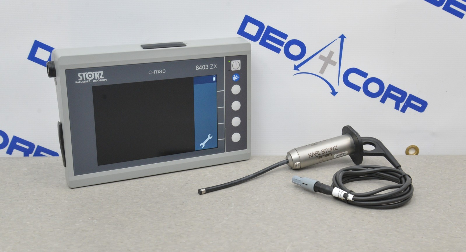 This Karl Storz 8402XS C-MAC S Imager & 8403ZX Video Monitor is in good working condition. The unit powers on properly. The screen produces a clear image and the buttons respond to selection. The lens has a clear view with no visible obstructions. All connection points are clean and in good condition. The unit is powered by a 12V power supply; however, the power supply is not included. There are some scuff marks and a small crack from previous use (see photos). This unit comes with a 30 day satisfaction guarantee. Includes everything in the pictures and nothing else.
