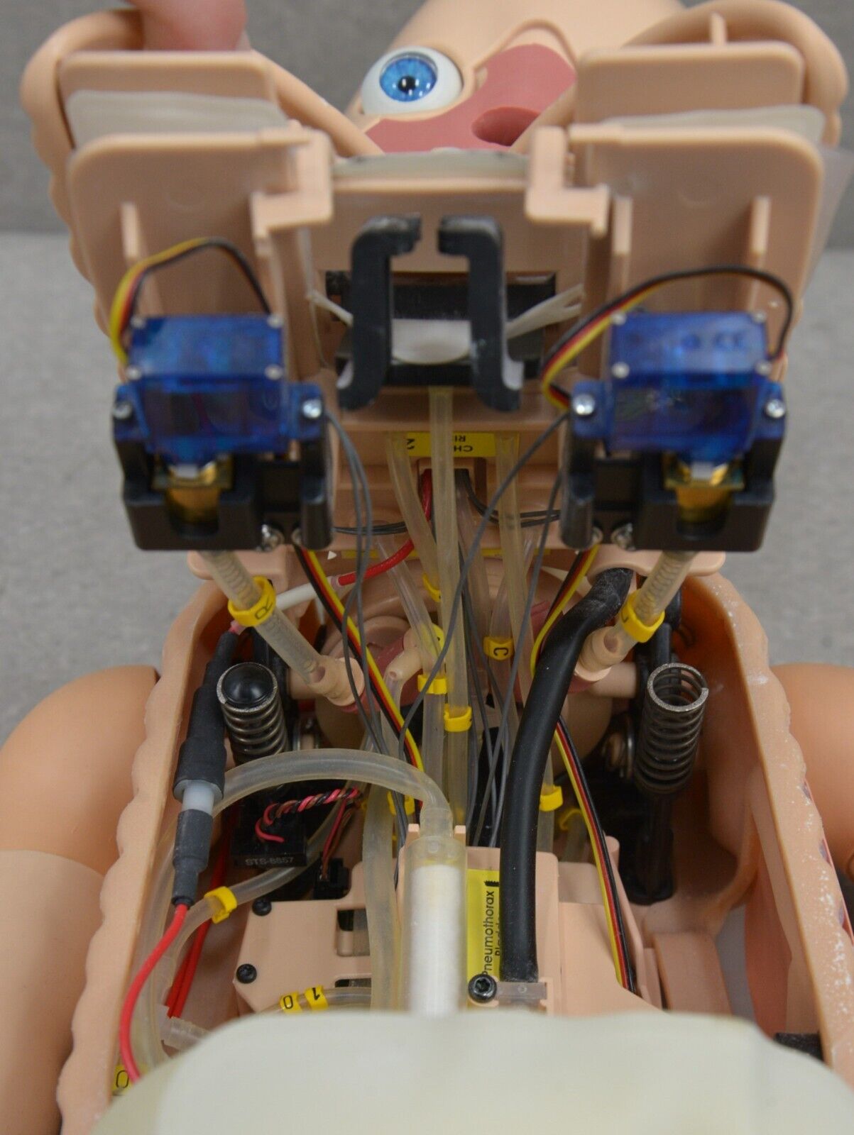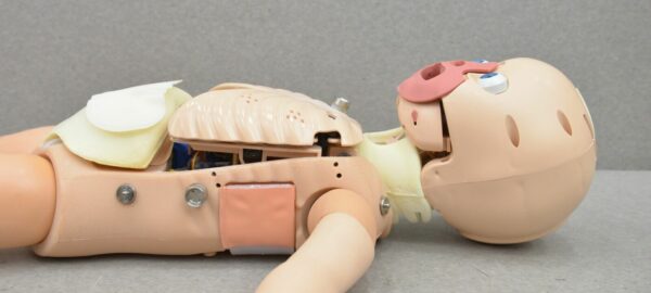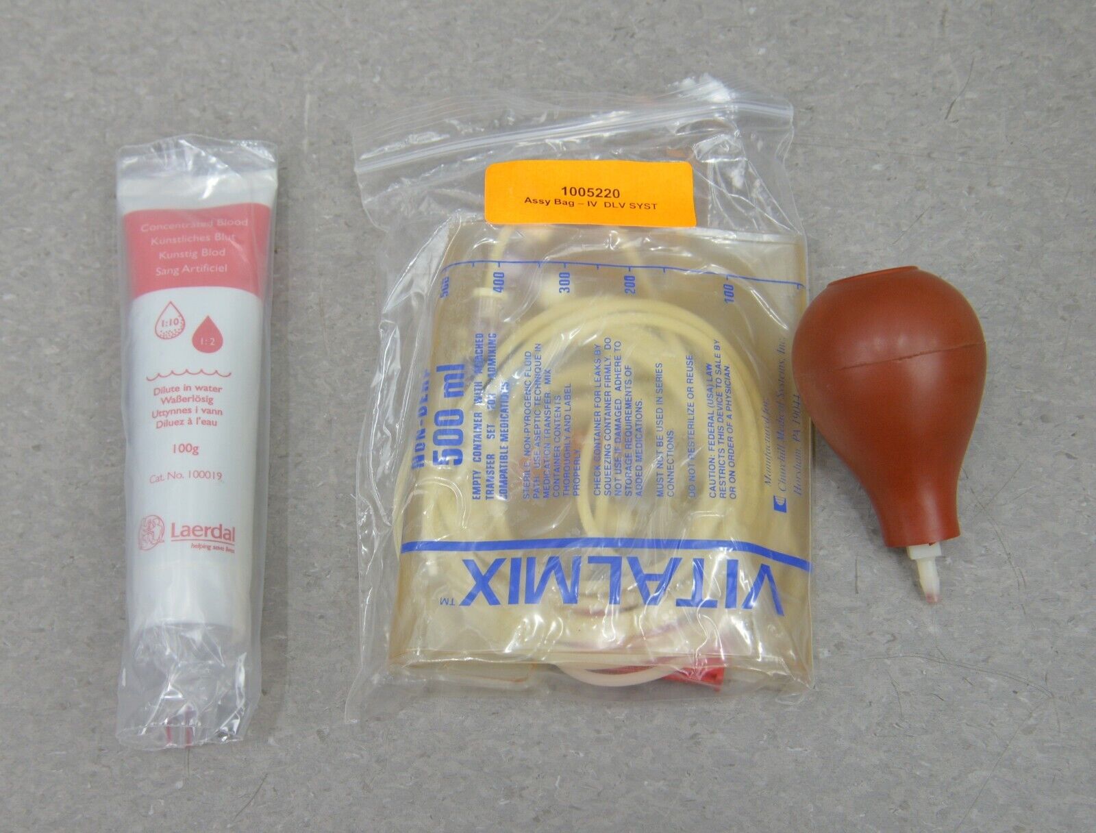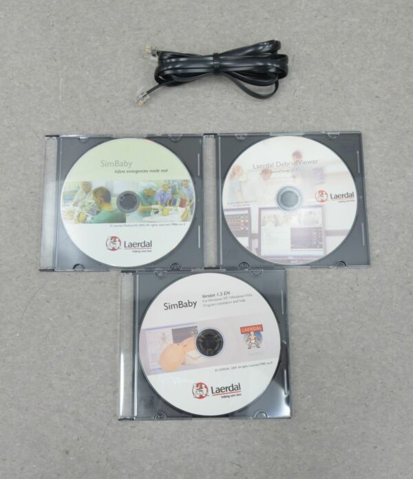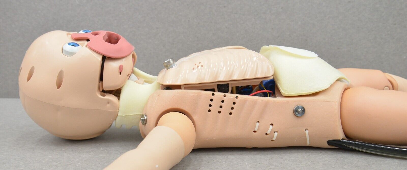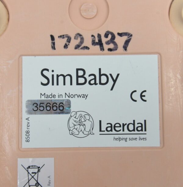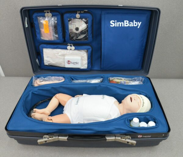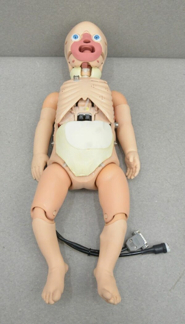 This Laerdal SimBaby Training Manikin W/ Accessories comes from a working environment and is in good condition. All connection points are clean and in good condition. The cosmetic condition is good with a few minor scuffs and discoloration (see photos). See list below for included items. This unit comes with a 30 day satisfaction guarantee. Includes everything in the pictures and nothing else.