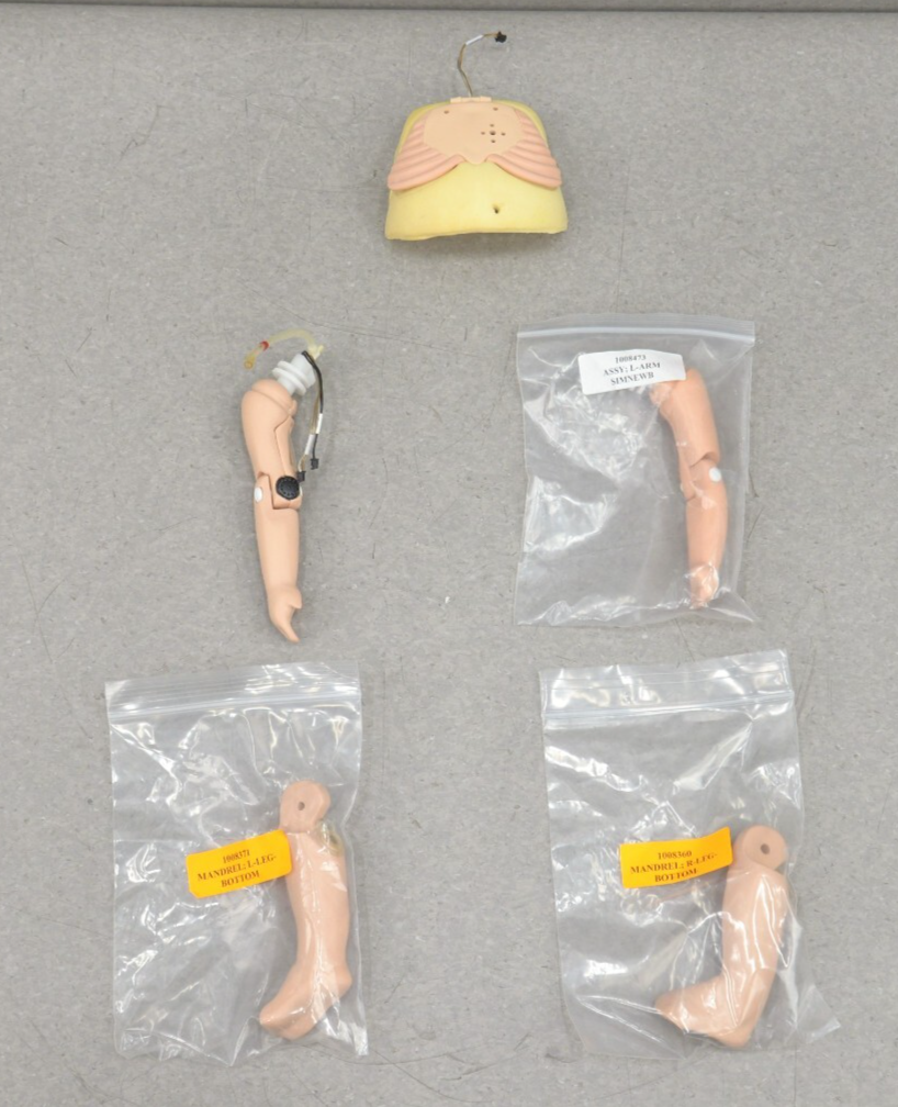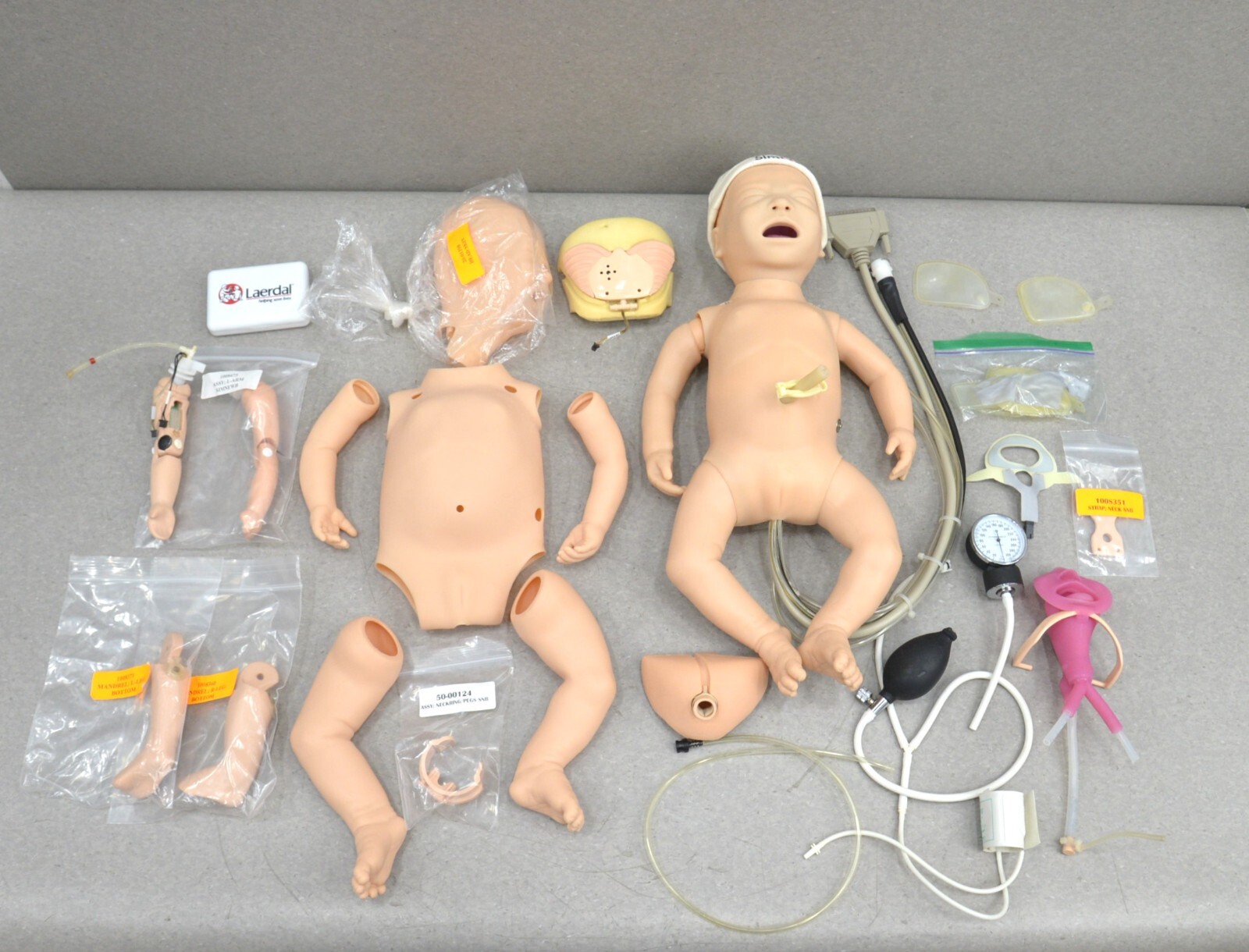 This Laerdal SimNewB Advanced Baby New Born Trainer Manikin 225-00001 W/ Accessories is new. This unit comes with a 30 day satisfaction guarantee. Includes everything in the pictures and nothing else.