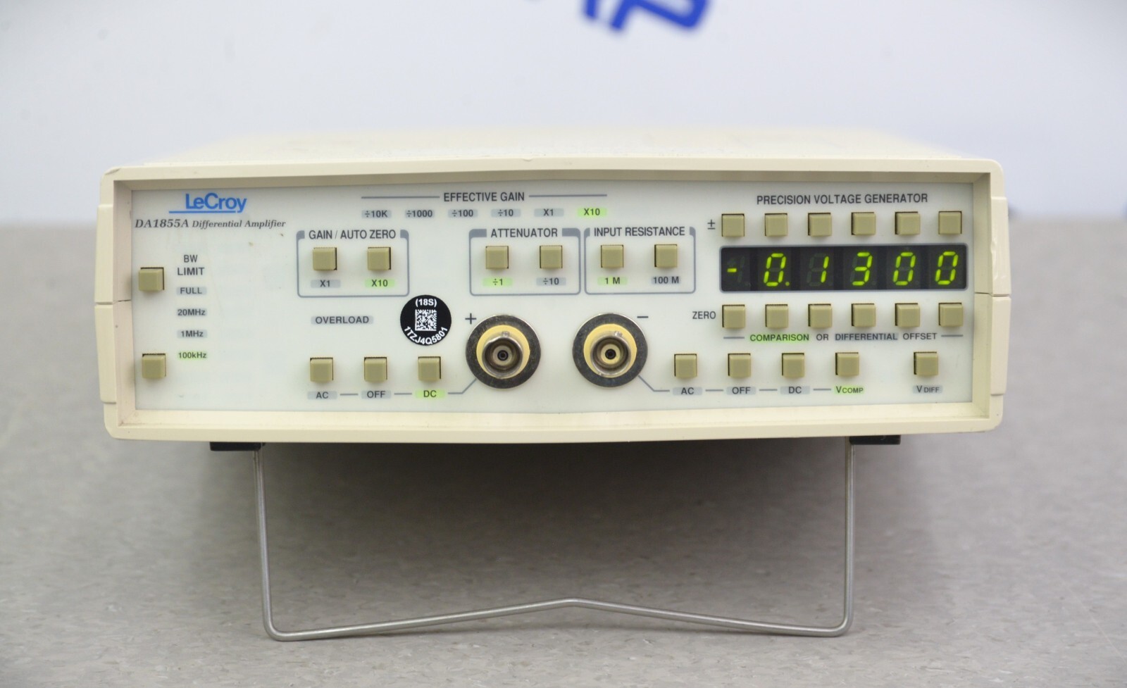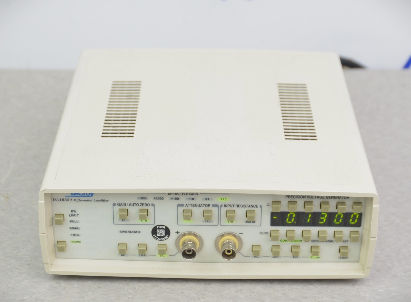 This LeCroy DA1855A Differential Amplifier is in good working condition. This unit powers on properly and all the buttons respond to selection. The connections are clean and in good condition. There are minor scuff marks from previous use (see photos). This unit comes with a 30 day satisfaction guarantee. Includes everything in the pictures and nothing else.