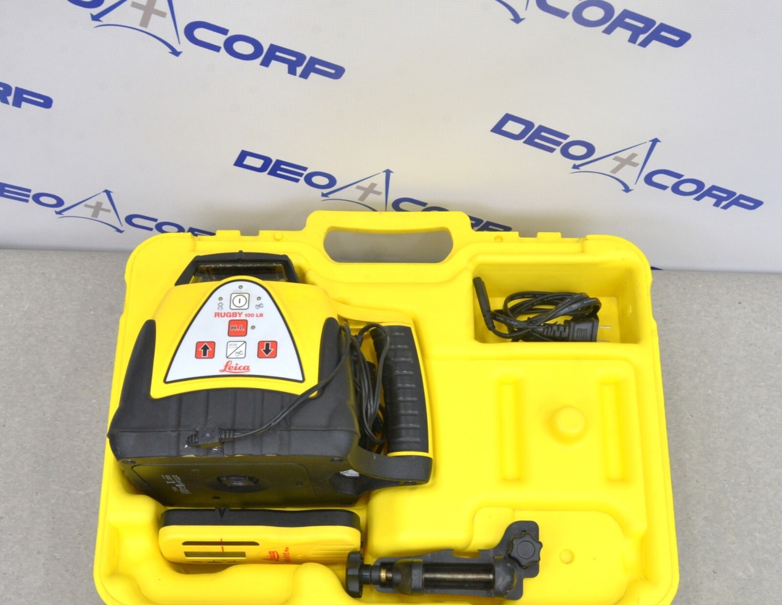 The Leica Geosystems Rugby 100 LR Rotary Laser Level w/ Rod-Eye Pro Receiver is in good working condition. The unit powers on and the buttons respond properly to selection. We are not experts in the subject matter; therefore, we are unable to fully test this unit. There are some minor scuff marks from previous use (see photos). This receiver uses two AA batteries. Battery used for testing only, it is not included. There is also no mount included with this unit. This unit comes with a 30 day satisfaction guarantee. Includes everything in the pictures and nothing else.