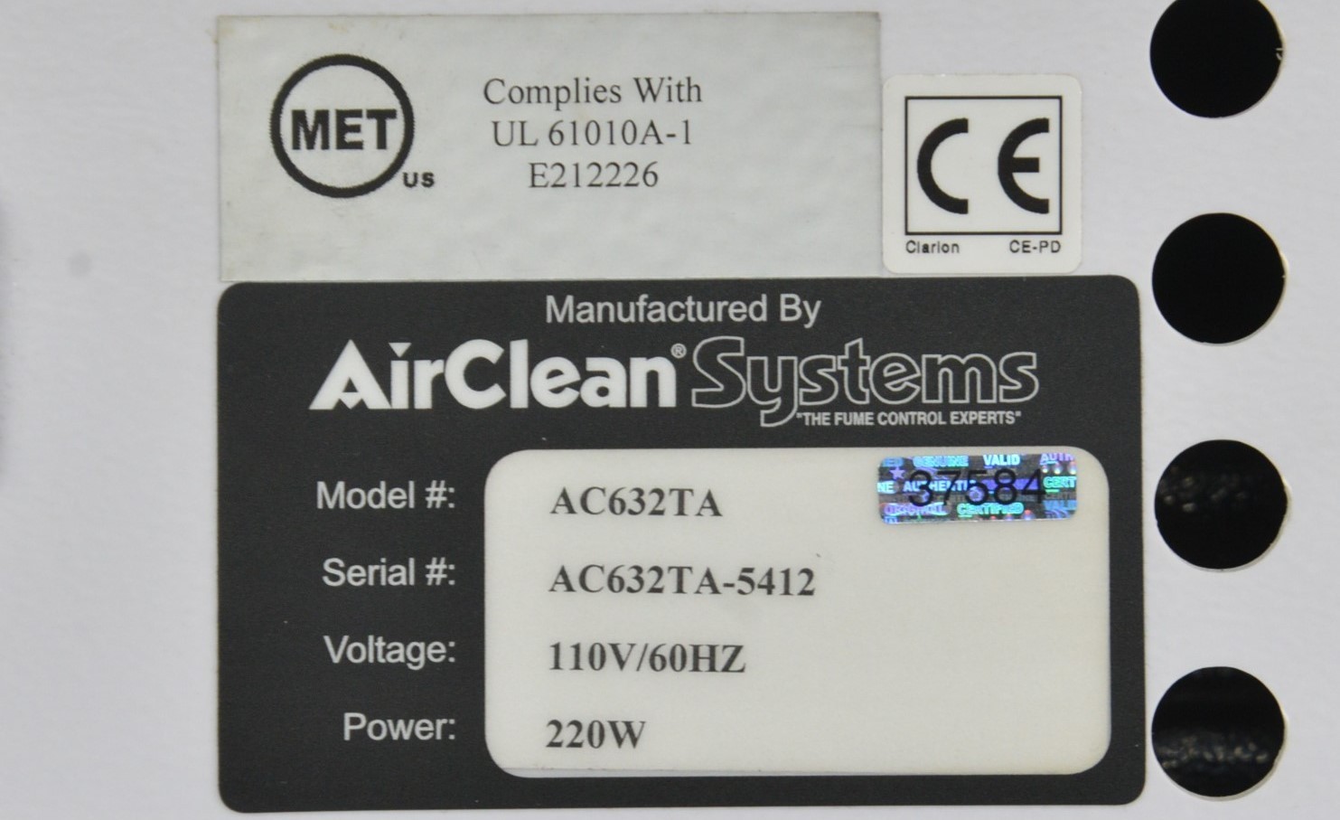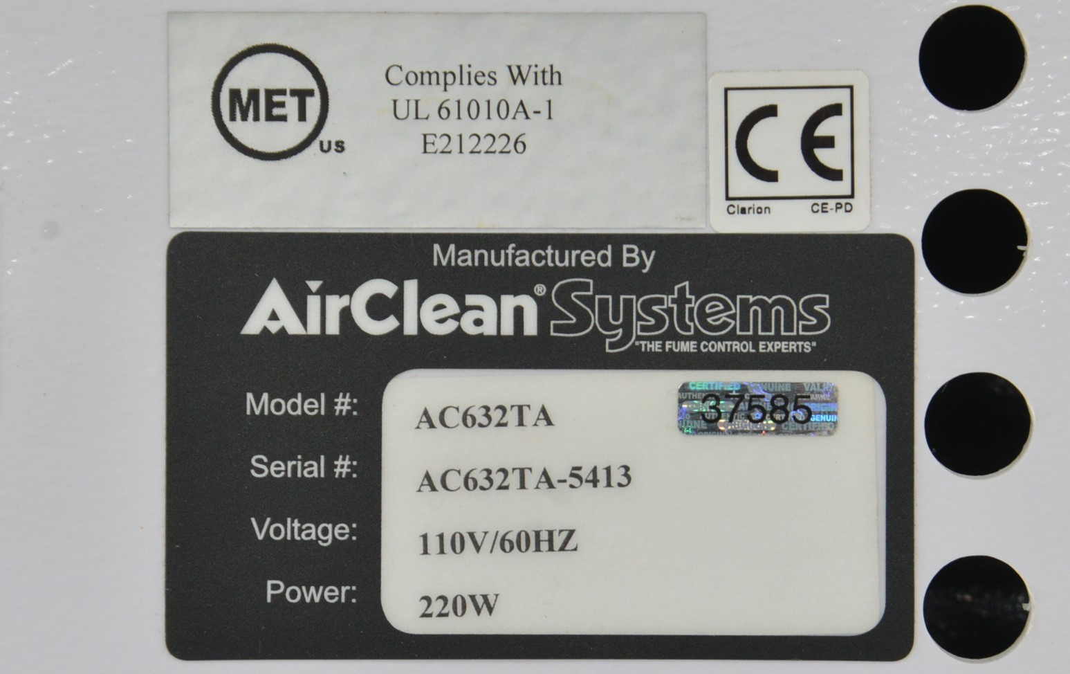 Lot of 2 Airclean Systems 600 AC632TA Ductless Chemical Workstation