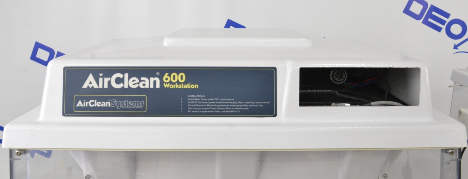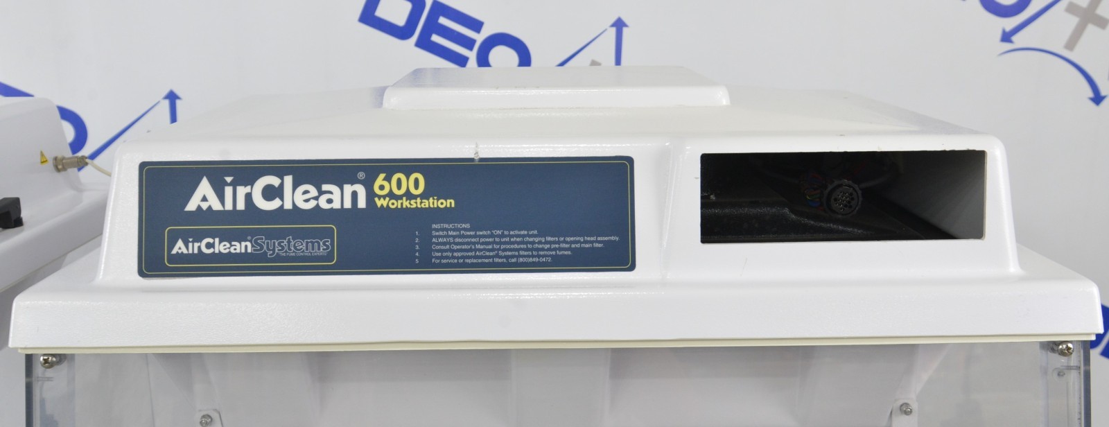 This Lot of 2 Airclean Systems 600 AC632TA Ductless Chemical Workstation is in good cosmetic condition; however, the front control panels are missing, so these units can not be powered on, for this reason they being sold for parts. The back light powers on. There are scuff marks from previous use (see photos). Includes everything in the pictures and nothing else.