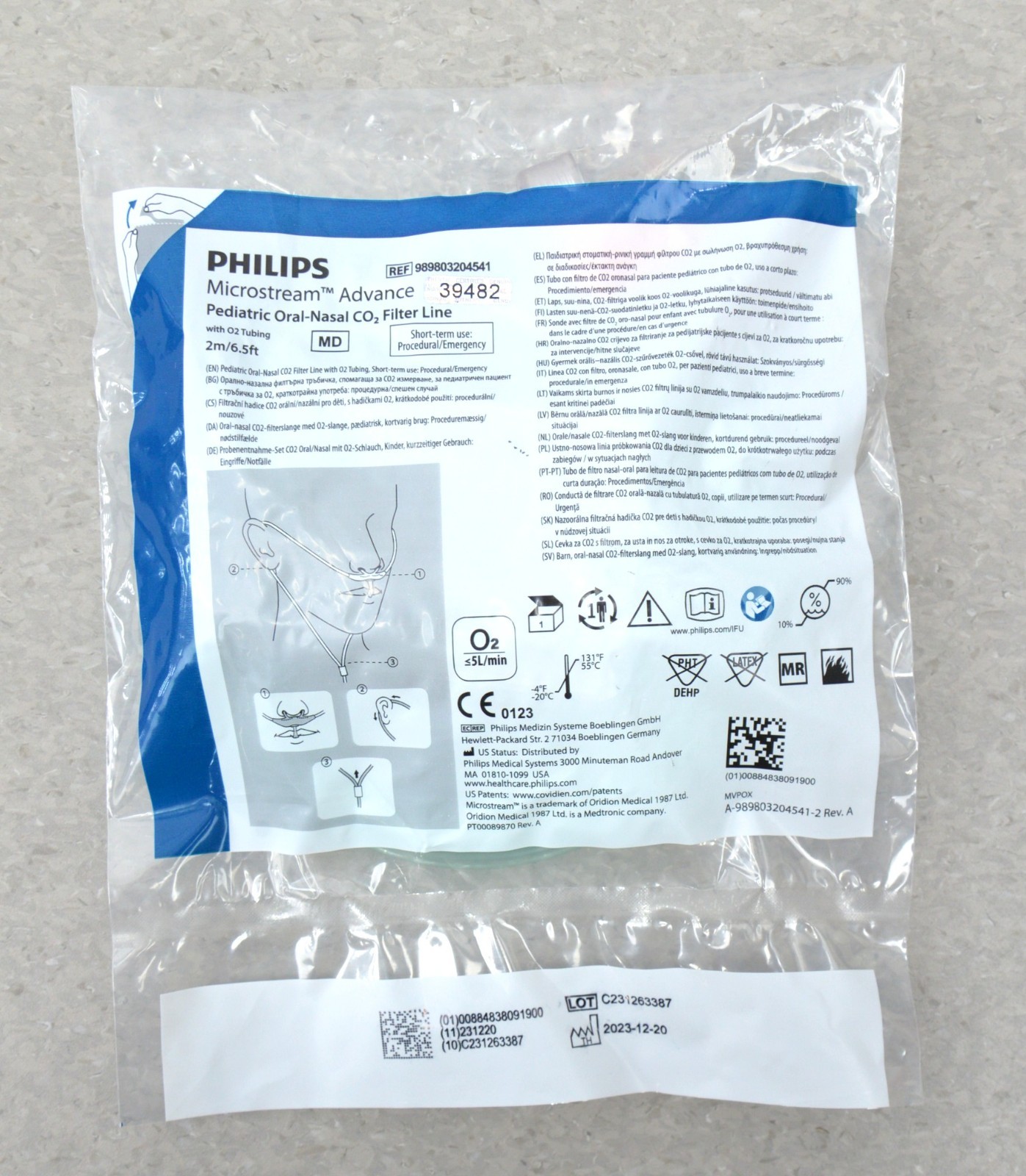 Lot of 175 Philips Microstream Advance Pediatric Oral-Nasal CO2 Filter Line W/ O2 Tubing 2m/6.5ft