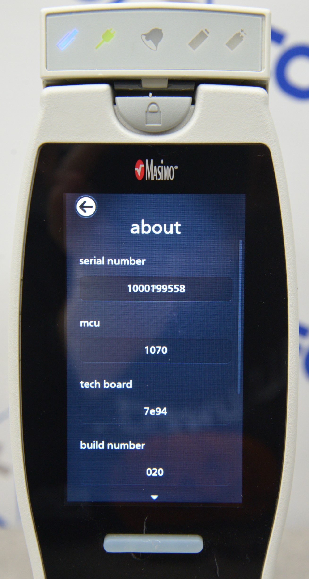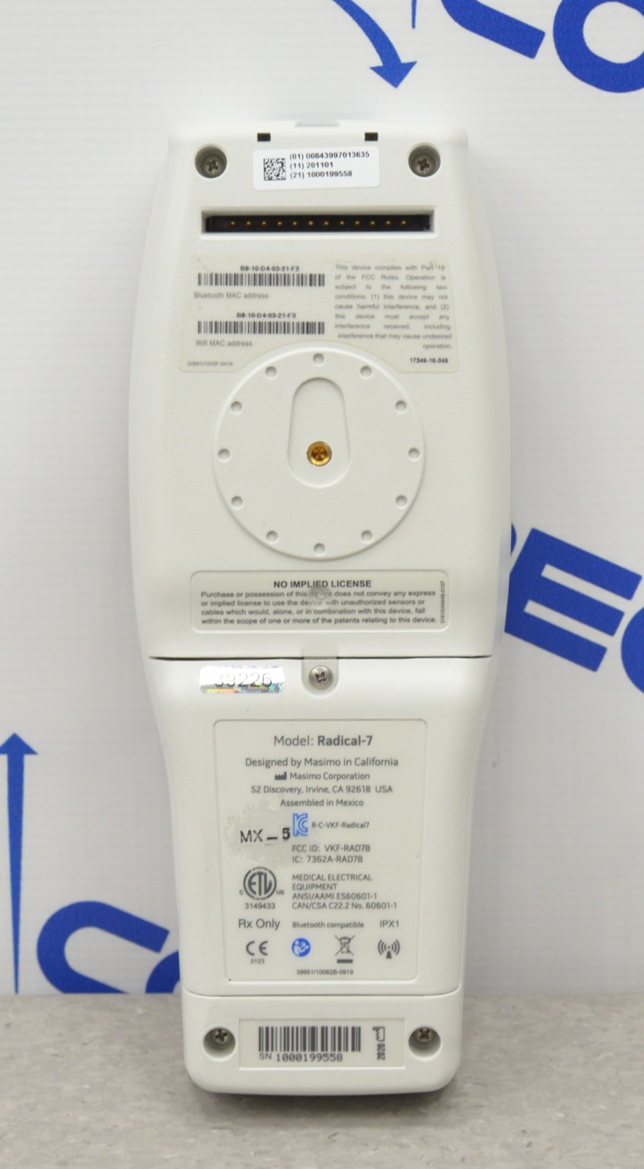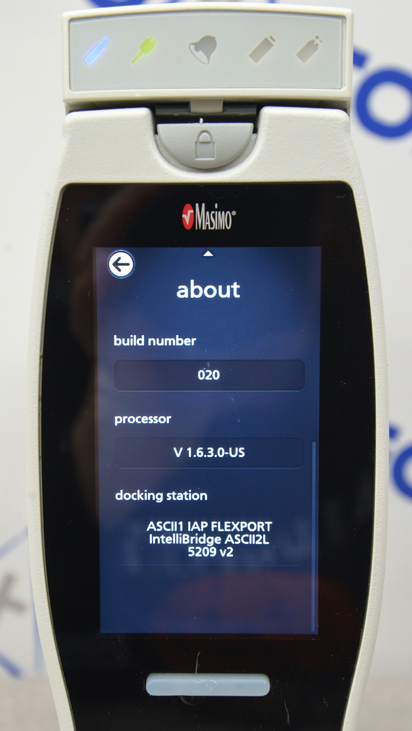 This Masimo Radical-7 Rainbow Touch Screen Signal Extraction Pulse CO-Oximeter W/ RDS-1 Docking Station is in good working condition. The unit powers on properly. The display screen produces a clear image and respond to selection. The DOM is 2020. There are minor scuff marks and one of the kick stands is damaged from previous use (see photos). Does not include a battery. This unit comes with a 30 day satisfaction guarantee. Includes everything in the pictures and nothing else.