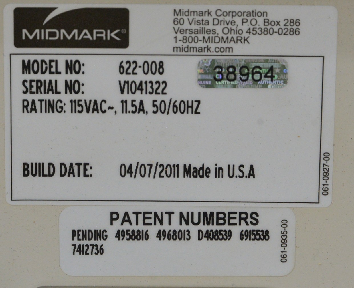 This Midmark 622-008 Barrier Free Power Examination Table W/ Footswitch is in great working condition. The unit powers on and moves smoothly through all range of motion. The footswitch responds properly to selections. The warming drawer heats up properly. The upholstery has some discoloration and indents. There are minor scuff marks from previous use (see photos). This unit comes with a 30 day money back guarantee. Includes everything in the pictures and nothing else.