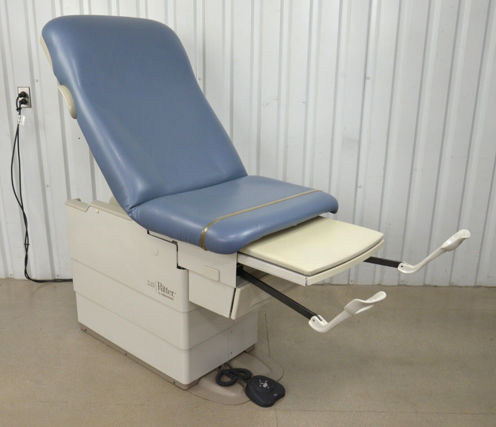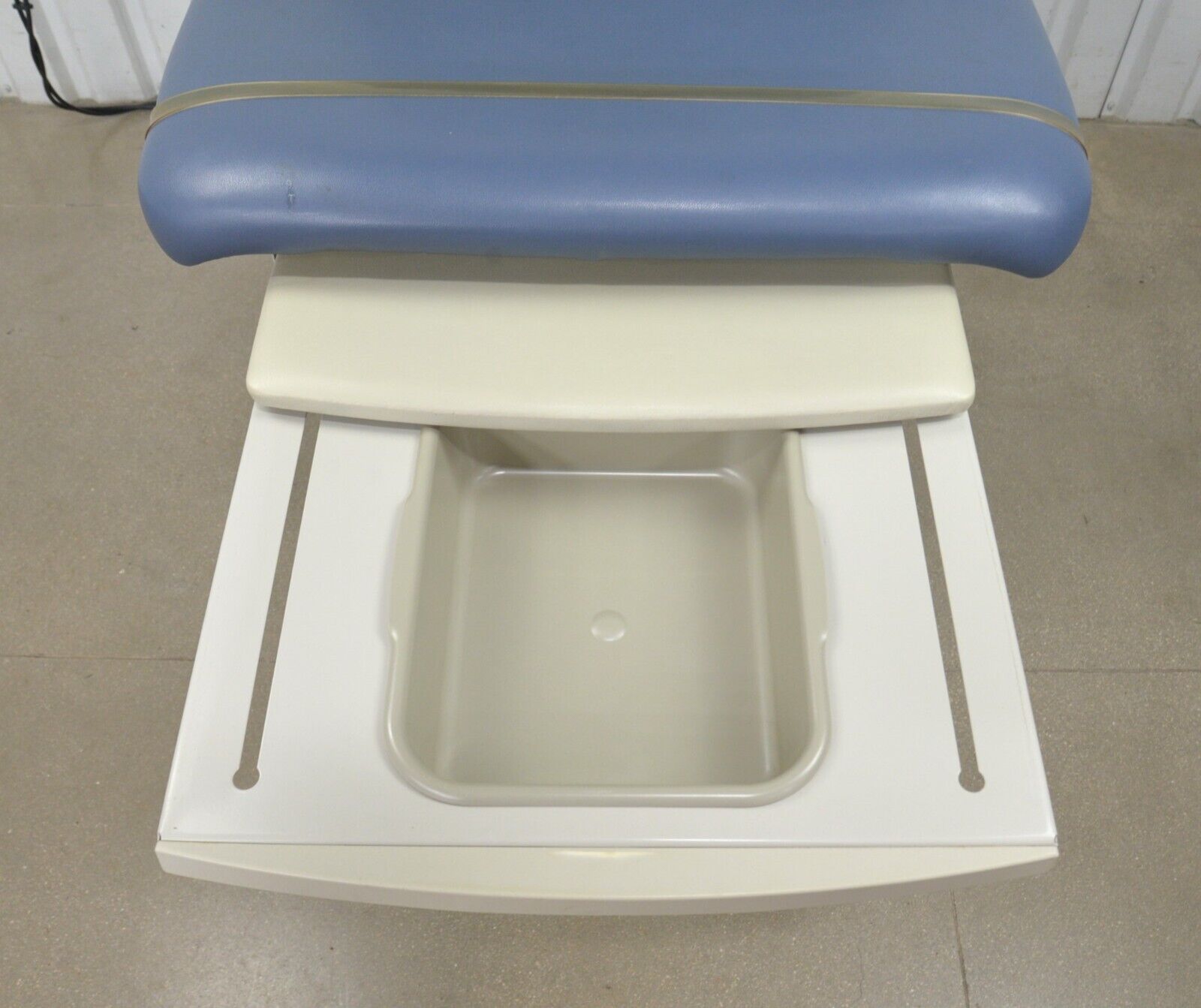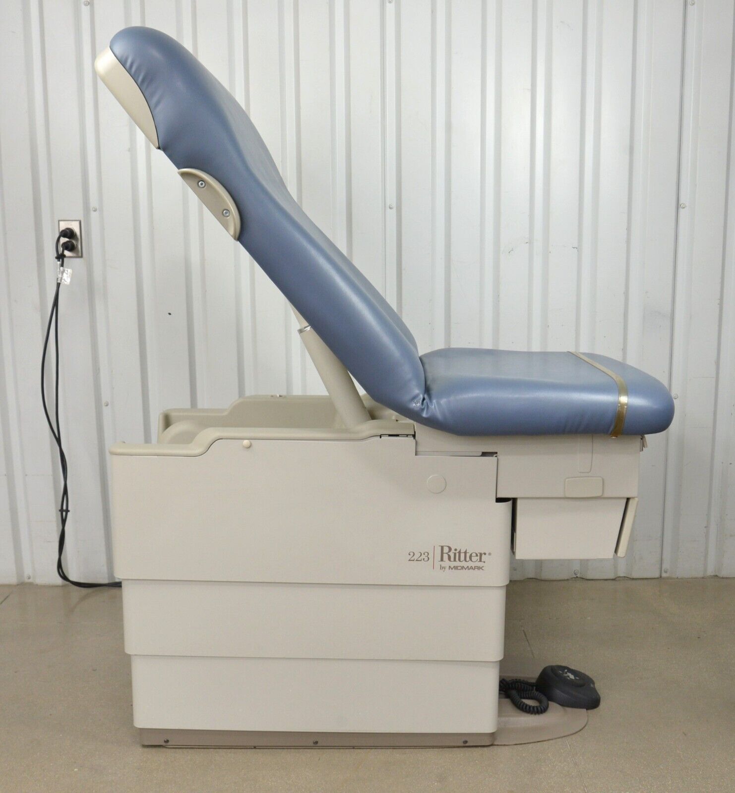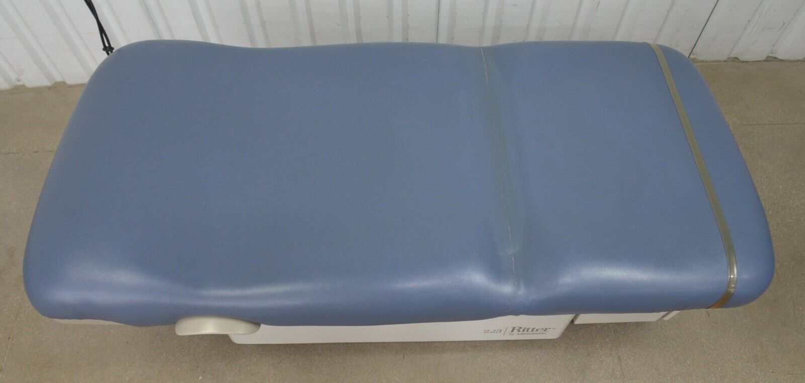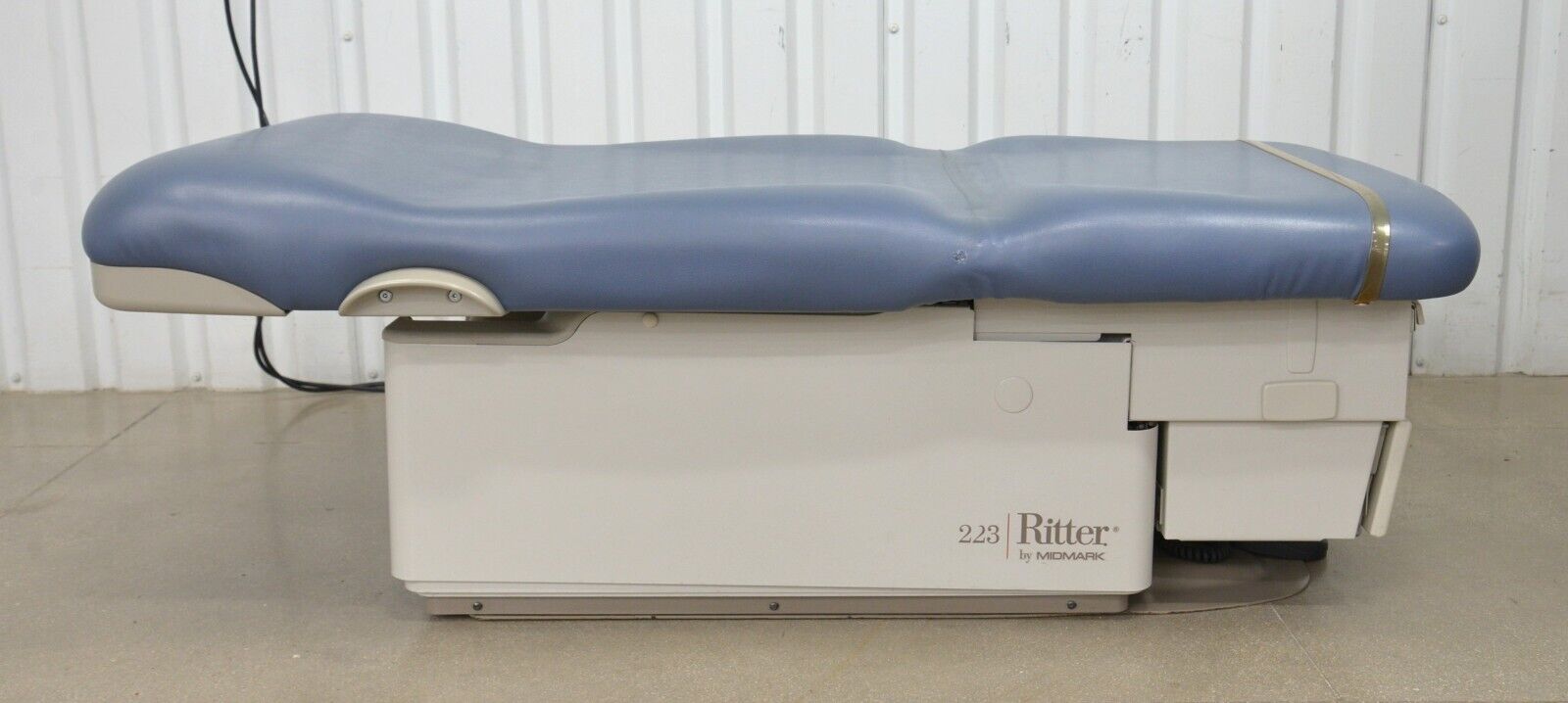 This Midmark Ritter 223-015 Barrier Free Hi-Low Power Examination Table W/ Footswitch is in great working condition. This unit runs smoothly through all range of motion. The upholstery has been repaired in 2 places. There are minor scuff marks and discoloration from previous use (see photos). This unit comes with a 30 day satisfaction guarantee. Includes everything in the pictures and nothing else.