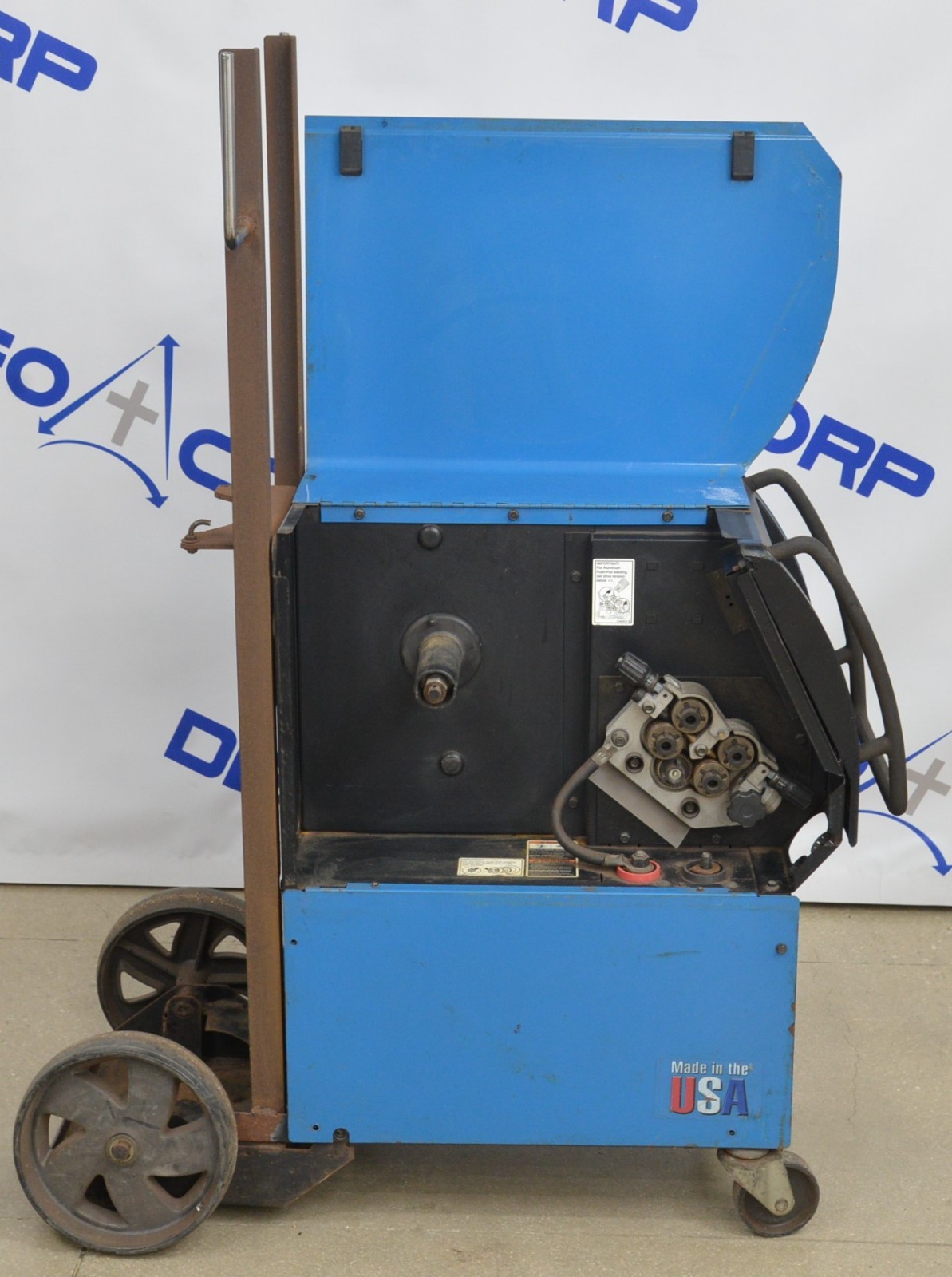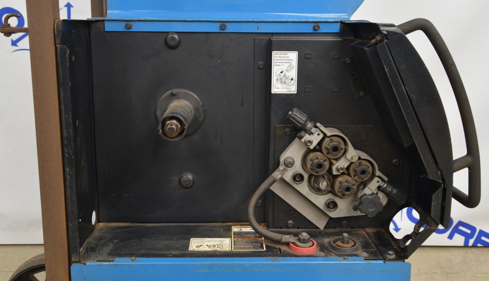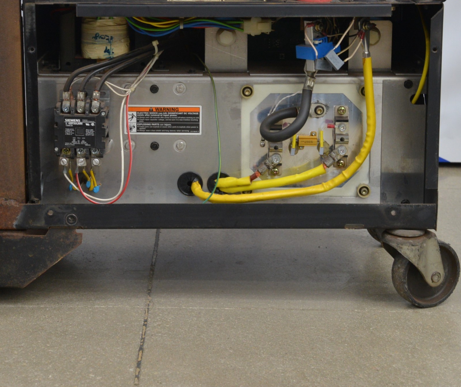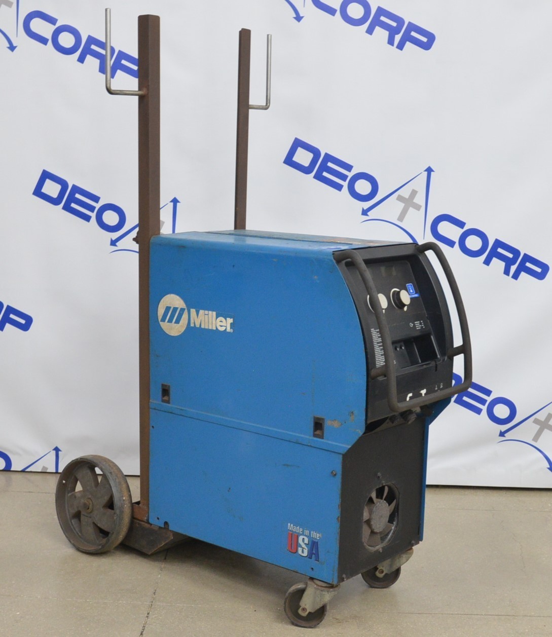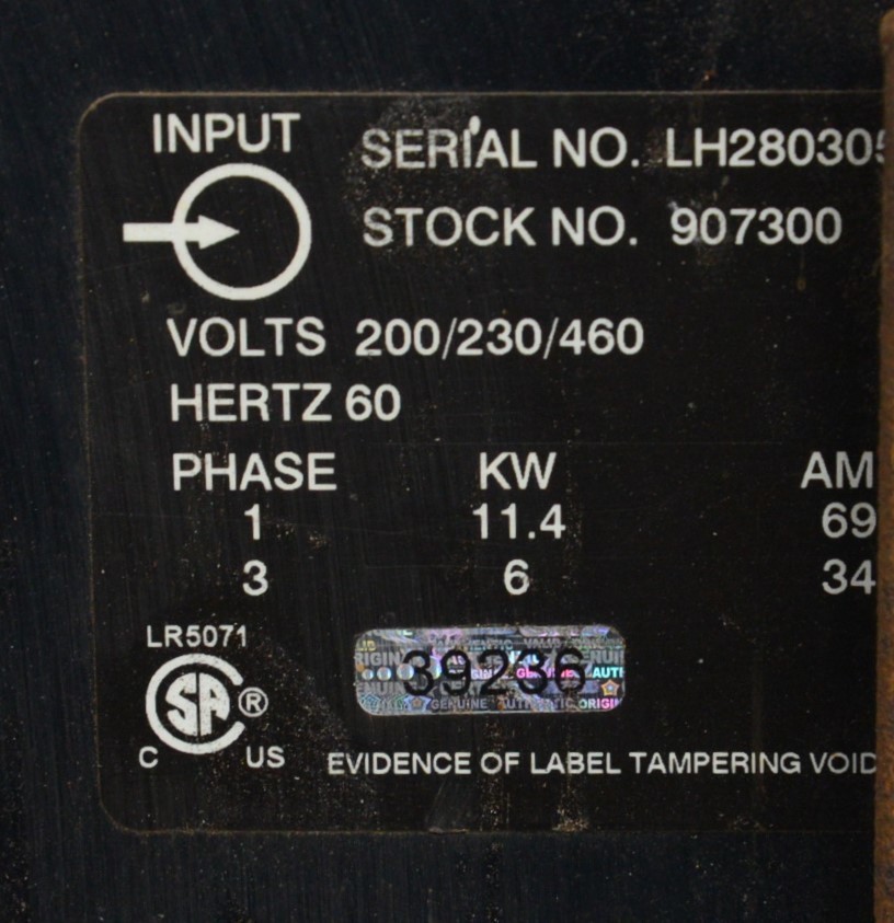 This Miller Millermatic 350P MIG Welder 460V is in good cosmetic condition. This unit came from a working environment. The required voltage for this unit is 460V, and it can run in either 1 or 3 phase. All connections are clean and in good condition. There is chipped paint on top and slight rust from previous use (see photos). This unit is missing the front cover and the fan cover. This unit comes with a 30 day satisfaction guarantee. Includes everything in the pictures and nothing else.