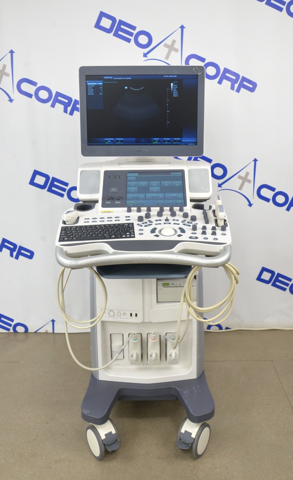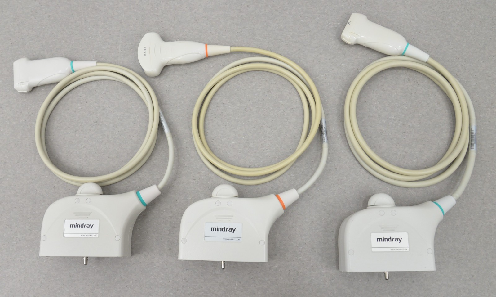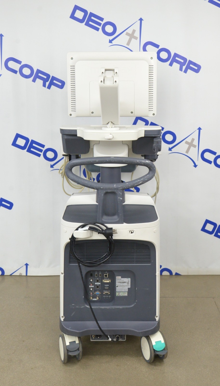 This Mindray DC-8 Diagnostic Ultrasound System 2013 W/ Mindray L14-6NE, L7-3E, & C5-2E Transducers is in great working condition. The unit powers on properly. Both display screens produce a clear image and respond to selection. The connections are clean and in good condition. The manual adjustments move properly. There are minor scuff marks and a few cracks in the plastic from previous use (see photos). The transducers appear to have drop out. This unit comes with a 30 day money back guarantee. Includes everything in the pictures and nothing else.