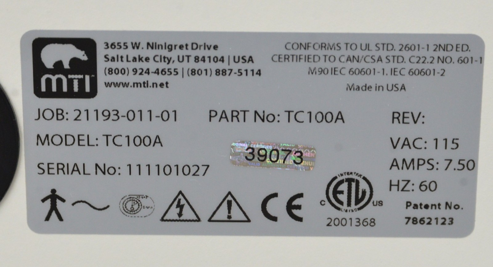 DISCLAIMER: Regardless of the origin of the equipment, documentation provided or identification appearing upon the equipment, the equipment described and offered here is in no way certified for, recommended for, or offered for any specific use. The purchaser agrees that the seller shall not be held responsible or liable for any injuries or damages, whether incidental or consequential, associated in any way with the equipment. The purchaser, by bidding on this equipment, indicates their acknowledgment of, and agreement to the terms of this disclaimer.