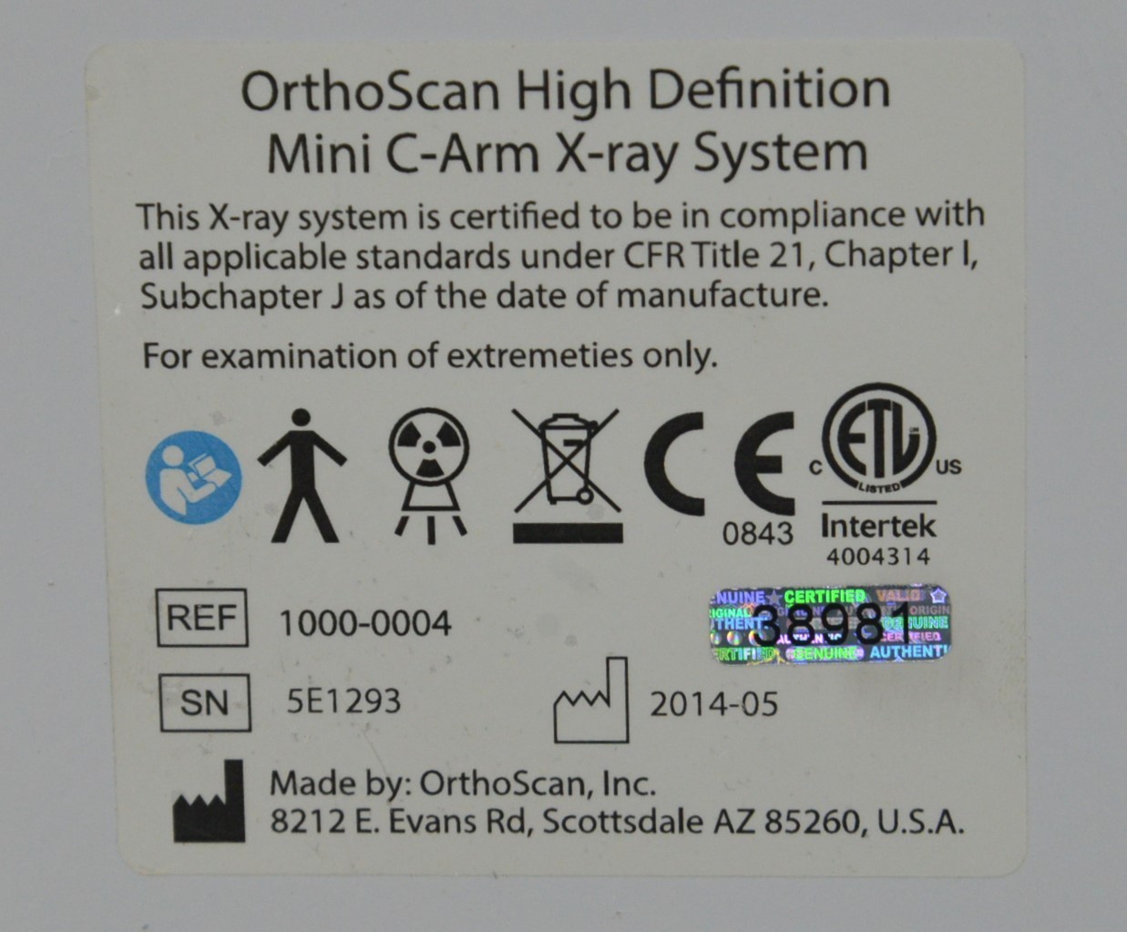 OrthoScan High Definition Mini C-Arm X-Ray System 1000-0004 2014