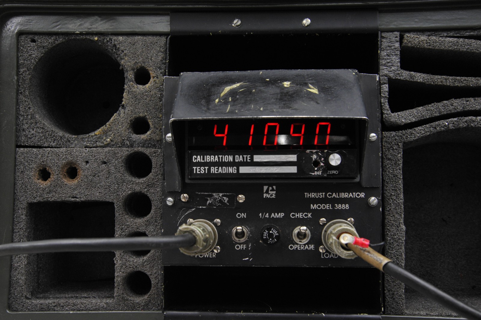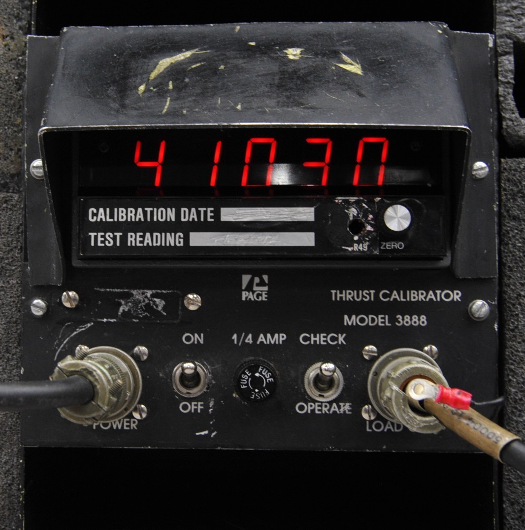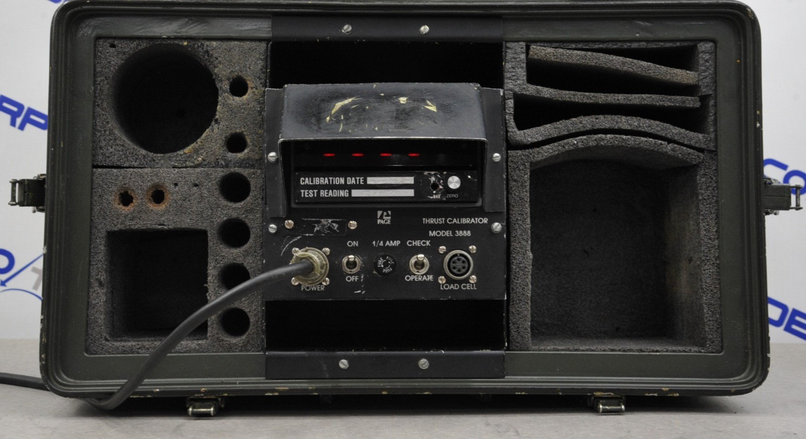 Page Avjet Corporation 3888 Thrust Calibrator System w/ 2 Load Cells is in good working condition. The unit powers on. The power and load cell connections are in good condition. The R49 knob is missing. There are some scuff marks, chipped paint and scratches from previous use (see photos). This unit comes with a 30 day satisfaction guarantee. Includes everything in the pictures and nothing else.