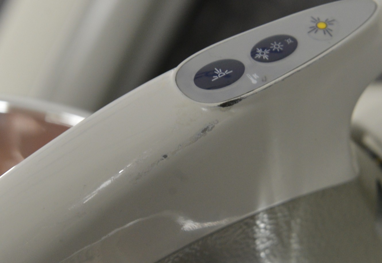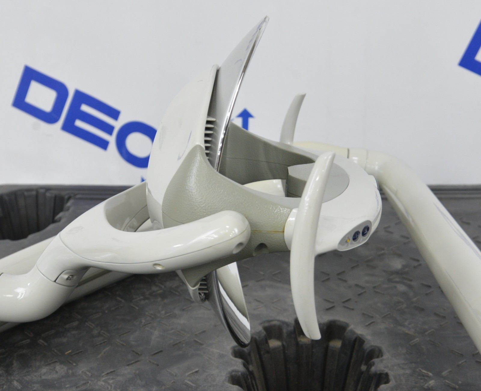 This Pelton & Crane Helios 3000 LED Dental Exam Light W/ Post Mount is in good working condition. The unit powers on and the light adjusts properly. The manual adjustments move smoothly. The unit was tested using a separate power supply; however, the power supply is not included. When using the “No-Cure Setting” the unit does not respond to the intensity button. There are some scuff marks from previous use (see photos). This unit comes with a 30 day satisfaction guarantee. Includes everything in the pictures and nothing else.