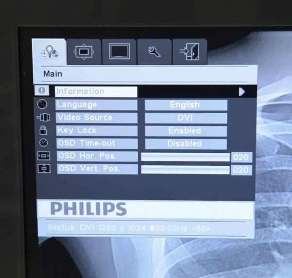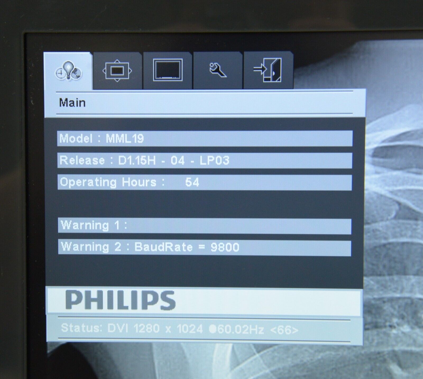 This Philips 19″ MML1941-PCR LCD Monochrome Monitor is in great working condition. The unit powers on and responds properly to menu selections. The connection points are clean and in good condition. This unit has 54 hours of operation. There are some minor scuff marks on the exterior from previous use (see photos). This unit comes with a 30 day satisfaction guarantee. Includes everything in the pictures and nothing else.