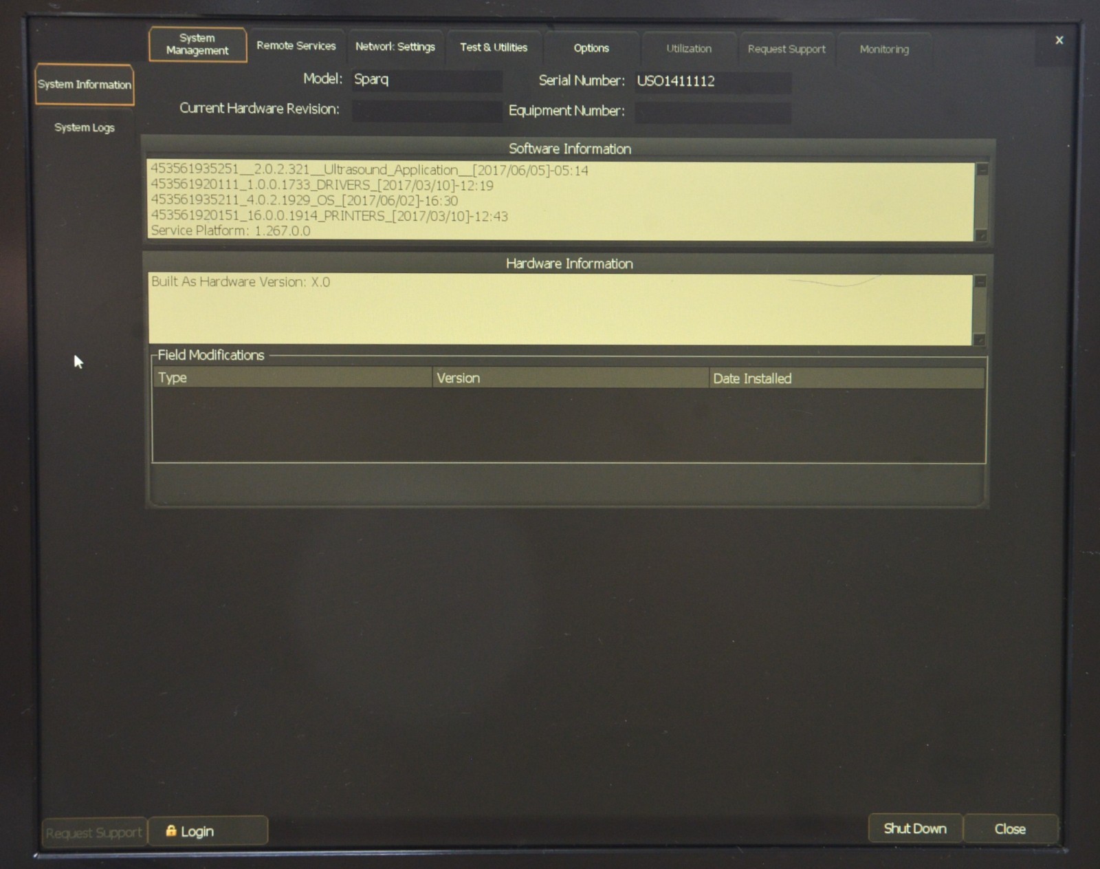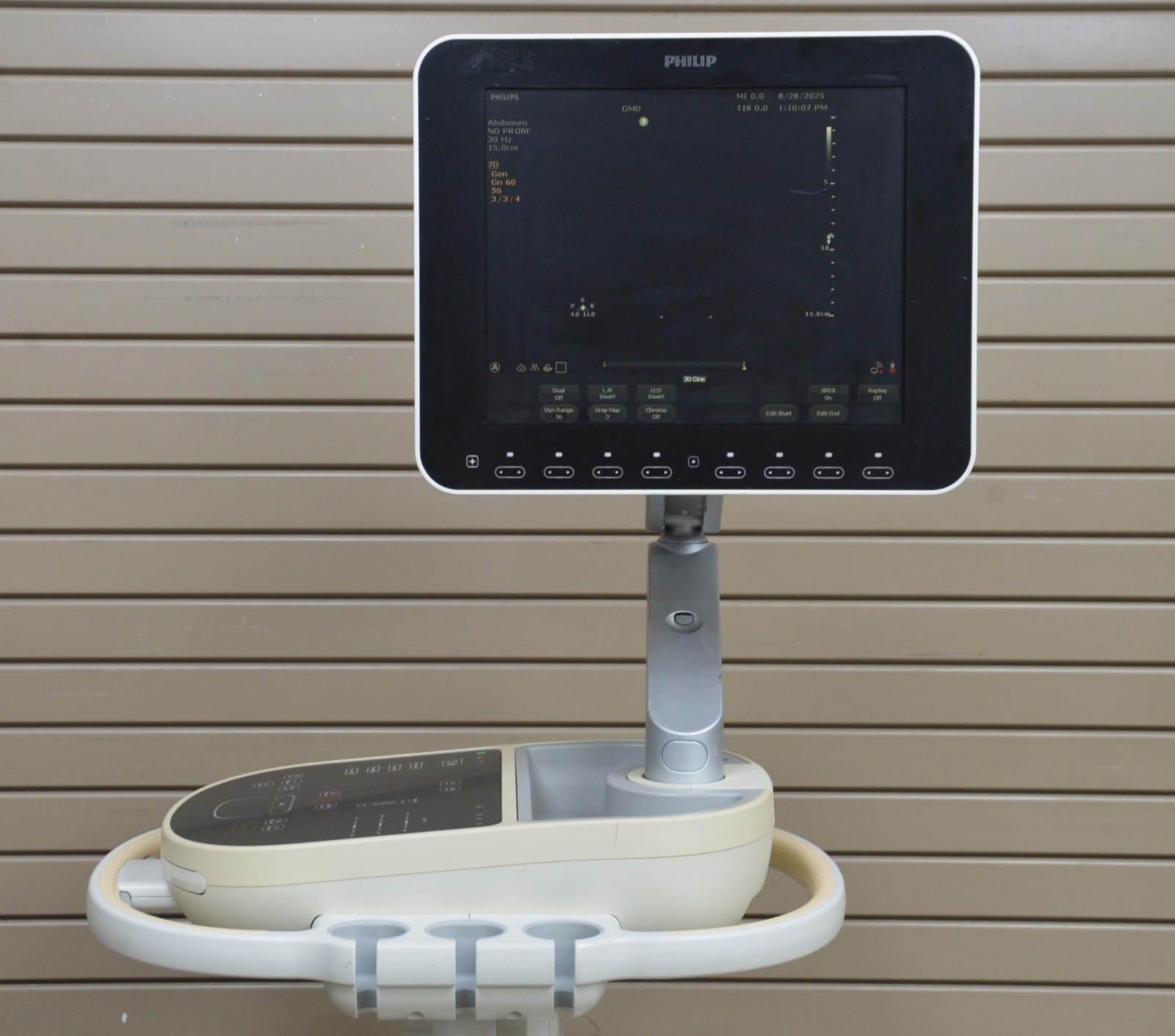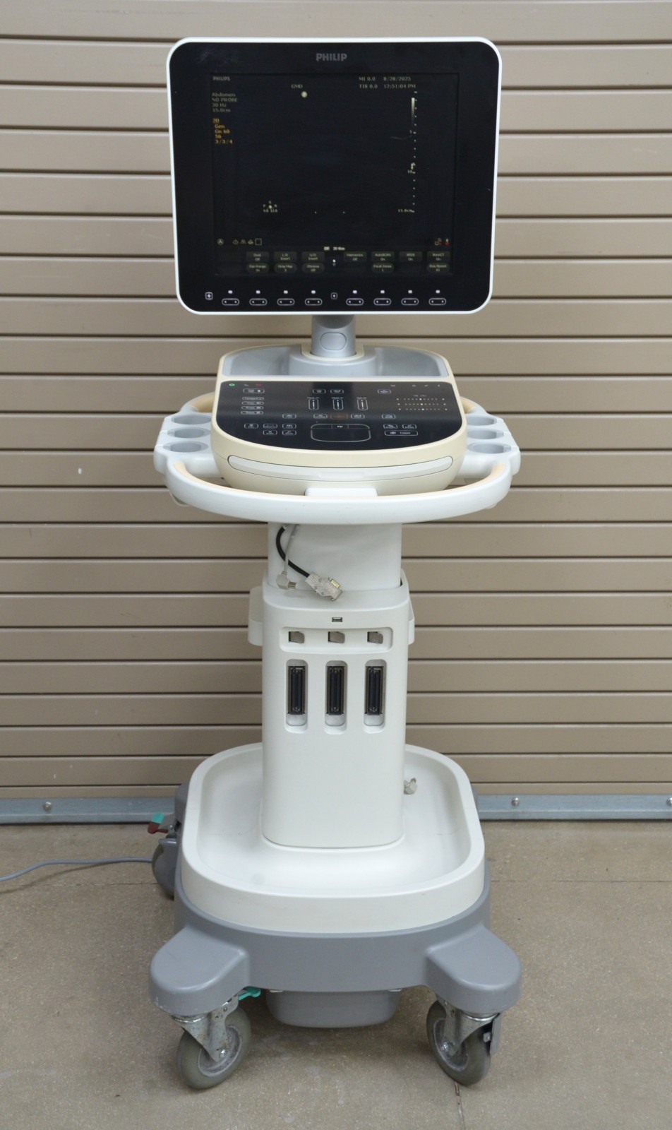 This Philips Sparq Diagnostic Ultrasound Machine 2015 is in great working condition. The unit powers on and responds to selection. The display screen produces a clear image. The touch pad and keyboard light up and respond to selection. This unit passed the “run system test”. The connection ports are clean and in good condition. There are some scuff marks from previous use (see photos). This unit comes with a 30 day satisfaction guarantee. Includes everything in the pictures and nothing else.